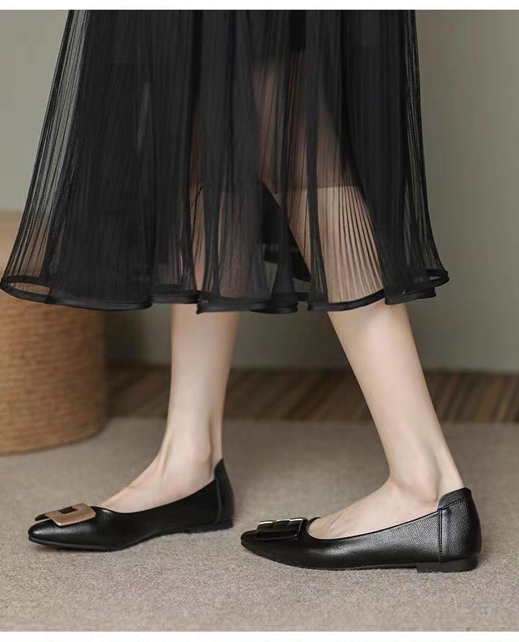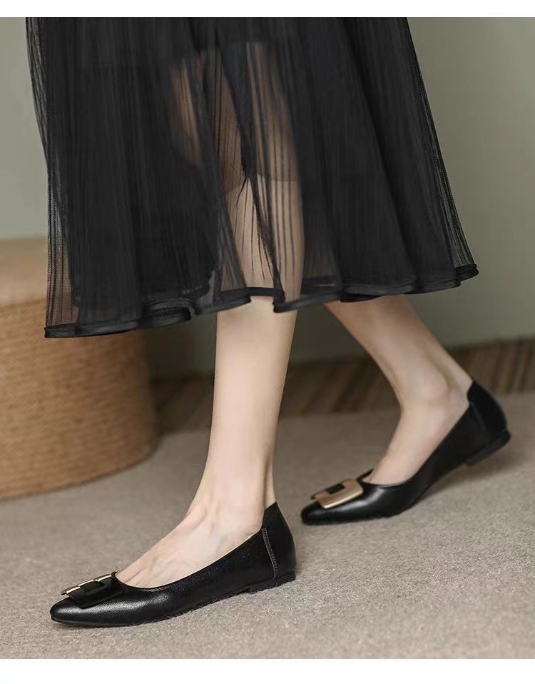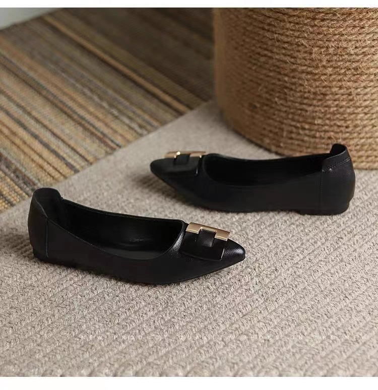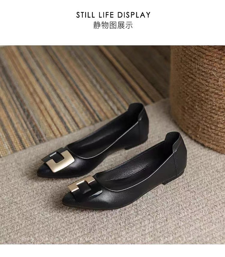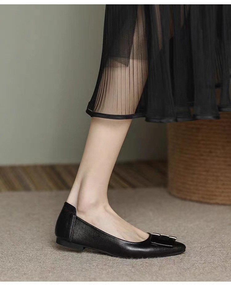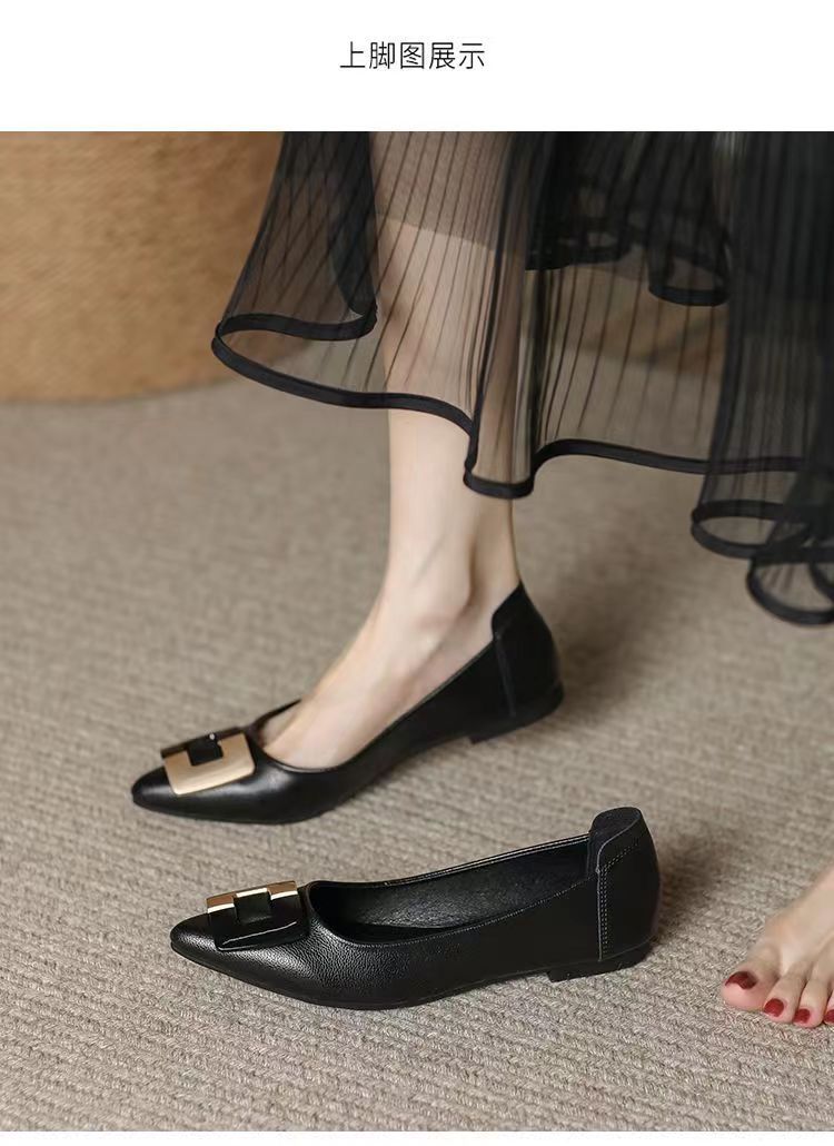 진짜 부드러운 가죽 플랫솔 직장용 신발 여름 여성 가죽 신발 뾰족한 앞코 부드러운 밑창 직장인용 빅사이즈 신발 트렌디하고 통기성 좋음