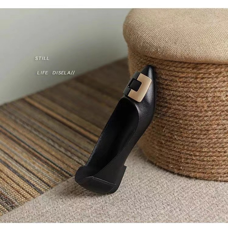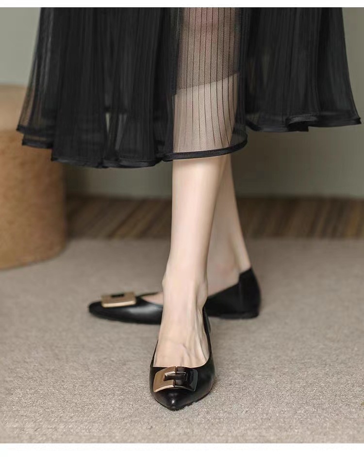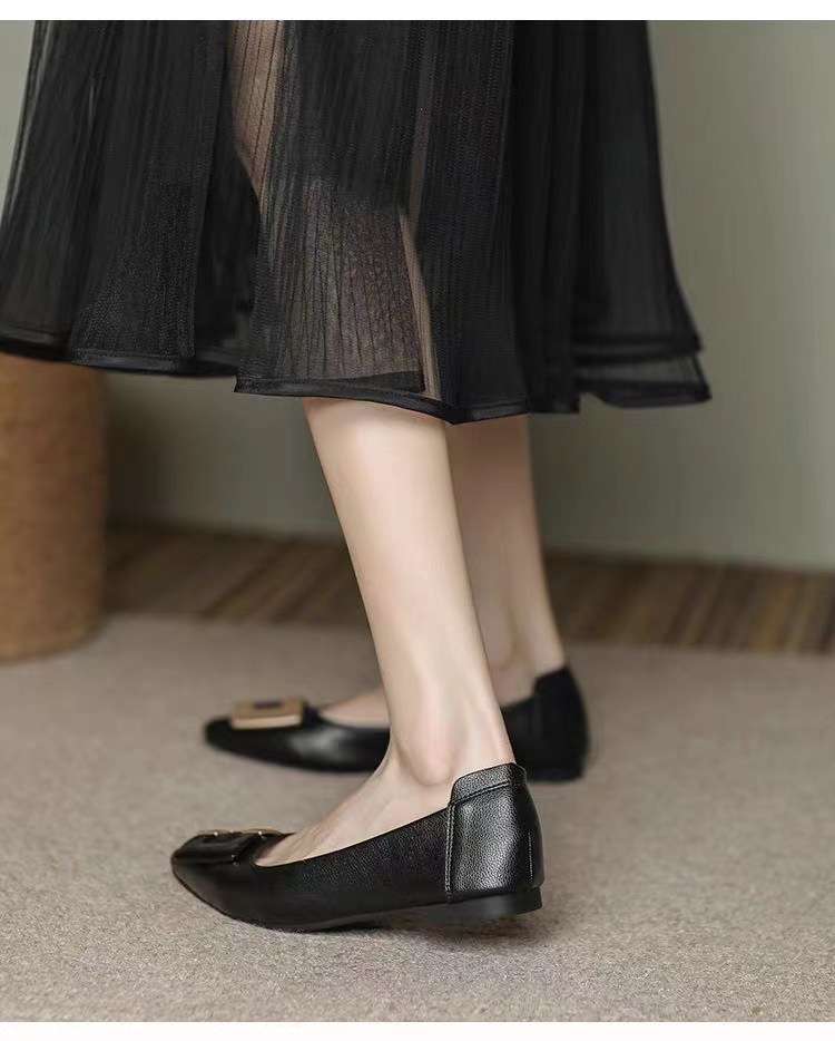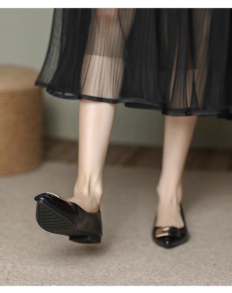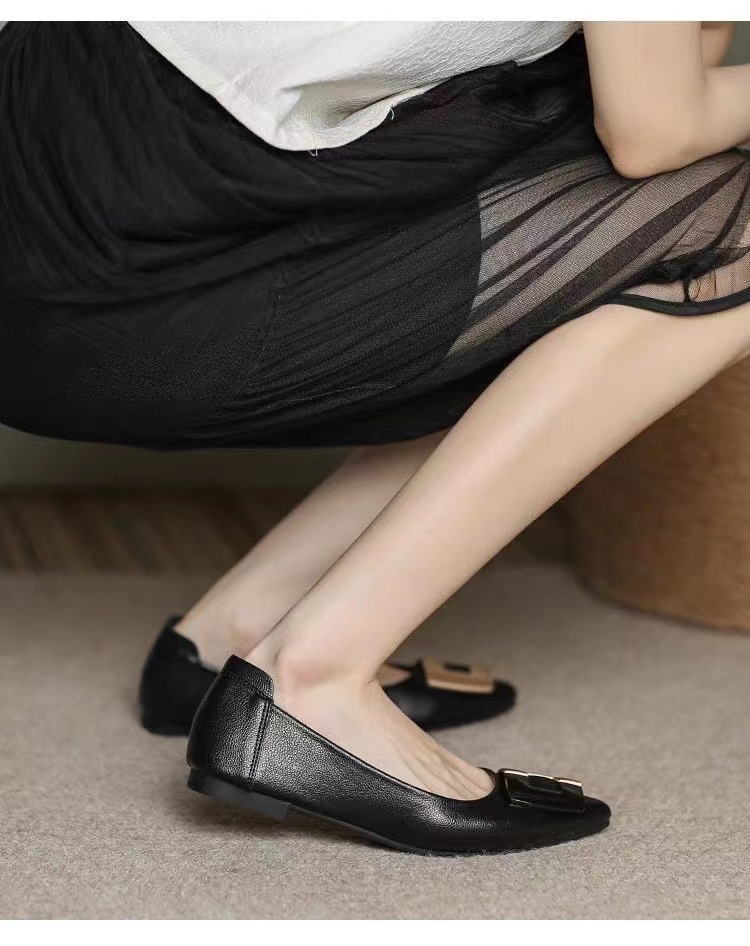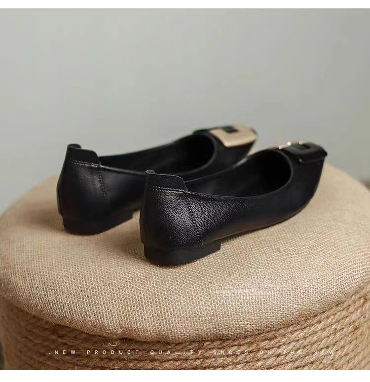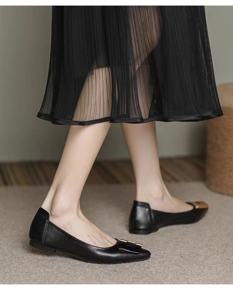 진짜 부드러운 가죽 플랫솔 직장용 신발 여름 여성 가죽 신발 뾰족한 앞코 부드러운 밑창 직장인용 빅사이즈 신발 트렌디하고 통기성 좋음