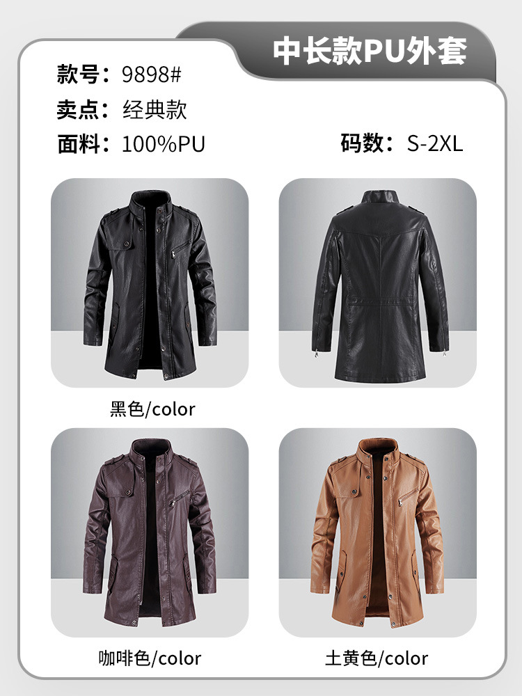 2024 공장 직접 유럽과 미국의 긴 칼라 PU 가죽 자켓 성격 세척 남성 오토바이 가죽 기모스토어 가기