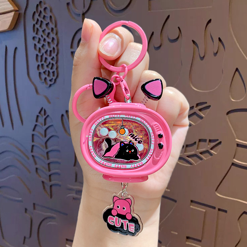 만화 귀여운 고양이 빛나는 TV 키 체인 펜던트 자동차 키 체인 학교 가방 펜던트 작은 선물 도매