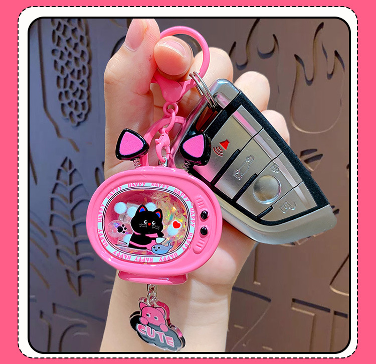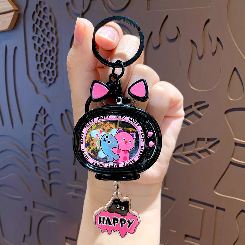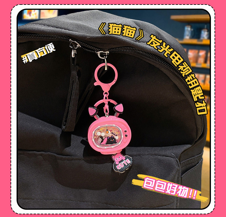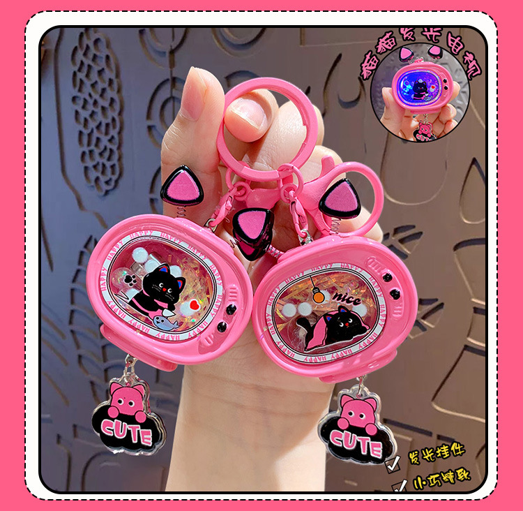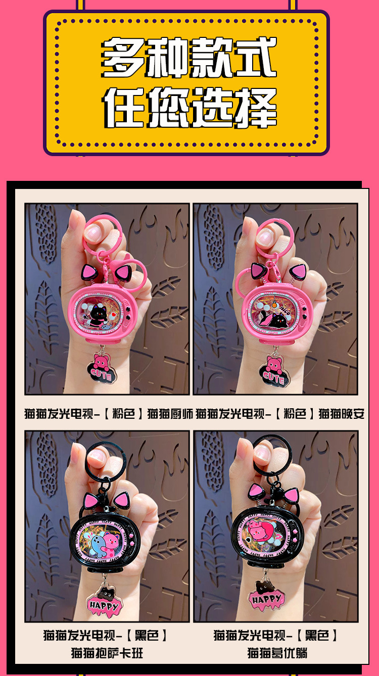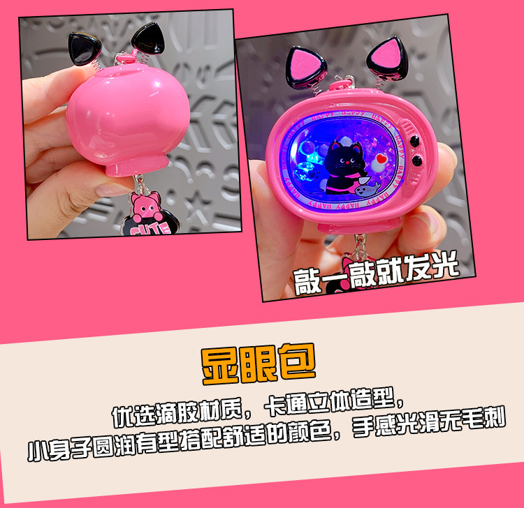 만화 귀여운 고양이 빛나는 TV 키 체인 펜던트 자동차 키 체인 학교 가방 펜던트 작은 선물 도매스토어 가기