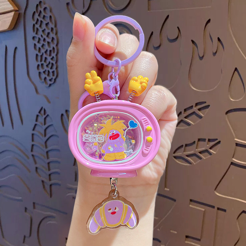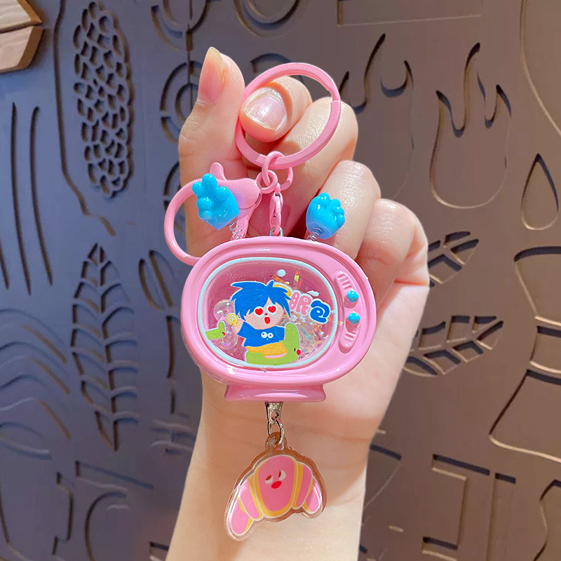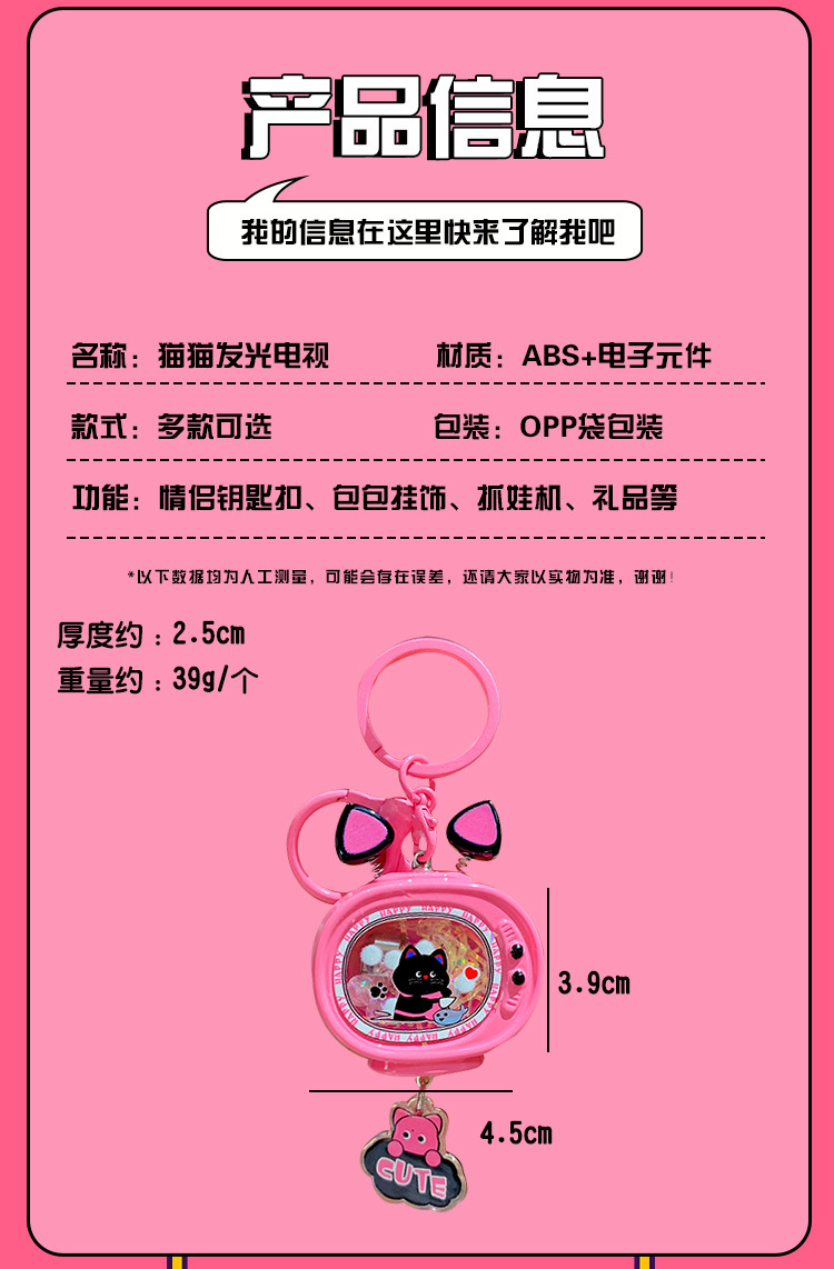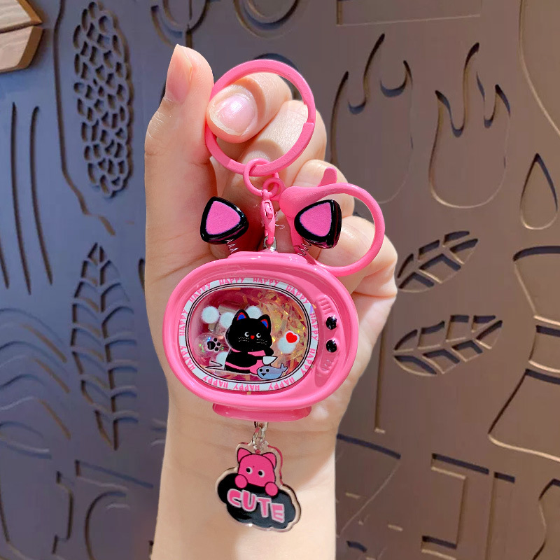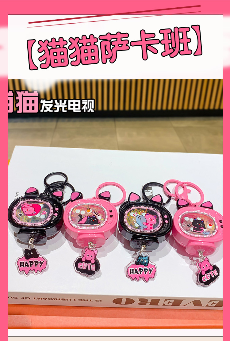 만화 귀여운 고양이 빛나는 TV 키 체인 펜던트 자동차 키 체인 학교 가방 펜던트 작은 선물 도매스토어 가기