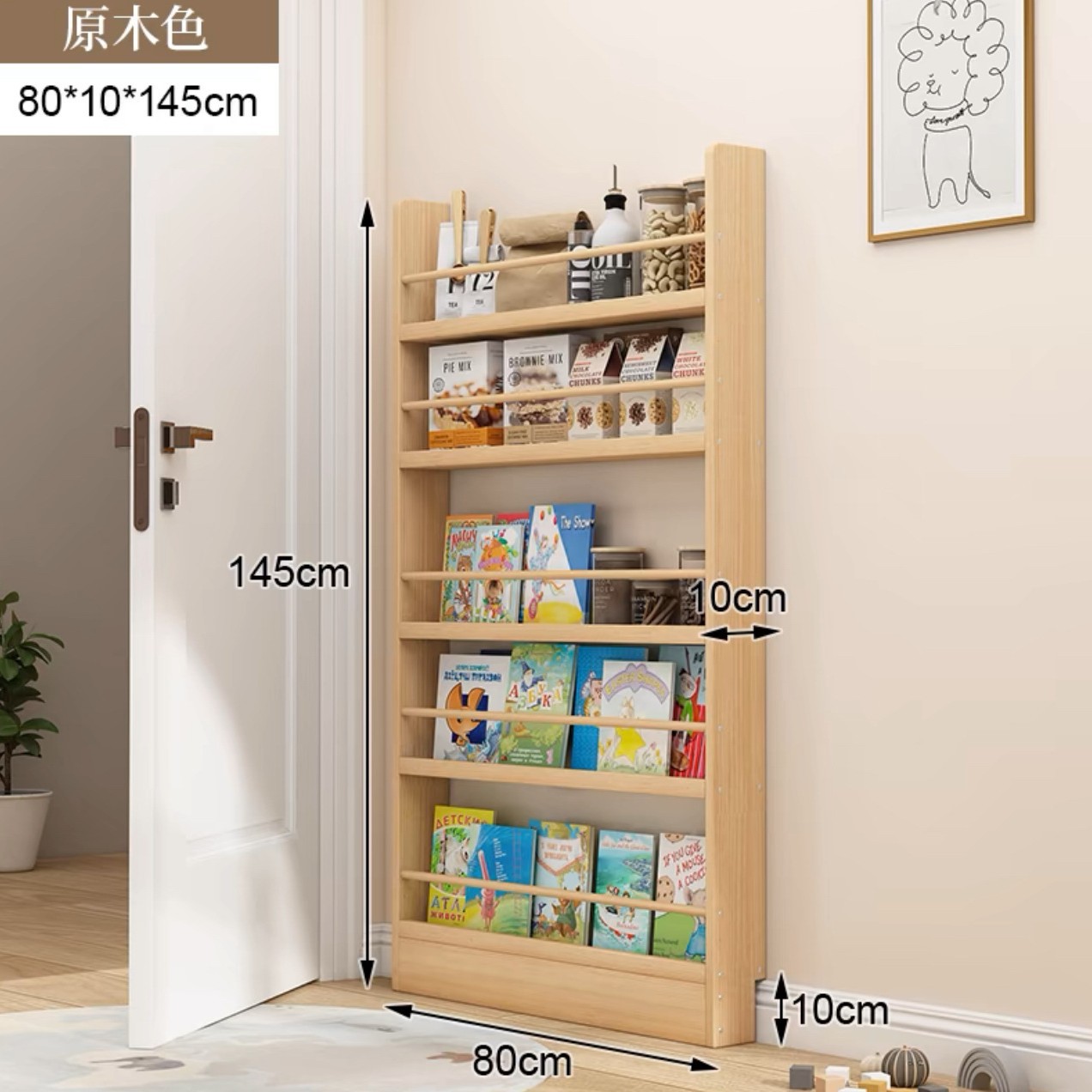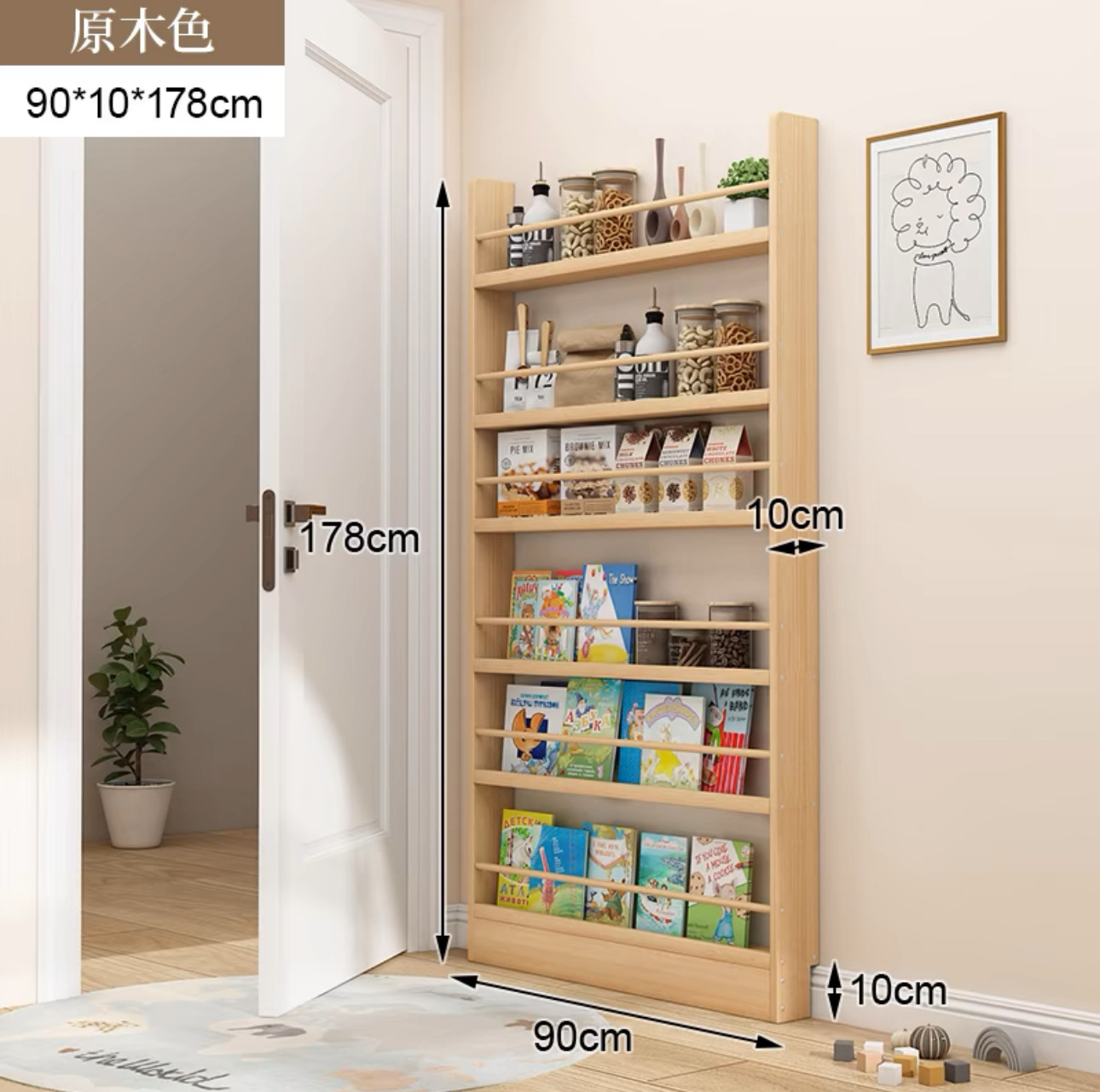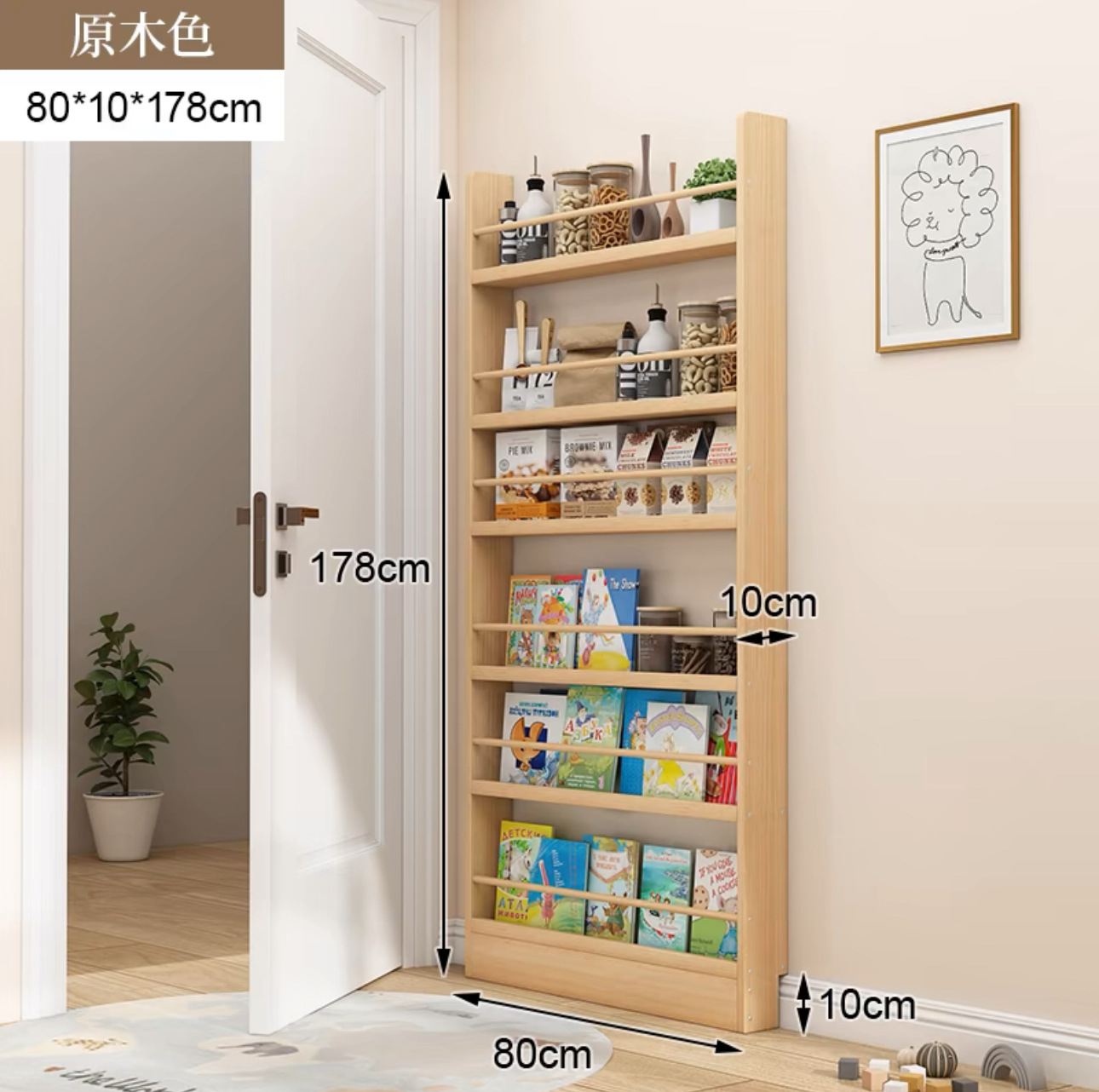 문 책장 초박형 저장 랙 어린이 벽 매달려 다층 벽 통합 벽 갭 솔리드 우드 스토리지 캐비닛에 대한 좁은 캐비닛스토어 가기