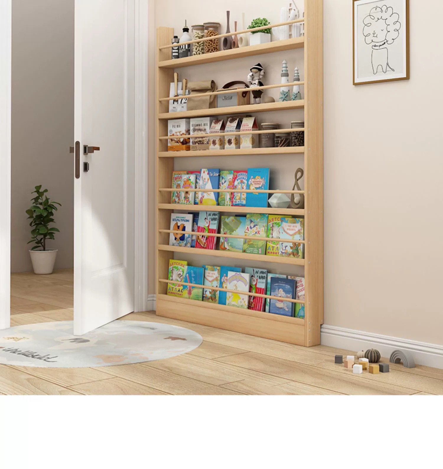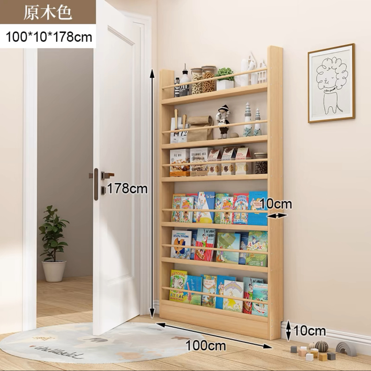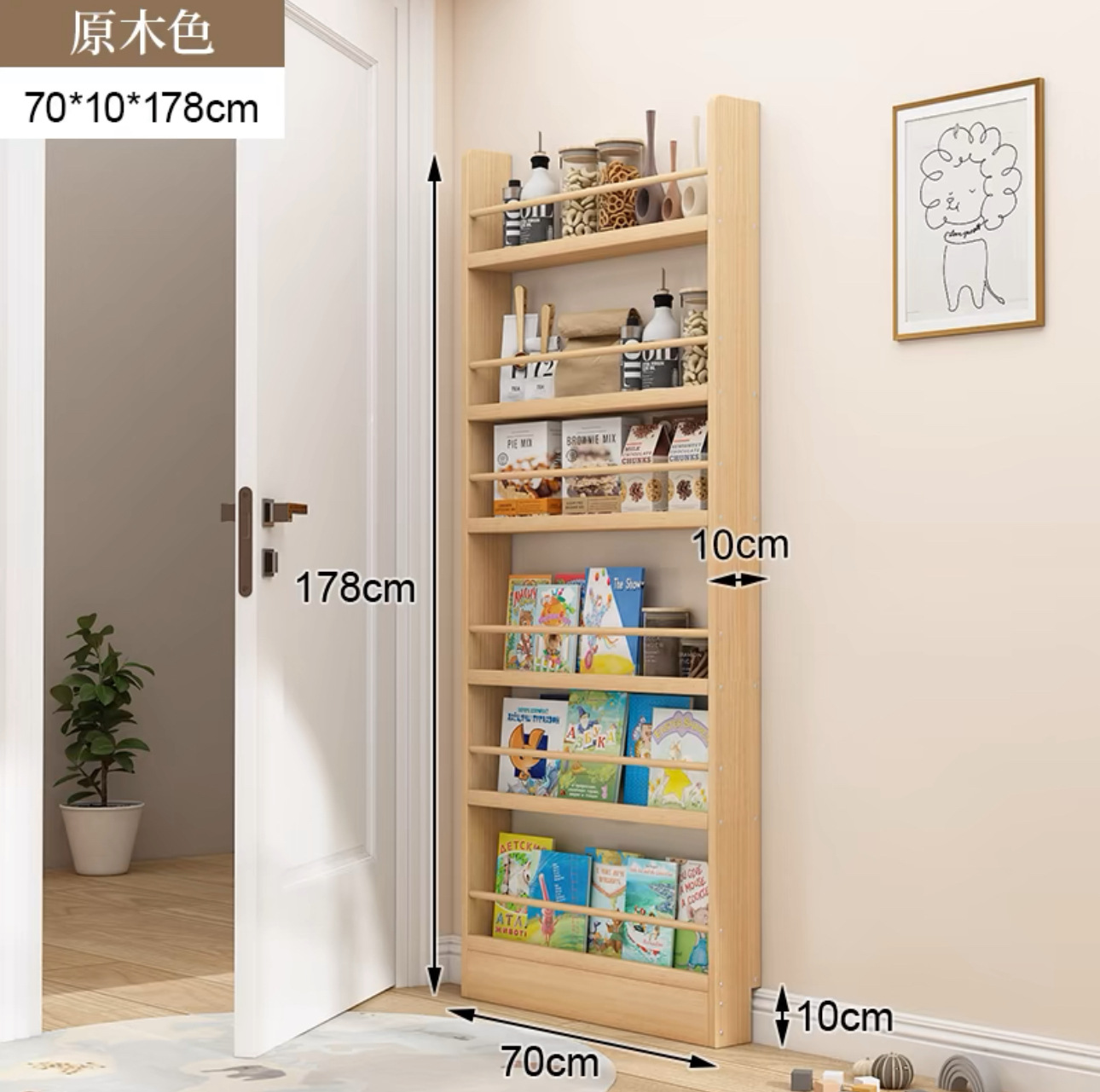 문 책장 초박형 저장 랙 어린이 벽 매달려 다층 벽 통합 벽 갭 솔리드 우드 스토리지 캐비닛에 대한 좁은 캐비닛스토어 가기