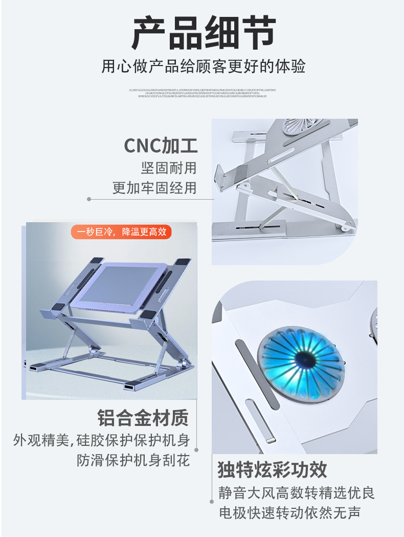 반도체 냉동 방열 브래킷 접이식 휴대용 7 단 조정 모든 알루미늄 합금 노트북 브래킷