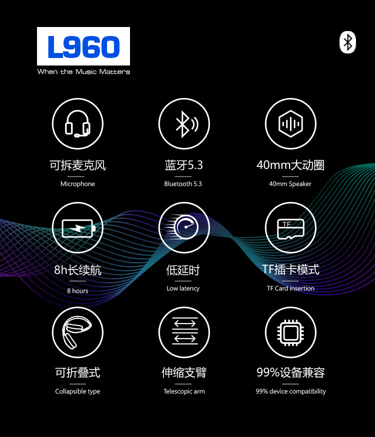 국경 간 새로운 헤드셋 블루투스 헤드셋 L960 서브 우퍼 접이식 금속 레버 게임 헤드셋 공장 콘센트스토어 가기