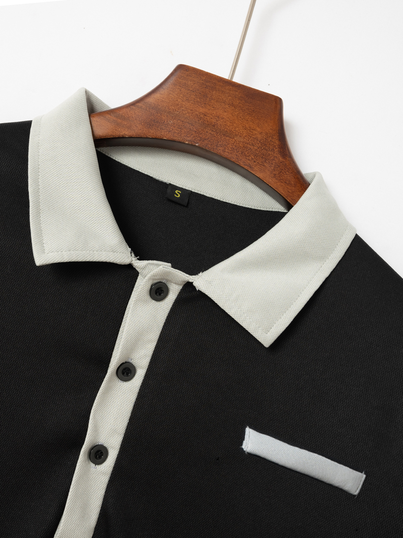 아마존 새로운 국경 남성 캐주얼 폴로 셔츠 가슴 포켓 V-넥 버튼 단색 긴 소매 올 매치 T