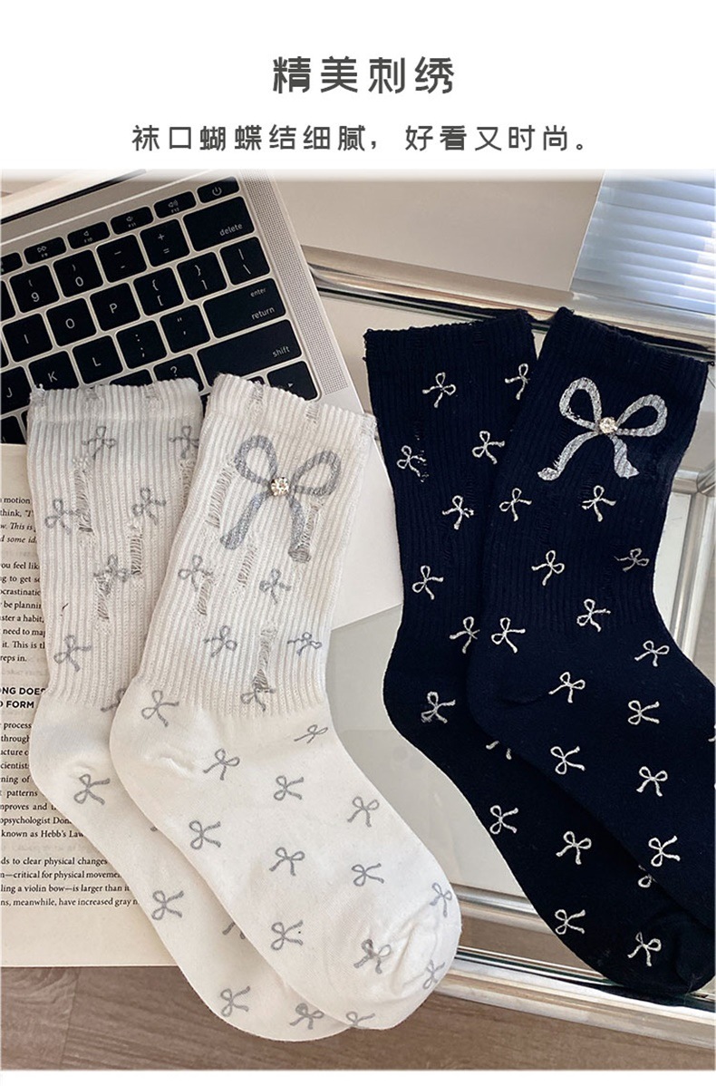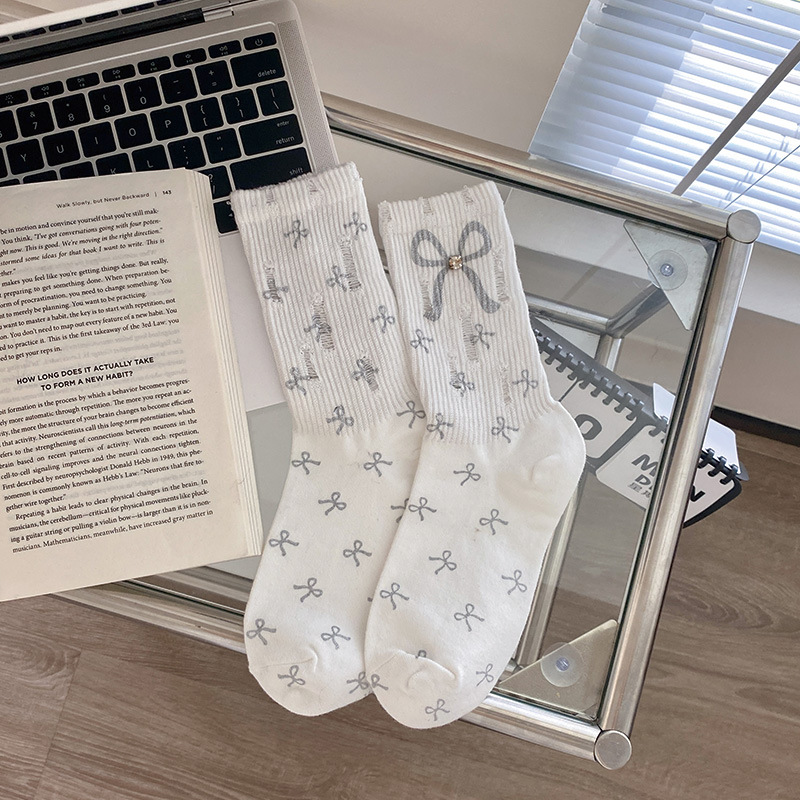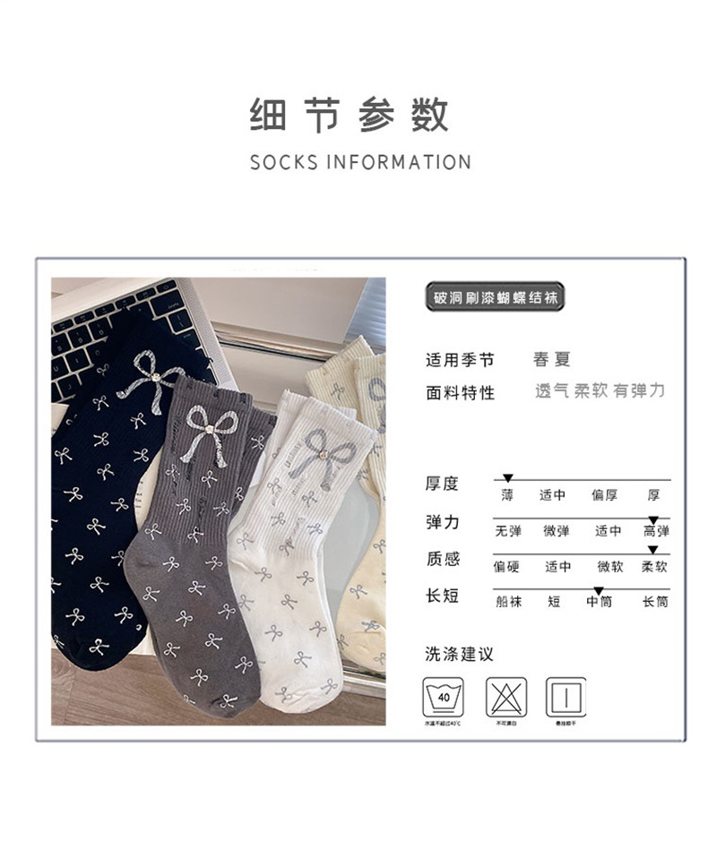 2024 봄과 여름 새로운 양말 한국 스타일 전체 인쇄 페인트 활 여성의 중간 크기 양말 지붕 구멍 포장 양말 면화스토어 가기