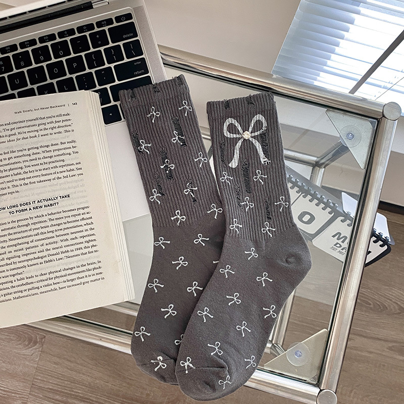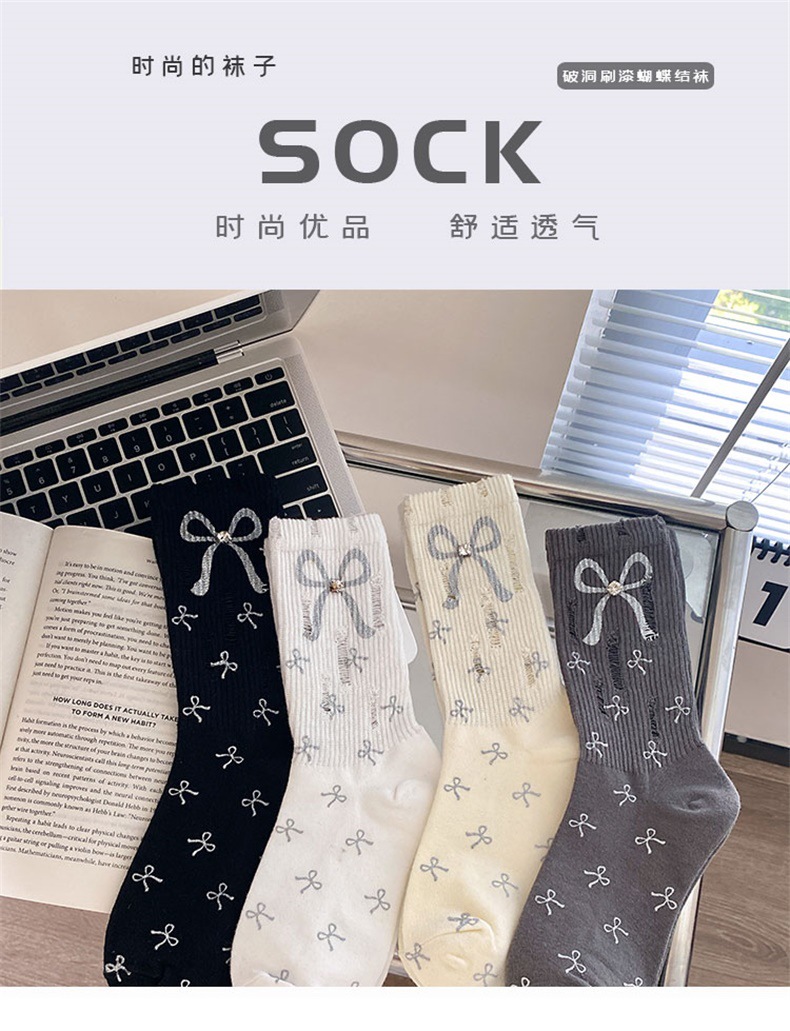 2024 봄과 여름 새로운 양말 한국 스타일 전체 인쇄 페인트 활 여성의 중간 크기 양말 지붕 구멍 포장 양말 면화