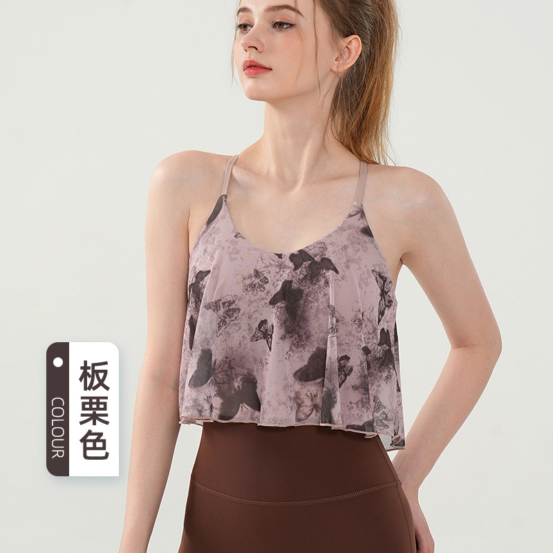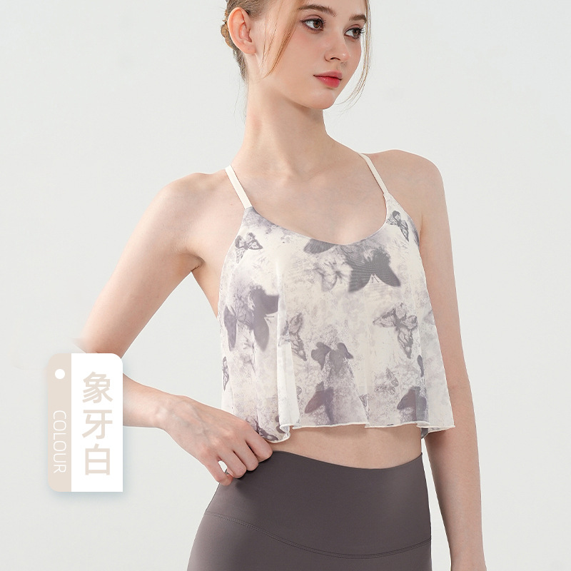 나비 인쇄 스포츠 속옷 여성 크로스 뷰티 다시 통기성 고정 컵 피트니스 브라 로맨틱 레트로 요가 조끼