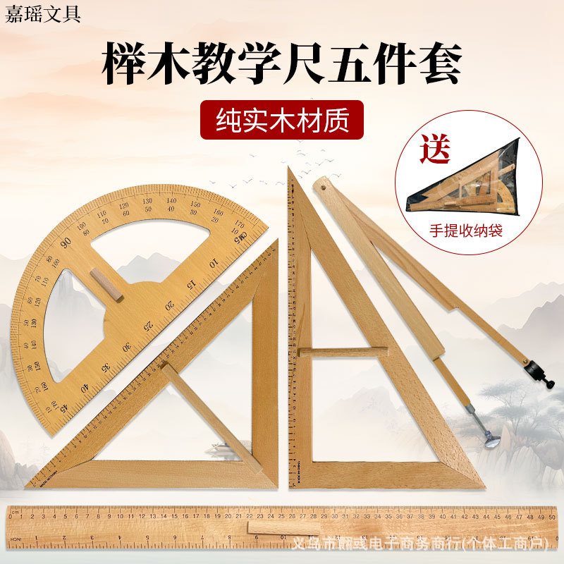 나무 교구 대형 삼각자 각도기 컴퍼스 너도밤나무 미터자 원목 측정기 세트 나무 자 도매스토어 가기
