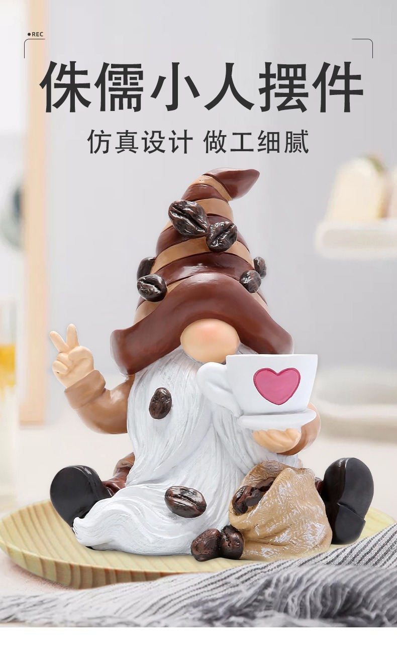 국경 간 신제품 수지 공예 커피 콩 드워프 리틀 맨 장식품 야외 정원 장식 홈 장식품스토어 가기