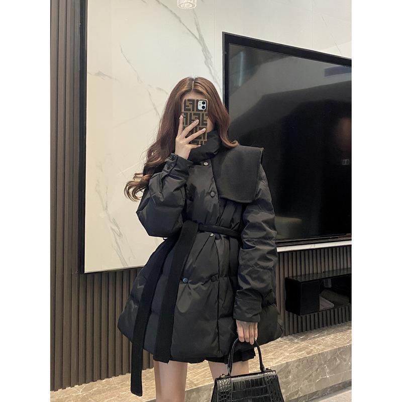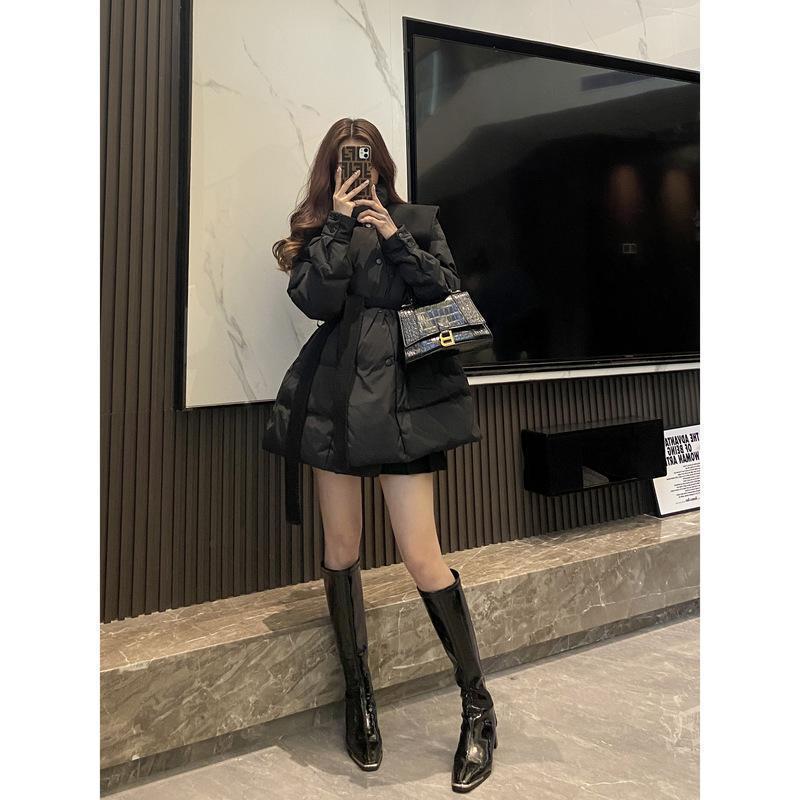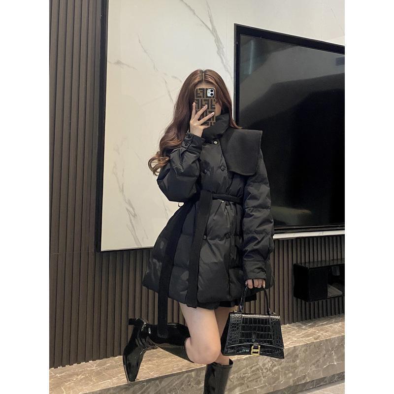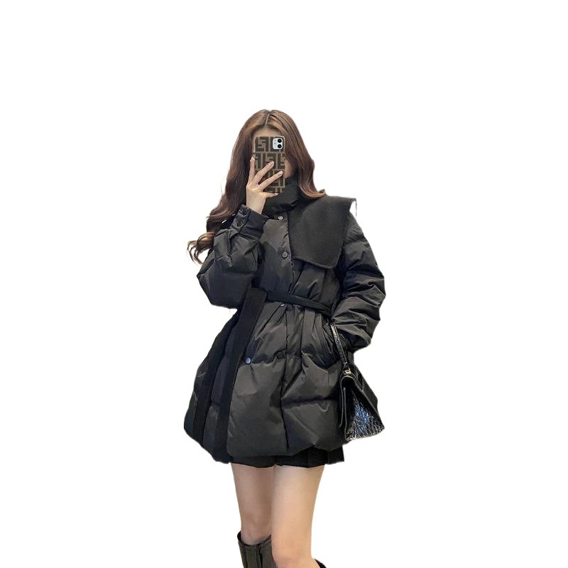 겨울 검은 코튼 코트 여성의 새로운 한국 스타일 디자인 경량 중간 길이의 빵 세트스토어 가기