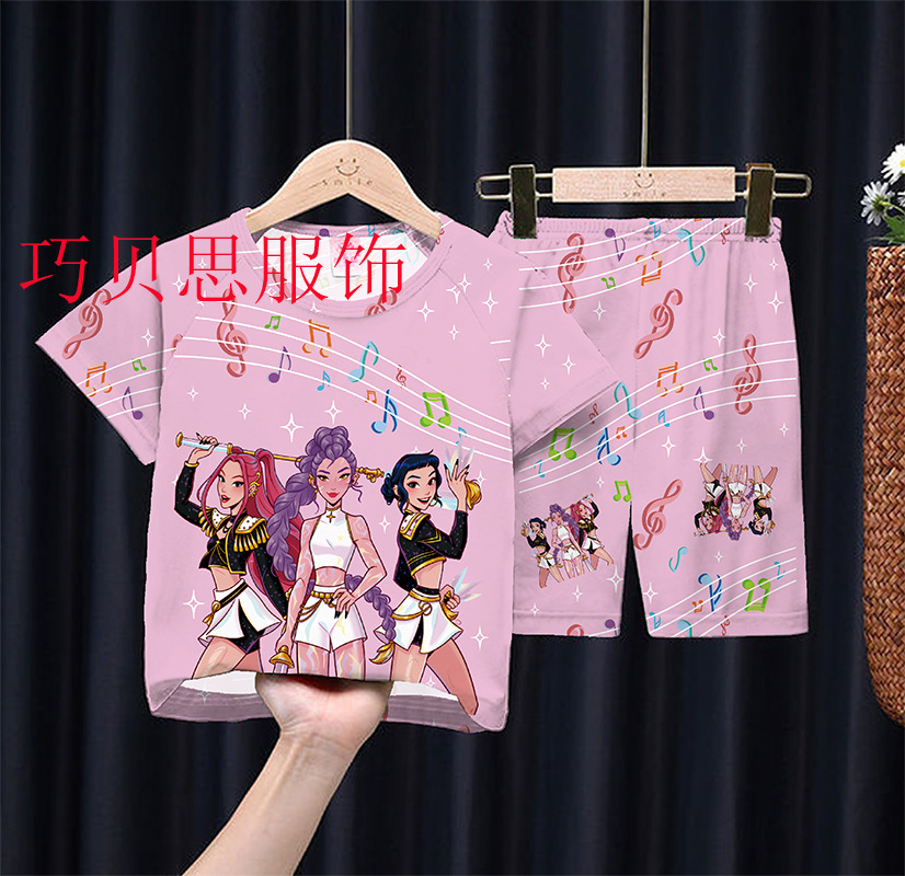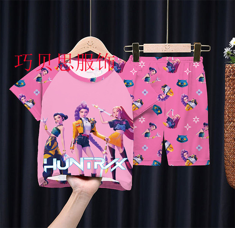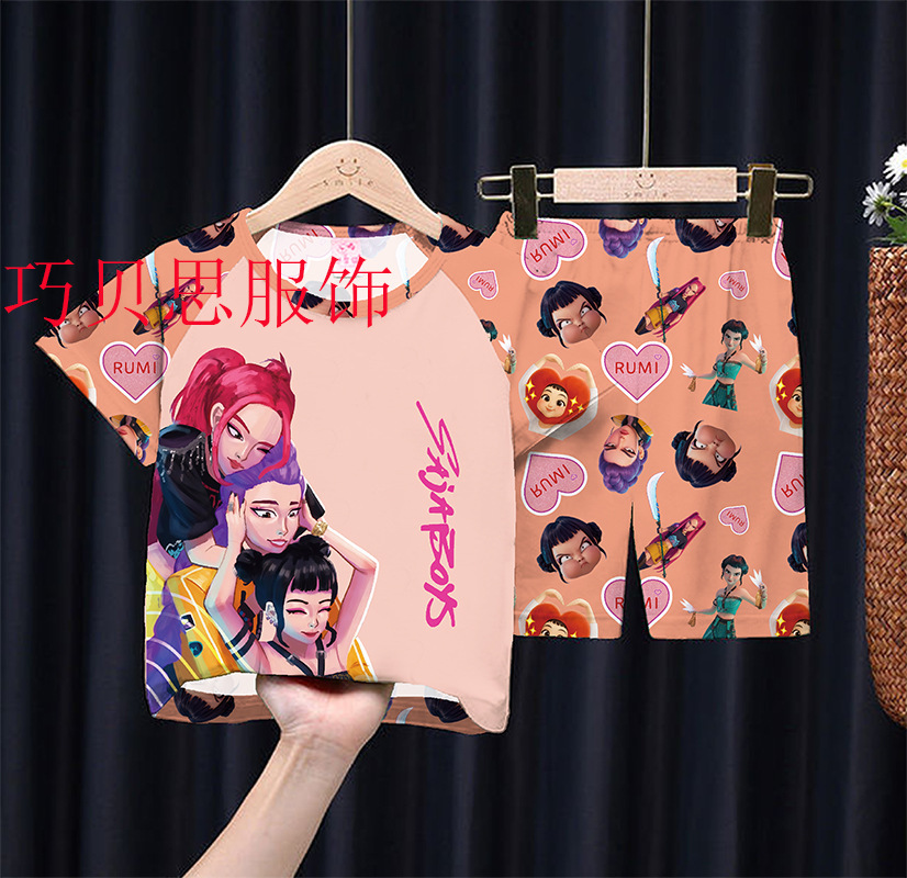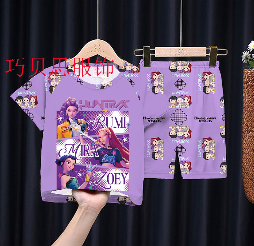 여름 어린이 잠옷 만화 캐릭터 여자아이 반팔 반바지 얇은 소재 남자아이 중대형 아동 캐주얼 세트 홈웨어 도매