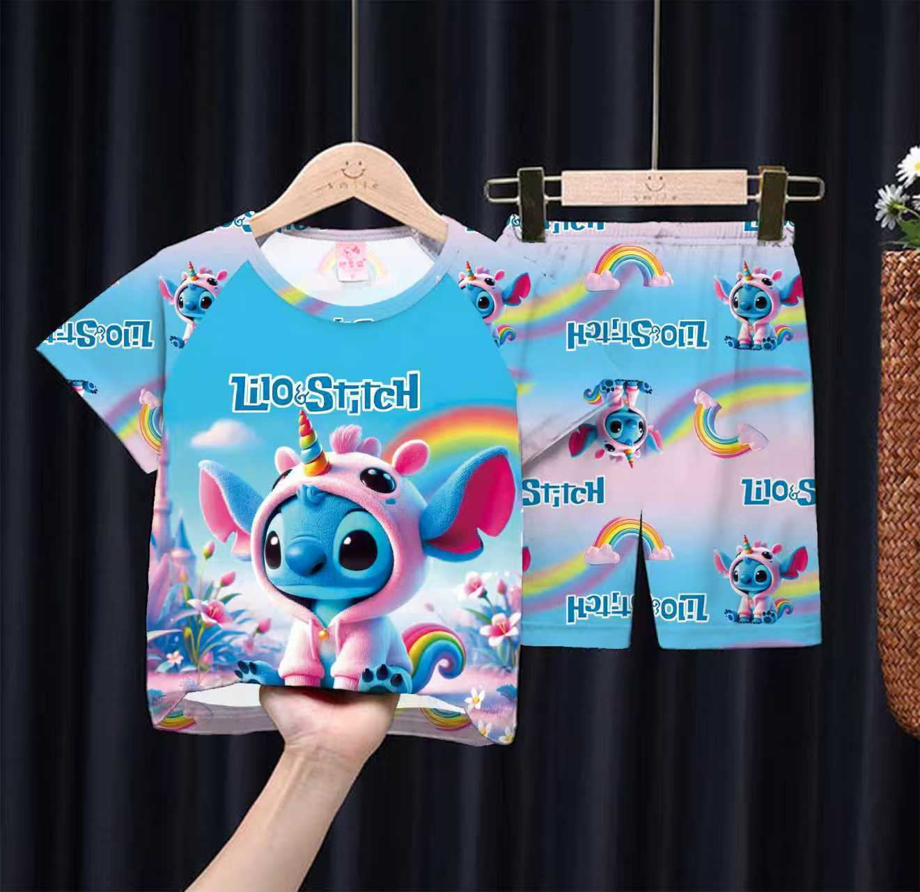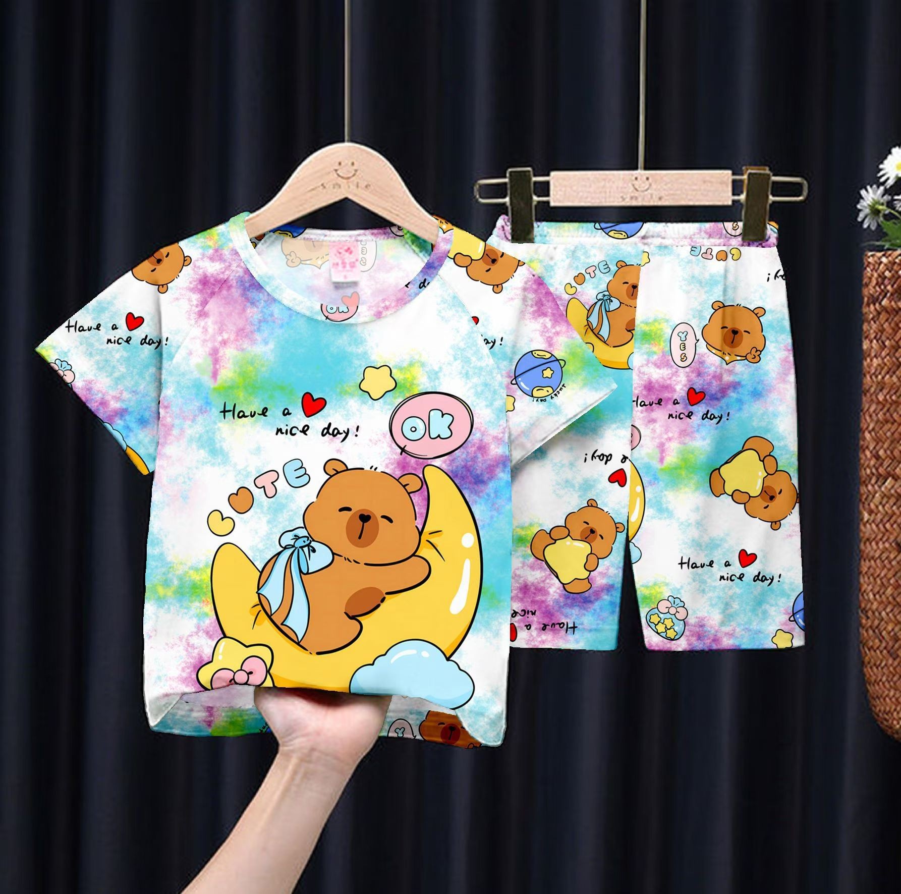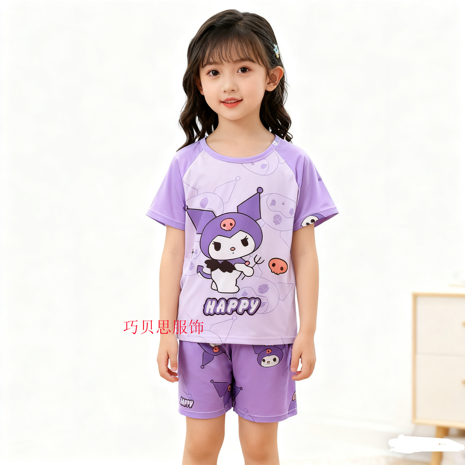 여름 어린이 잠옷 만화 캐릭터 여자아이 반팔 반바지 얇은 소재 남자아이 중대형 아동 캐주얼 세트 홈웨어 도매