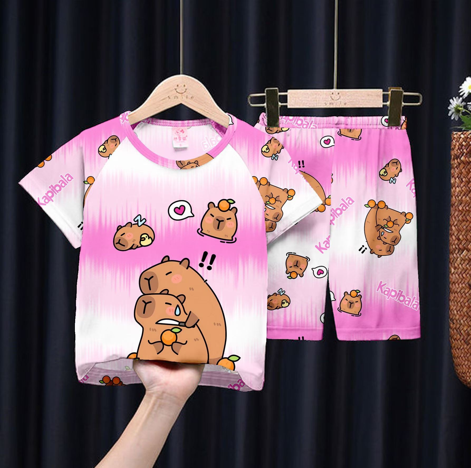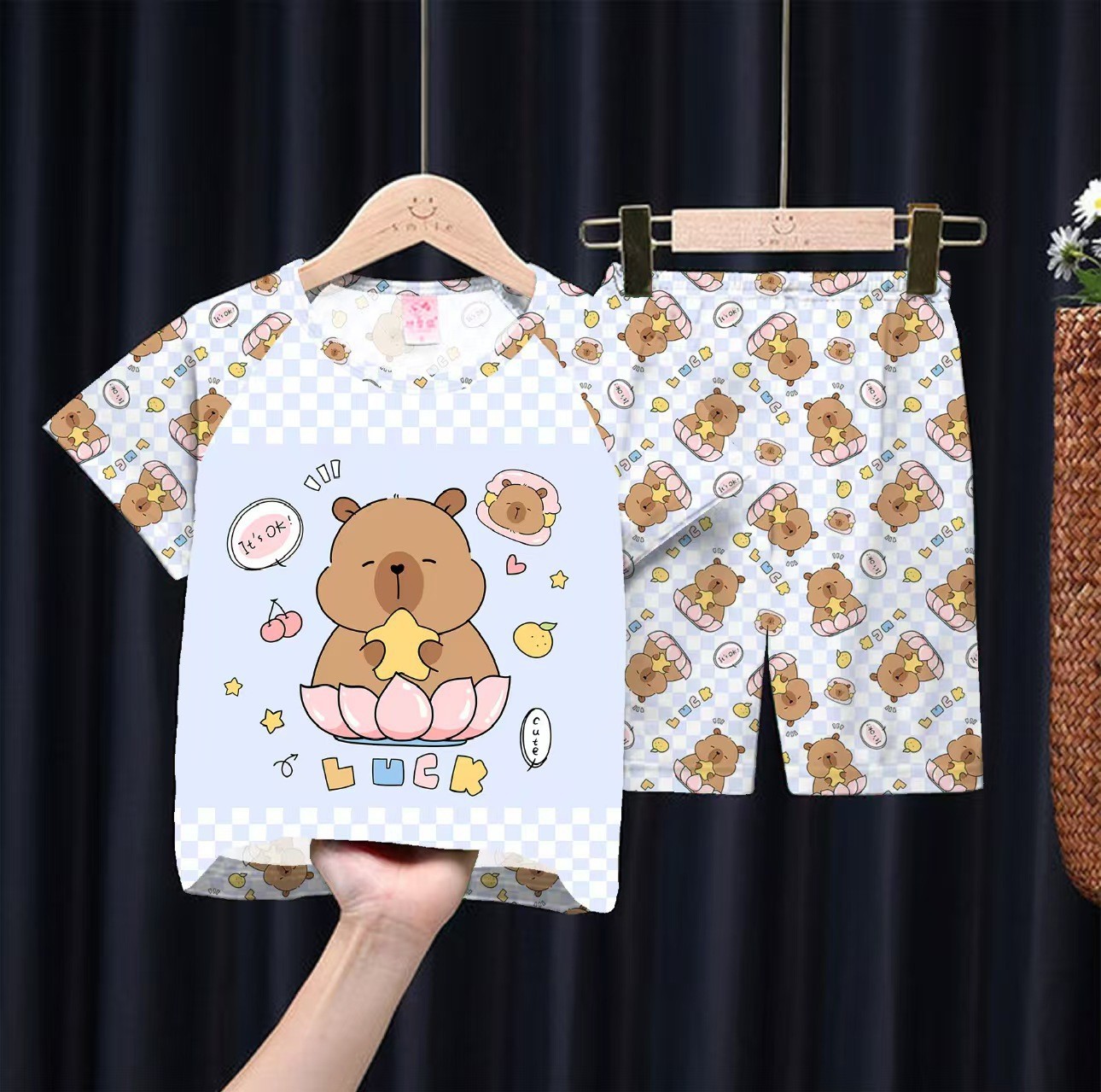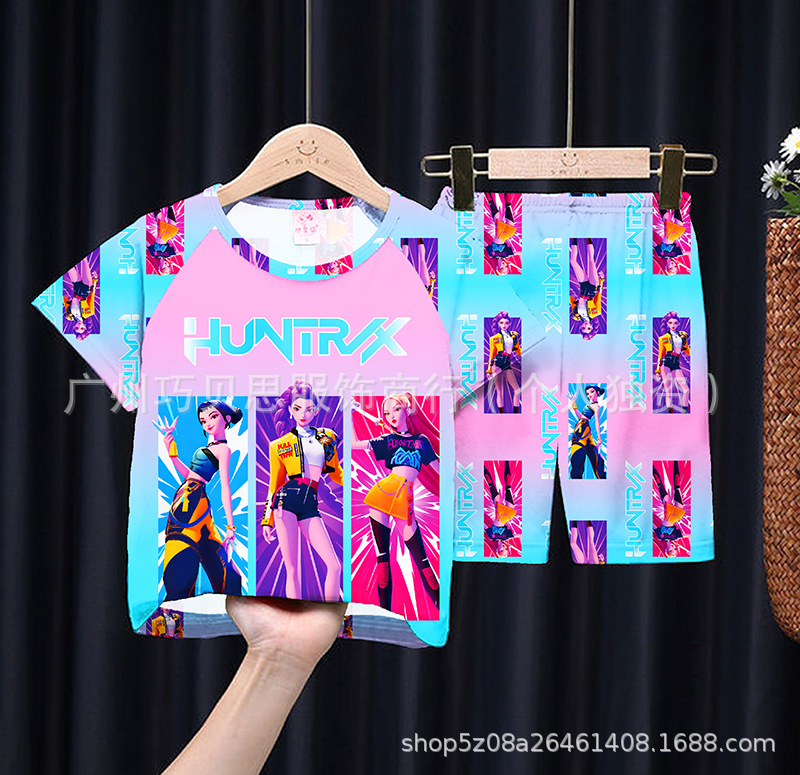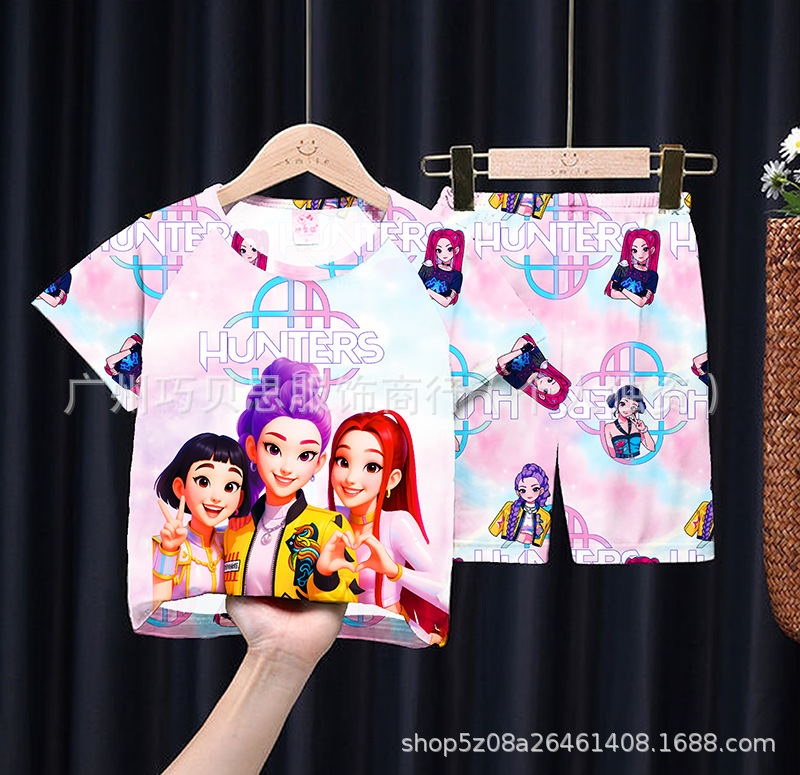 여름 어린이 잠옷 만화 캐릭터 여자아이 반팔 반바지 얇은 소재 남자아이 중대형 아동 캐주얼 세트 홈웨어 도매스토어 가기