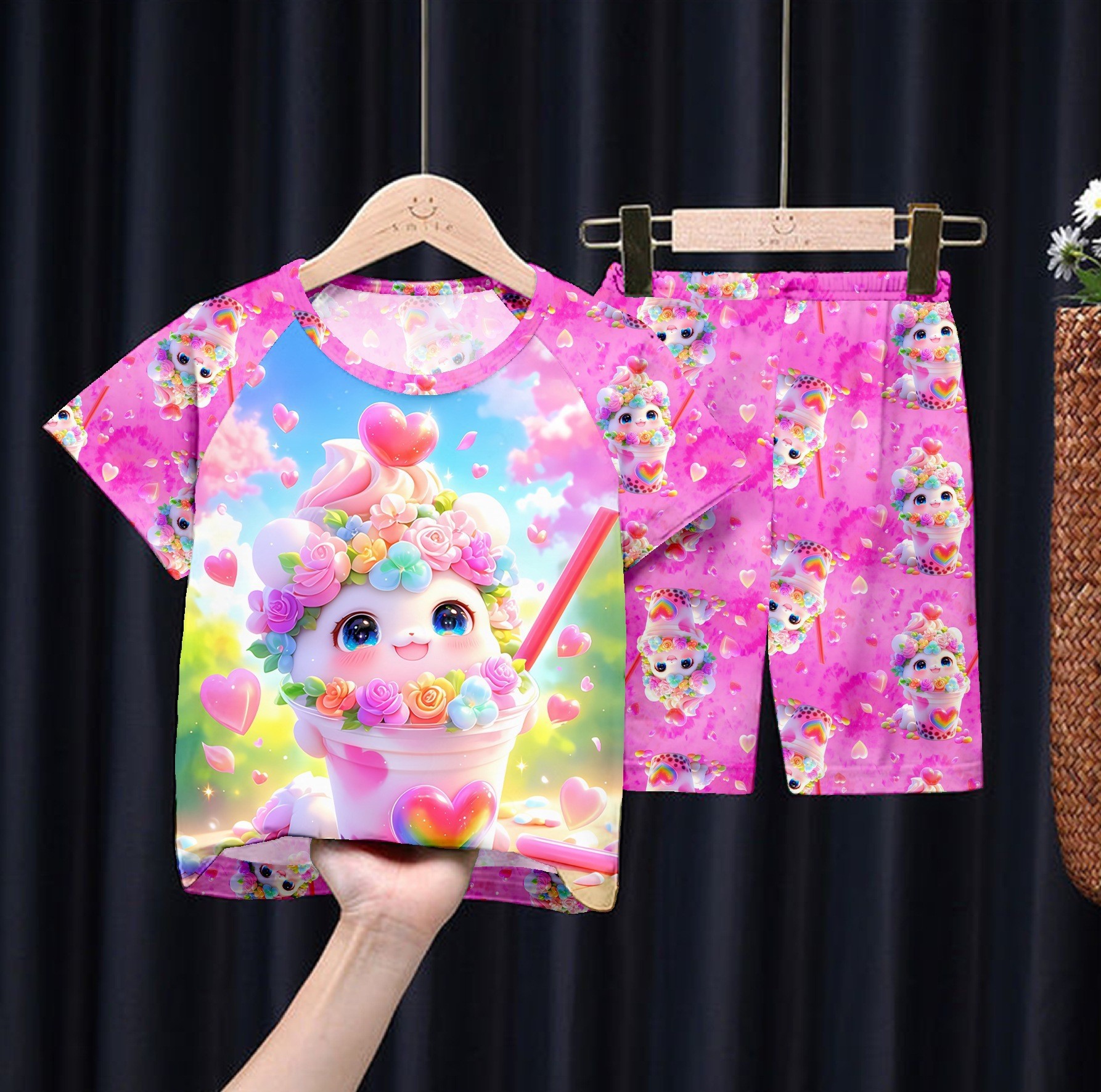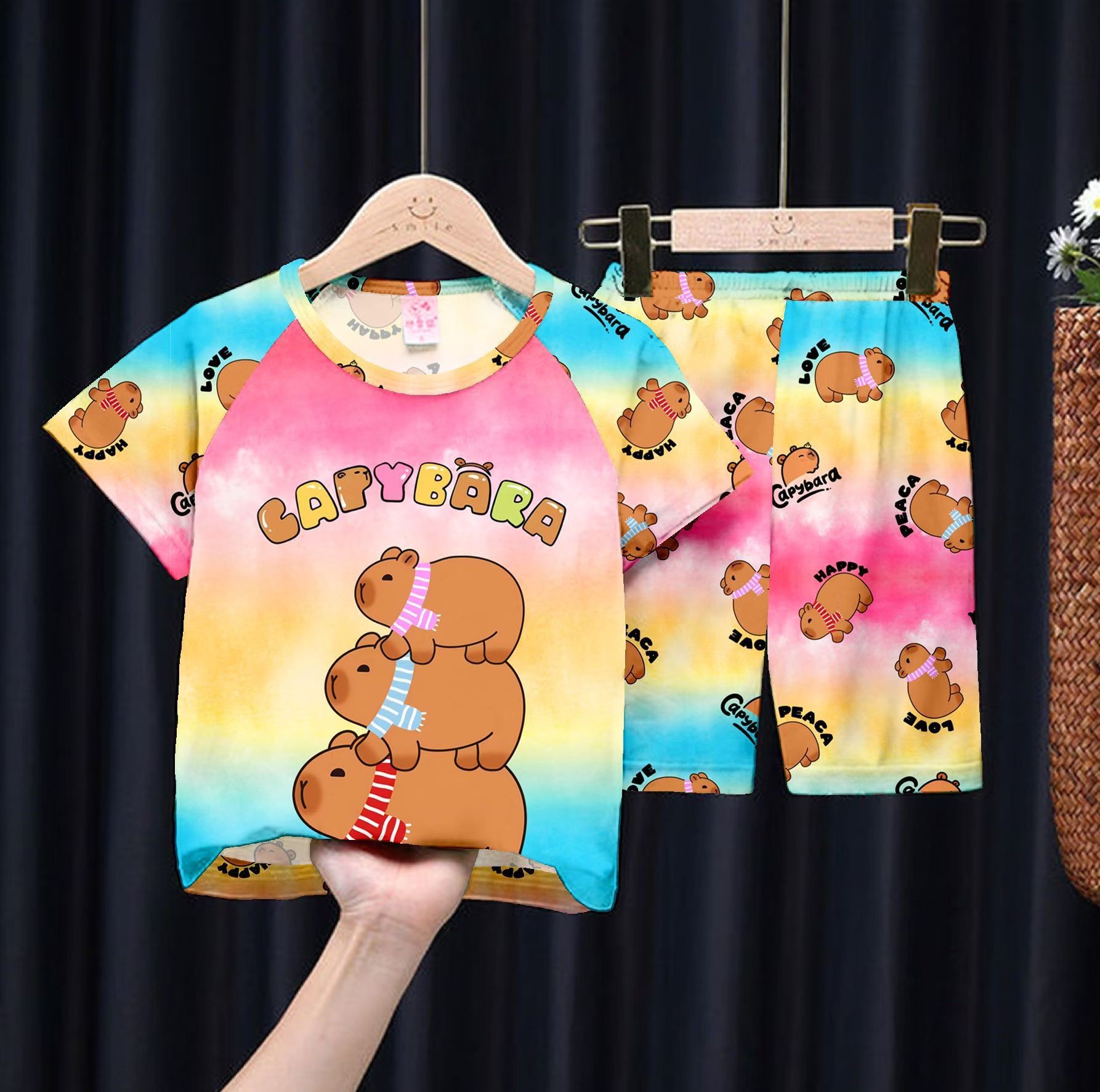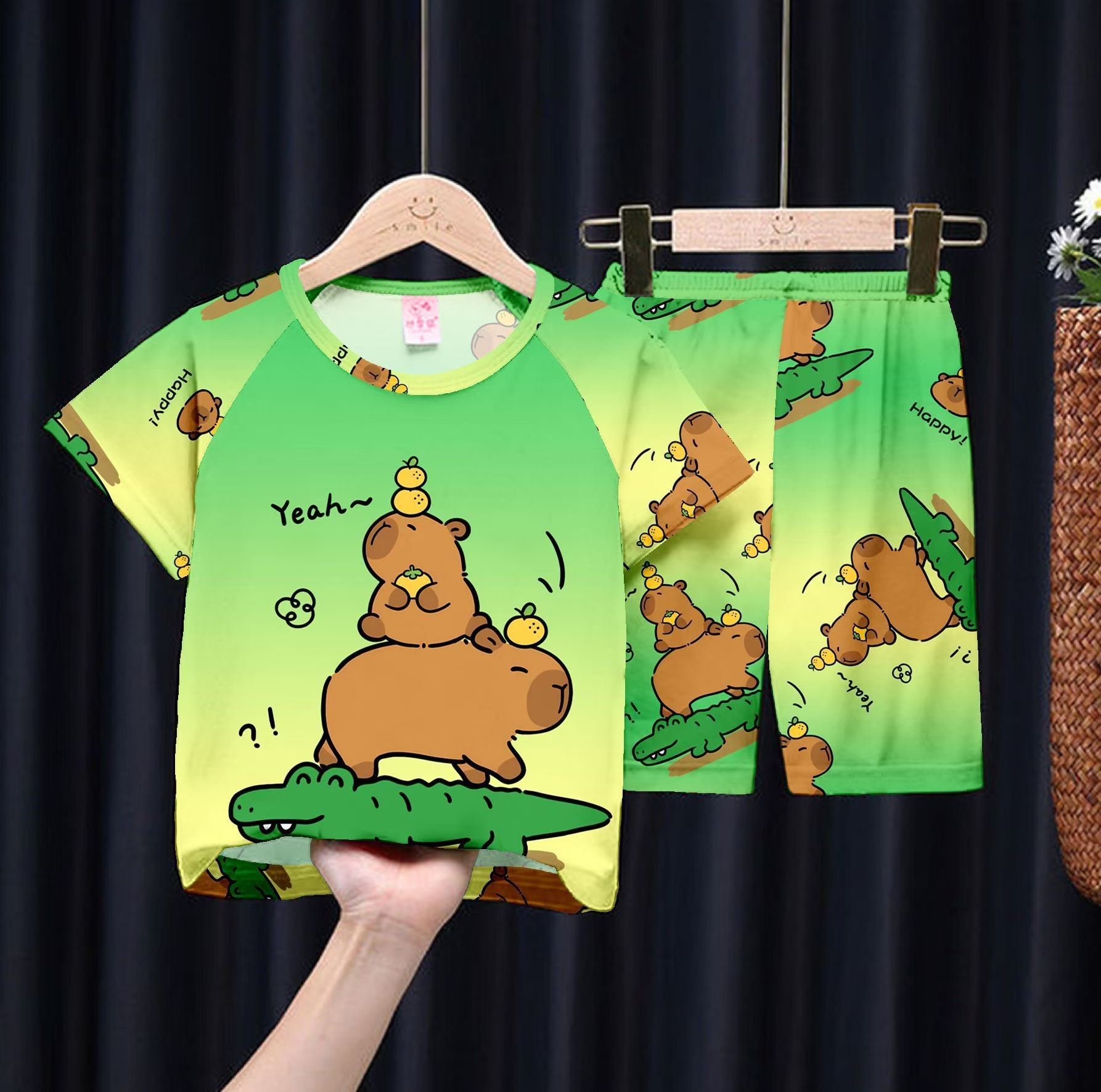 여름 어린이 잠옷 만화 캐릭터 여자아이 반팔 반바지 얇은 소재 남자아이 중대형 아동 캐주얼 세트 홈웨어 도매스토어 가기
