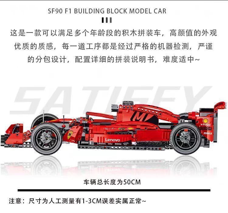 국경 간 빌딩 블록 81002 방정식 SP90 1:10 레이싱 모델 성인 조립 퍼즐 빌딩 블록 럭셔리카 로고 장난감
