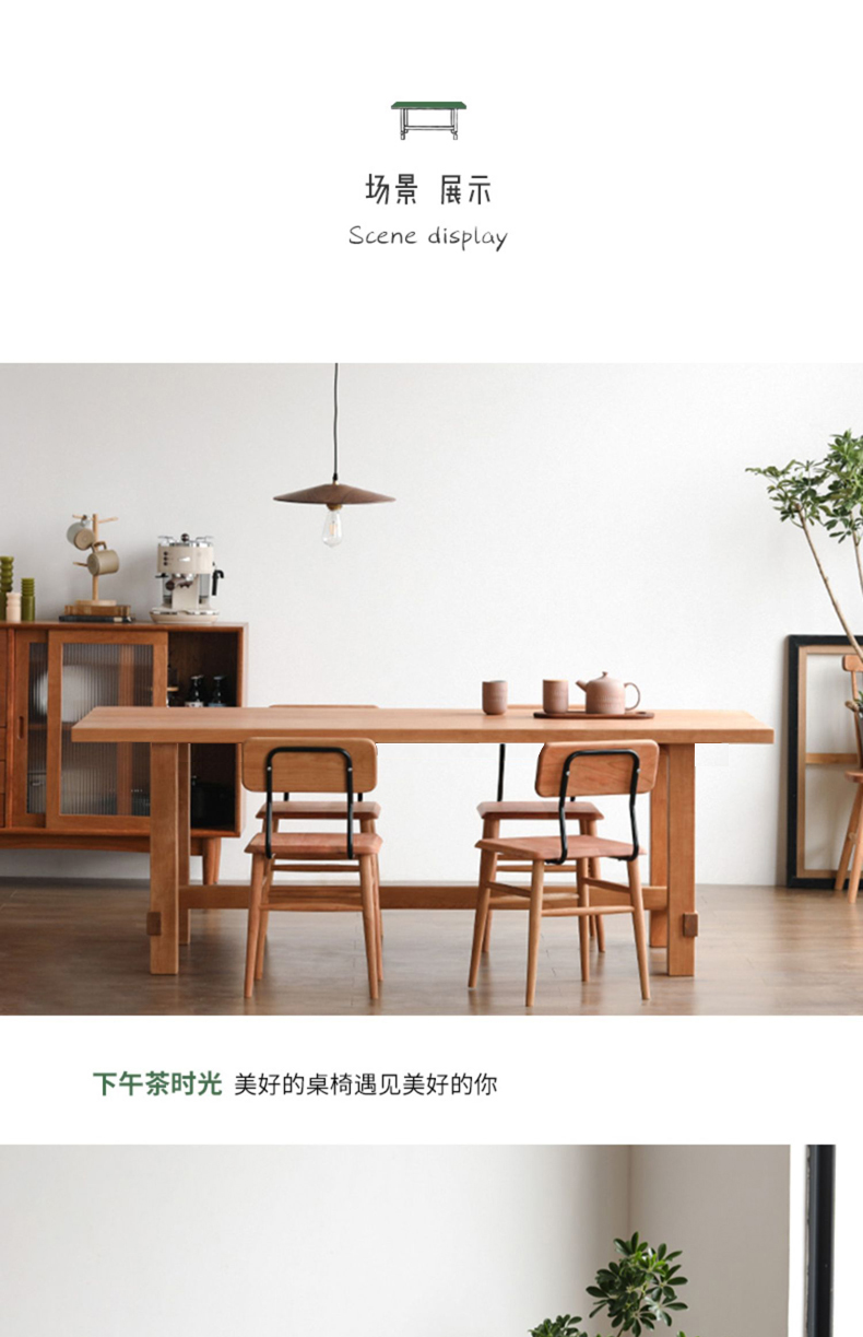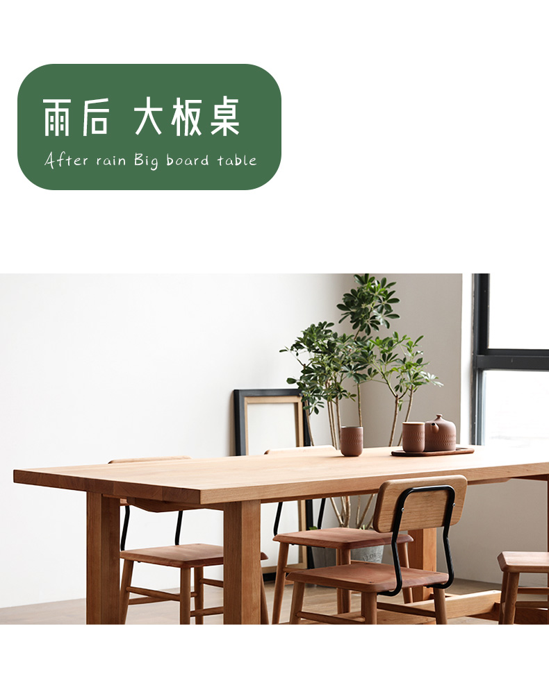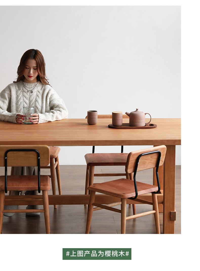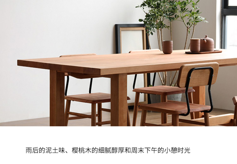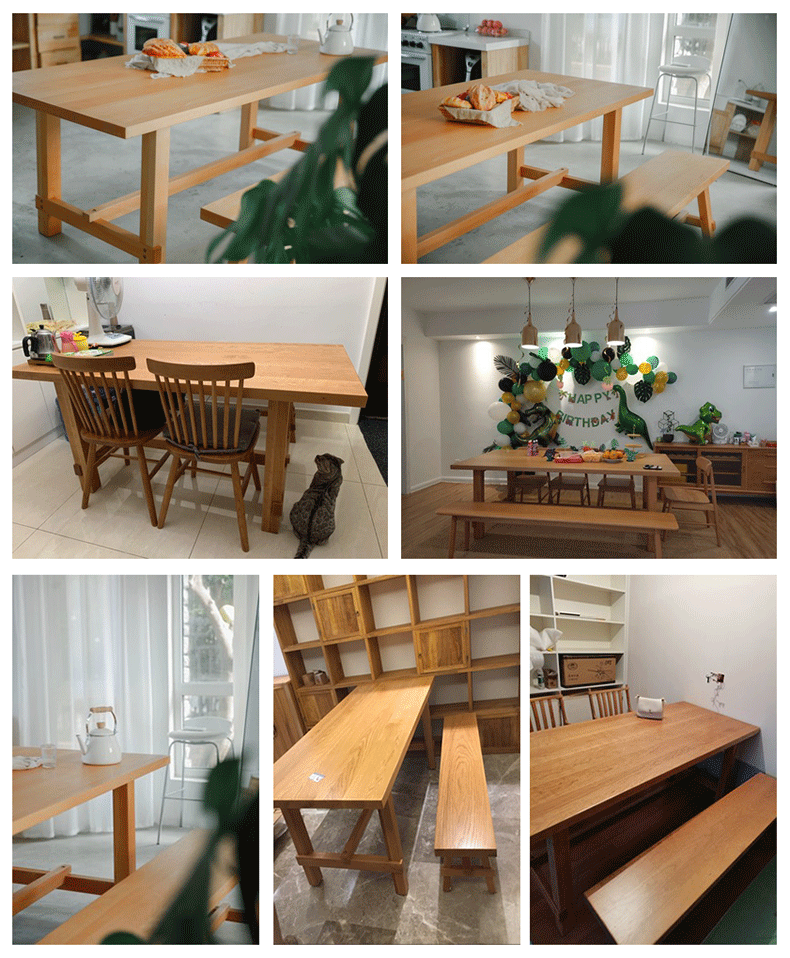 温馨提示:物流发货运费都含保费,我们的每件产品出厂配送前都会再检查,为保障您的权益,请查验货物,在没有发现问题后,再付运费并在运单上签字,如产品出现质量问题和损坏,请拒收拍照留底并及时沟通我们,如果签收了才发现有损坏,本店不接受退款和赔偿,为避免您不要的损失!我们包装仔细,多层包装,外部纸箱,我们发的货物流是中途小问题的,大家放心物流吧!产品定做是不支持退货的,只有在产品做的不对或者质量问题下才是可以的哈,不过敬爱的客户,我们家开厂已经是很久了所以请你们放心哈!现代简约全实木餐桌椅组合 家用长条吃饭桌子 餐厅大板原木餐桌
