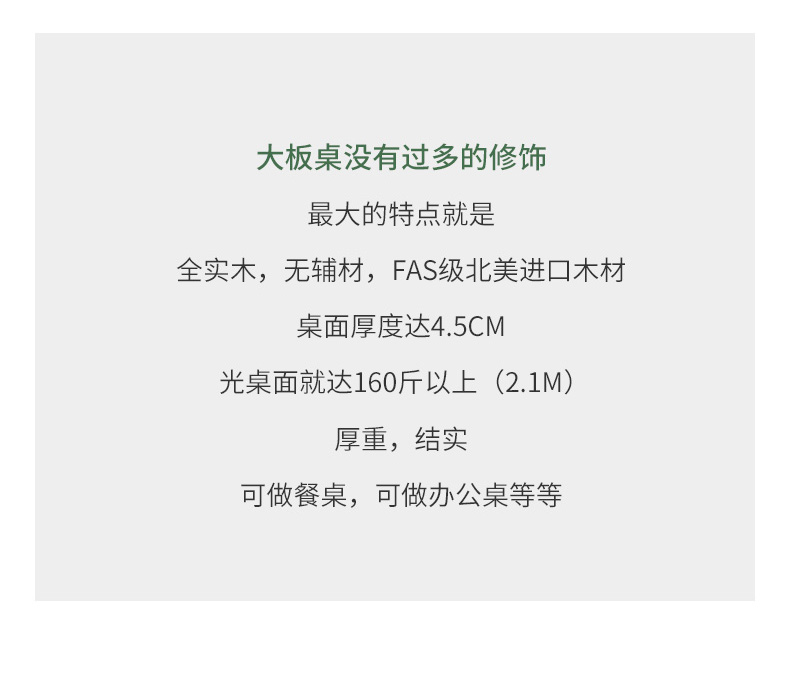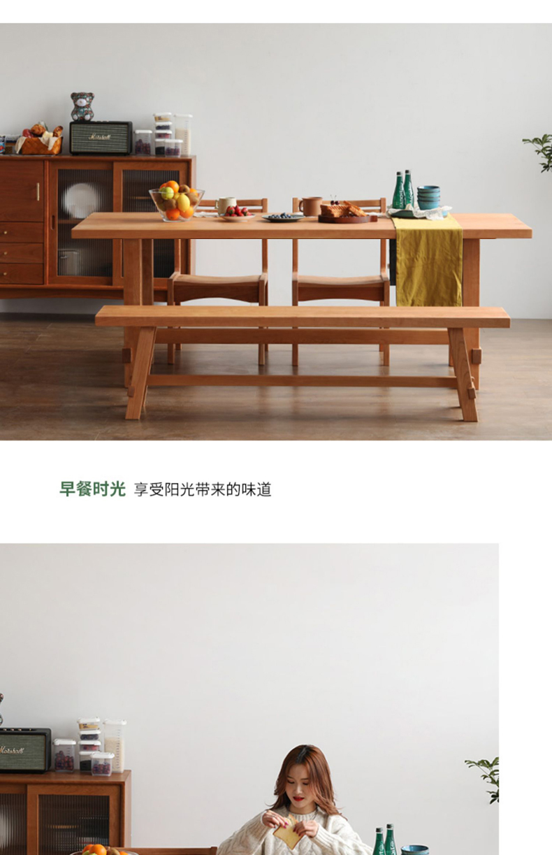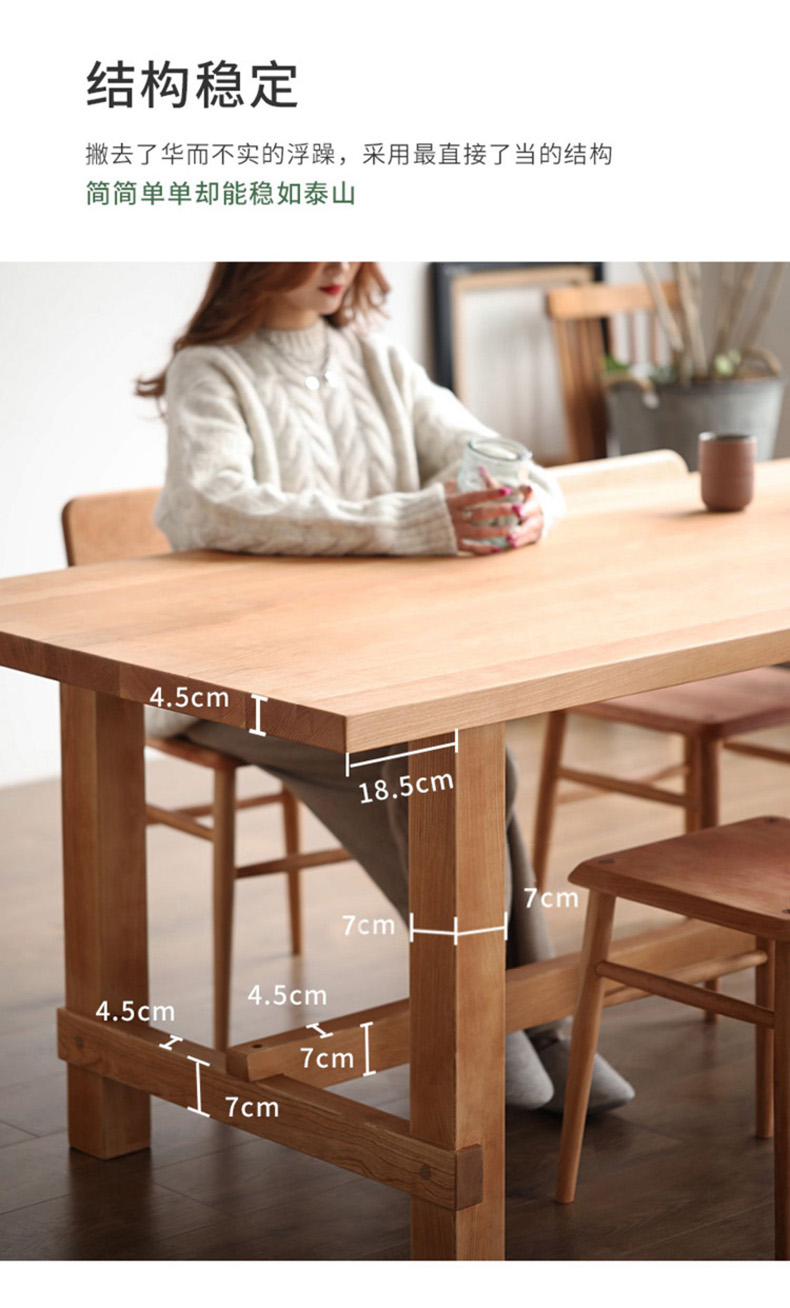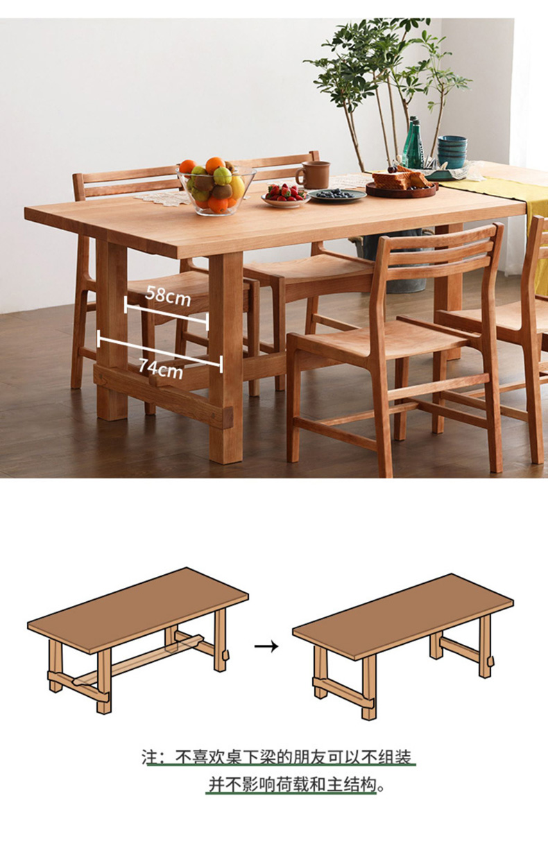 温馨提示:物流发货运费都含保费,我们的每件产品出厂配送前都会再检查,为保障您的权益,请查验货物,在没有发现问题后,再付运费并在运单上签字,如产品出现质量问题和损坏,请拒收拍照留底并及时沟通我们,如果签收了才发现有损坏,本店不接受退款和赔偿,为避免您不要的损失!我们包装仔细,多层包装,外部纸箱,我们发的货物流是中途小问题的,大家放心物流吧!产品定做是不支持退货的,只有在产品做的不对或者质量问题下才是可以的哈,不过敬爱的客户,我们家开厂已经是很久了所以请你们放心哈!现代简约全实木餐桌椅组合 家用长条吃饭桌子 餐厅大板原木餐桌