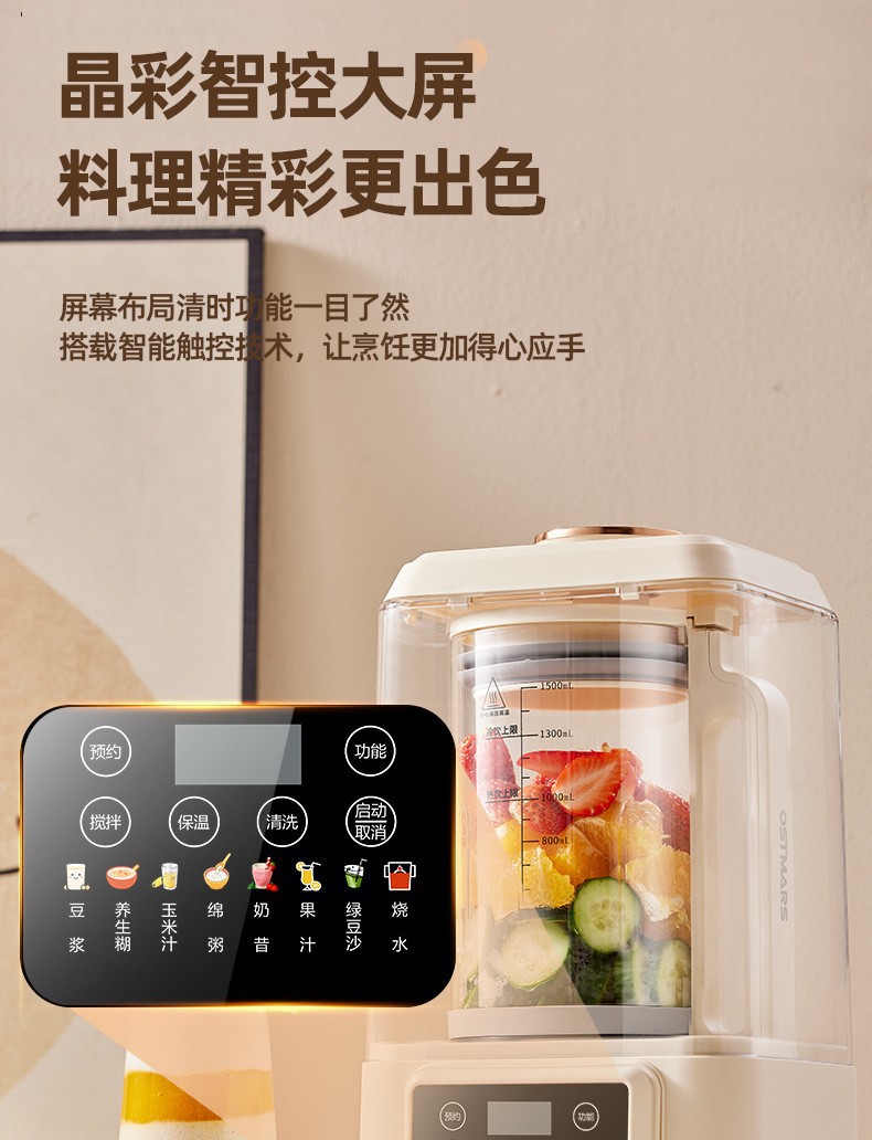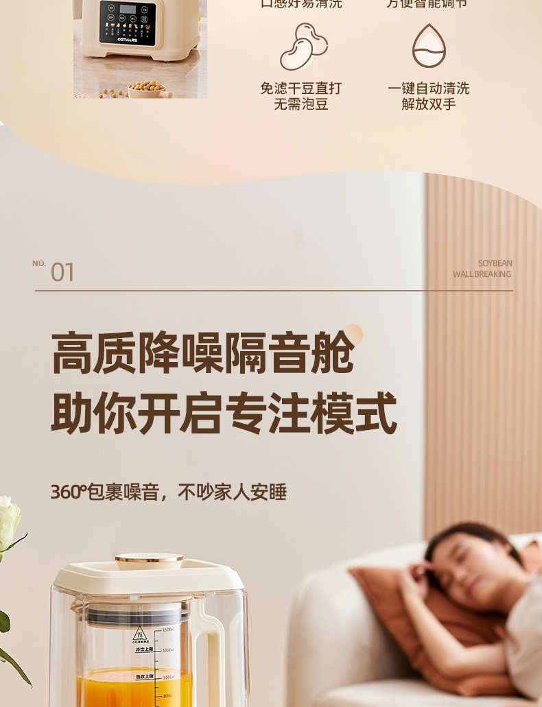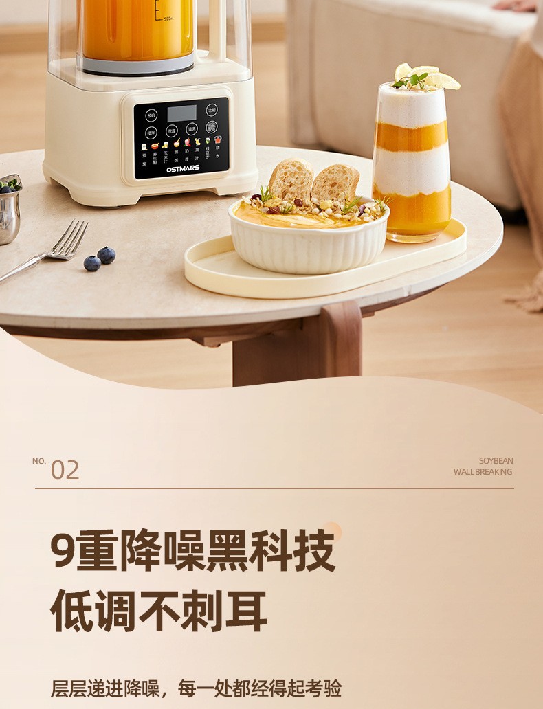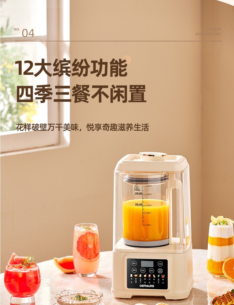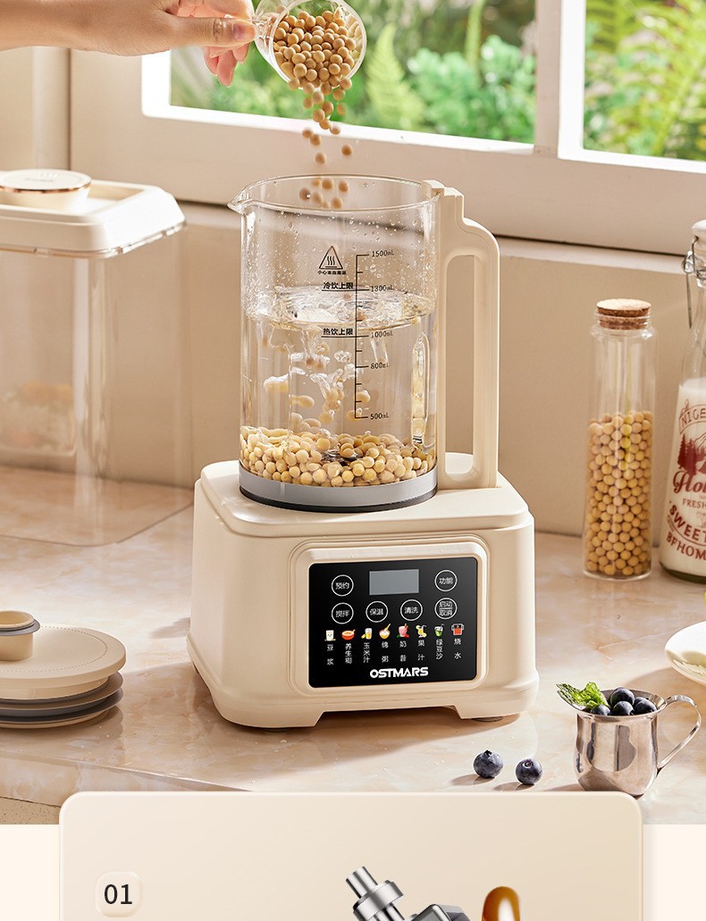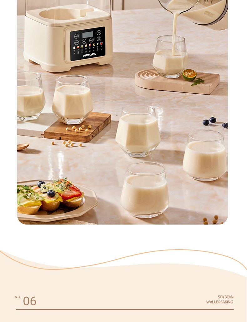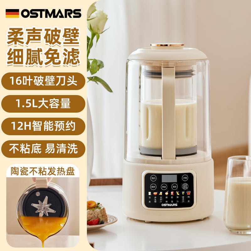 OSTMARS 다기능 새로운 콩 우유 기계 자동 가정용 지능형 음소거 요리 기계 필터없는 벽 깨는 기계