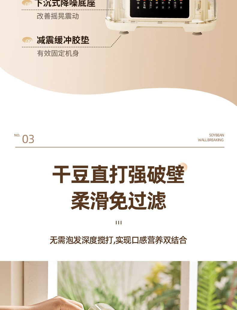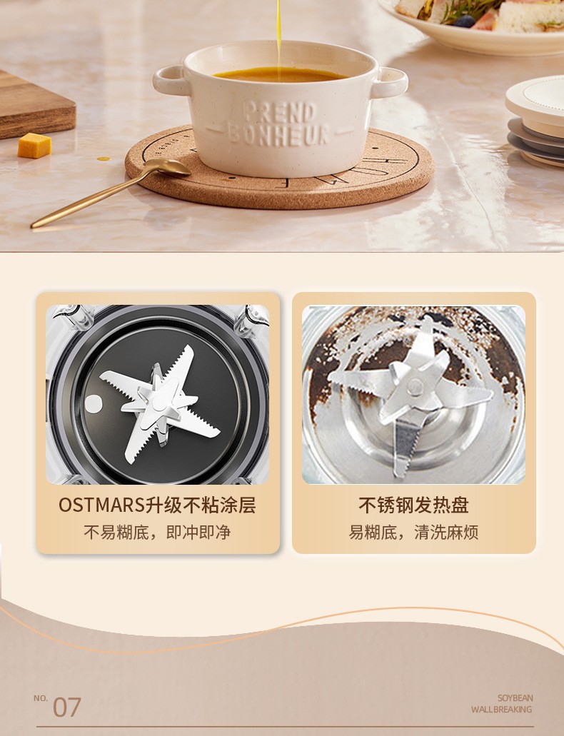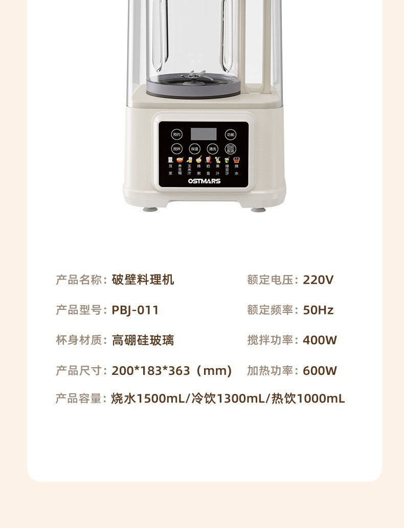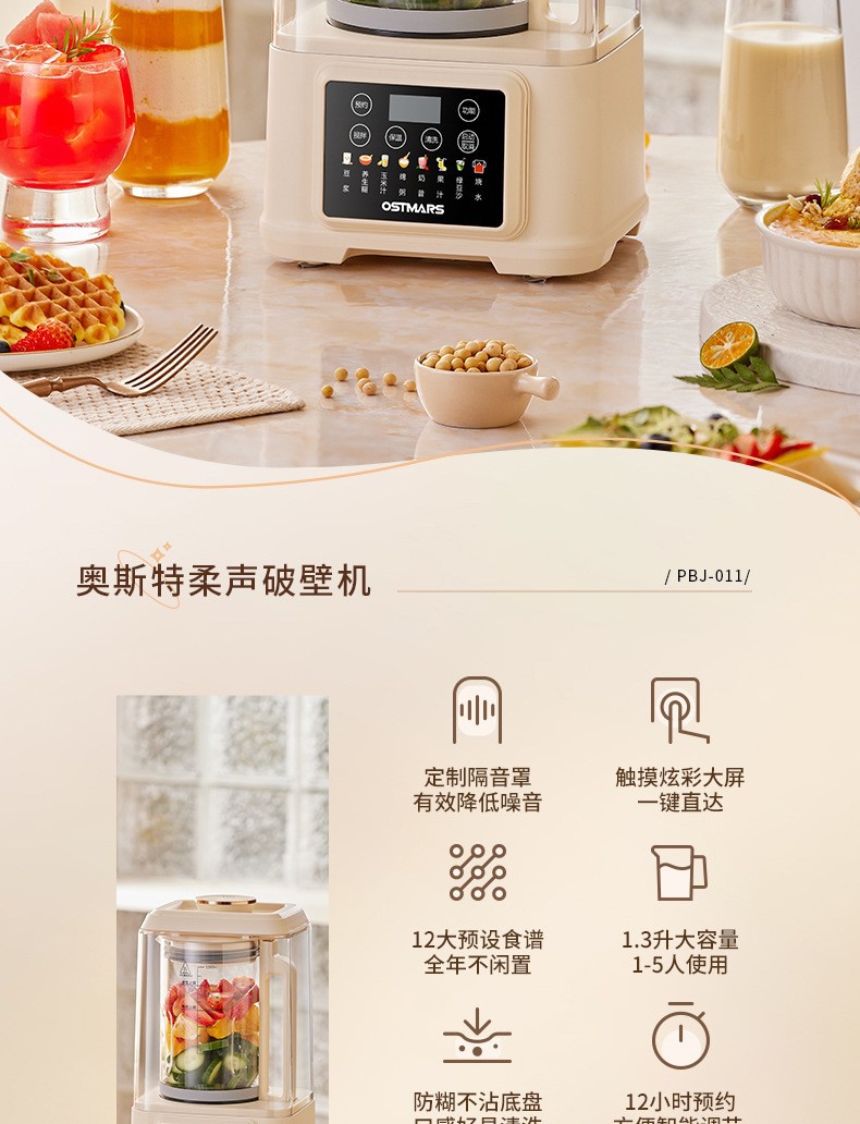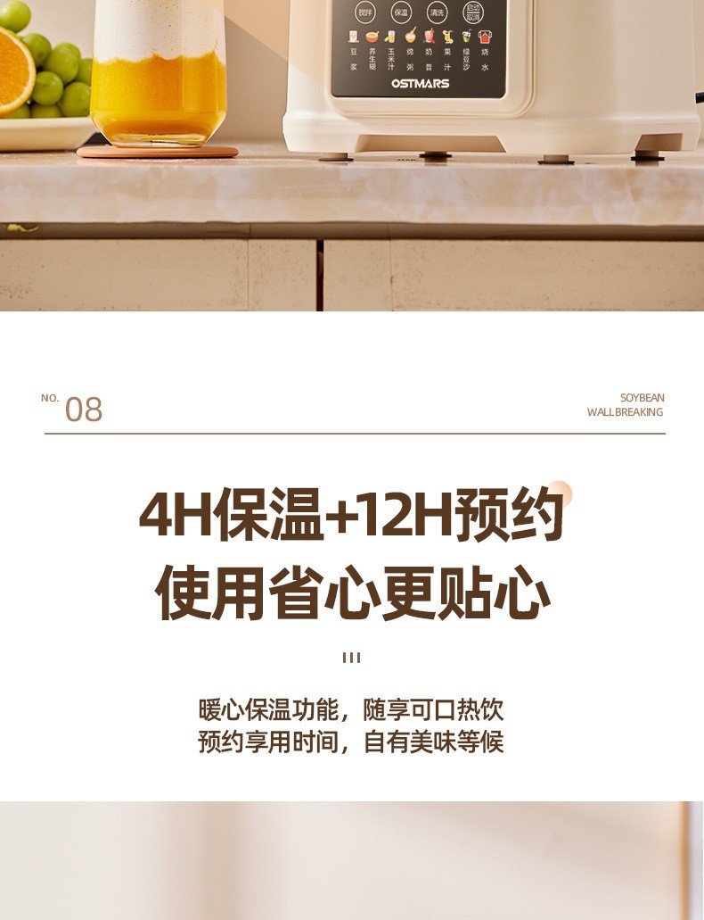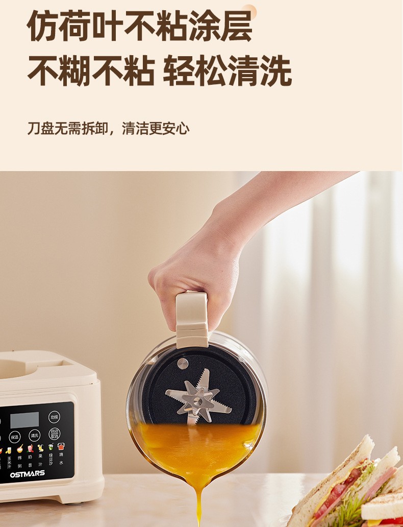 OSTMARS 다기능 새로운 콩 우유 기계 자동 가정용 지능형 음소거 요리 기계 필터없는 벽 깨는 기계