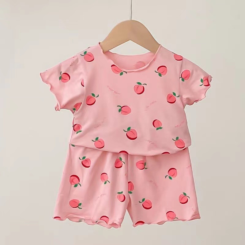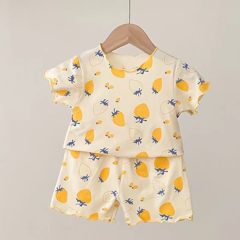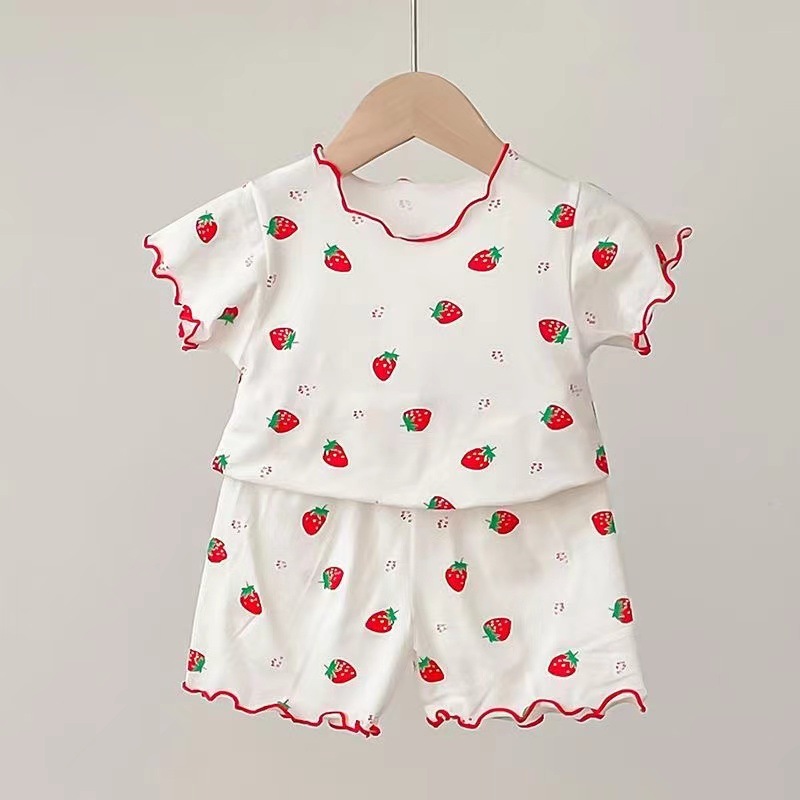 여름 소녀 홈 의류 세트 아기의 서양식 어린이 맞춤형 유행 한국 스타일 딸기 꽃 반팔 반바지 파자마