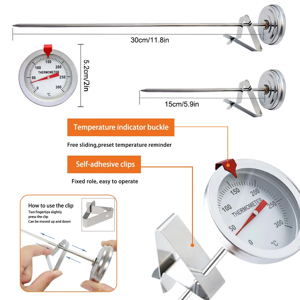 기계 프라이어 식품 가정용 주방 액세서리 오일 온도계 바이메탈 스테인레스 스틸 고정밀 온도계