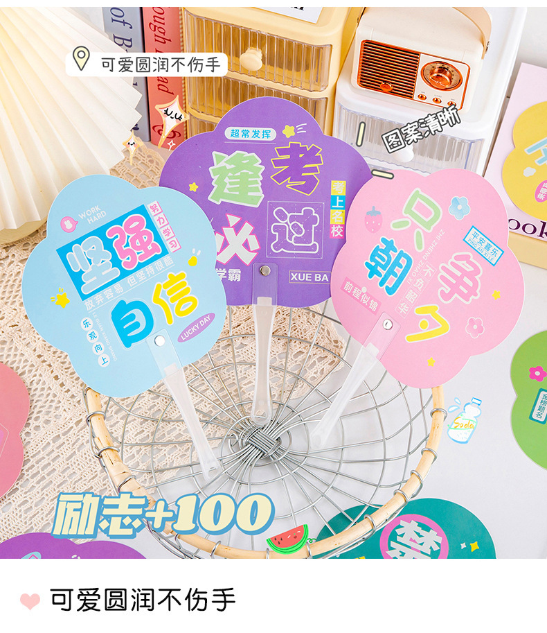 새로운 영감을주는 텍스트 시리즈 멋진 팬 어린이 여름 미니 핸드 헬드 편리한 작은 라운드 팬 변경 가능한 광고 팬스토어 가기