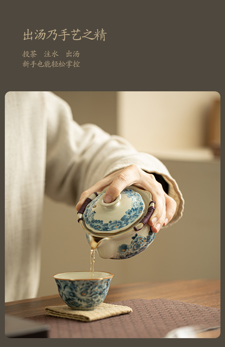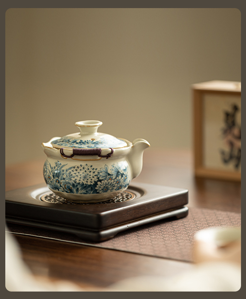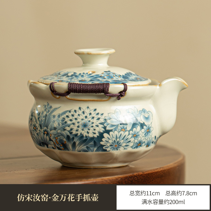 Dehua 차 세트 수제 주전자 세라믹 Ru Kiln 파란색과 흰색 Xiangyun 핸드 헬드 냄비 주전자 홈 오피스 쿵푸 차 세트스토어 가기