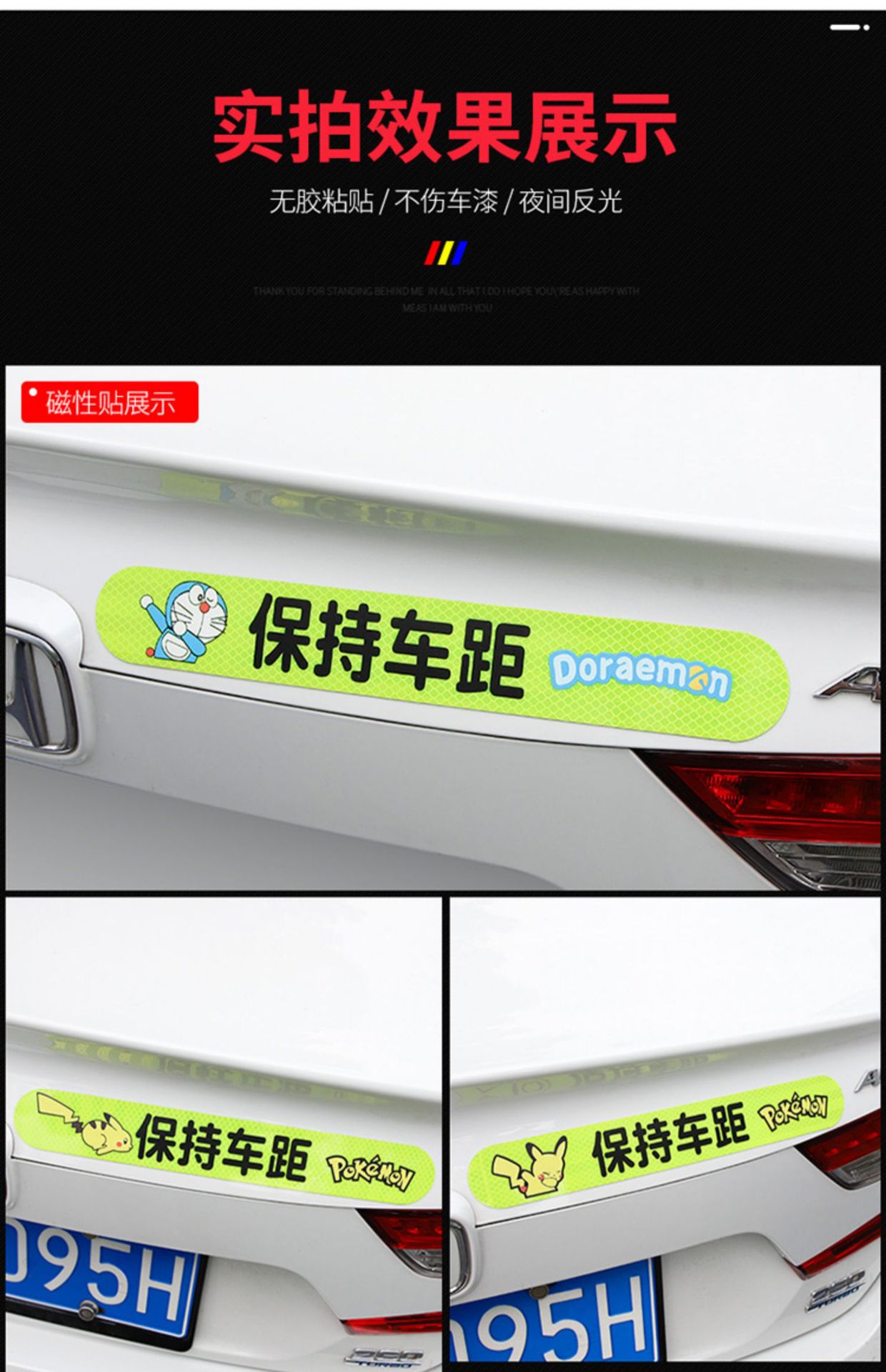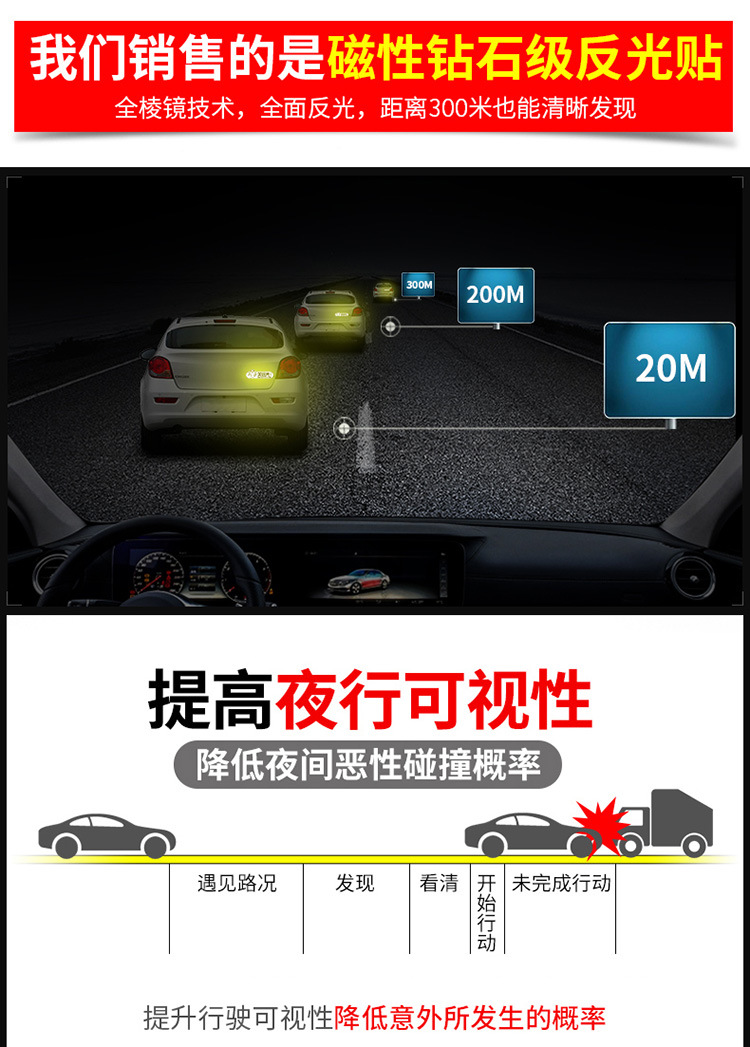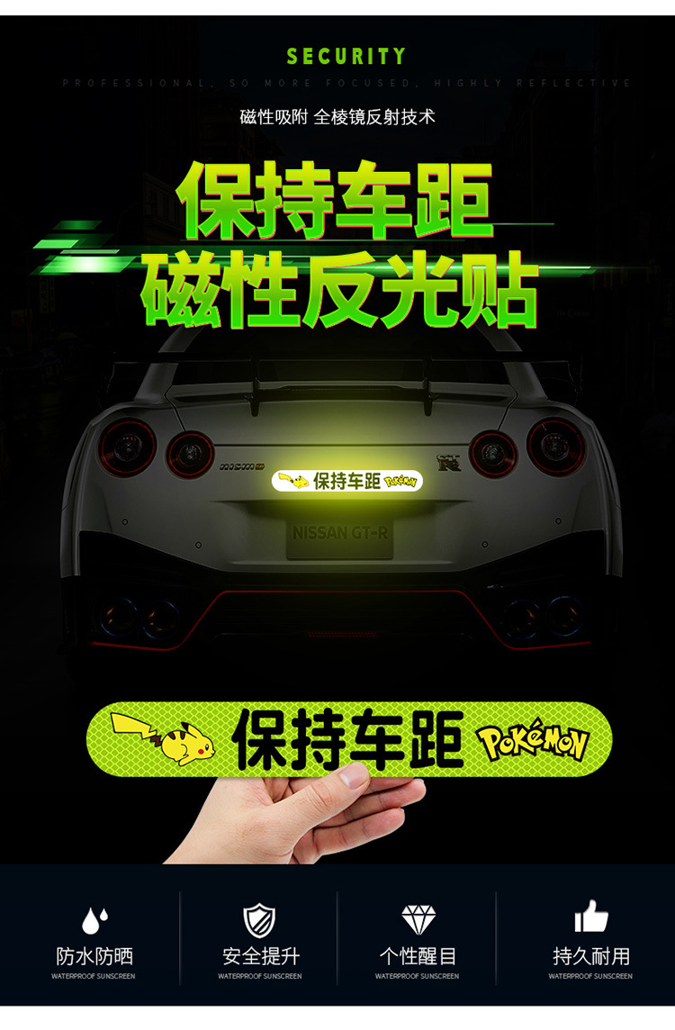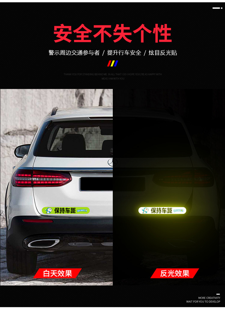 자동차 후방 유지 거리 강한 반사 스티커 자동차 자기 만화 창조적 인 장식 밤 팁 경고 자동차 스티커스토어 가기
