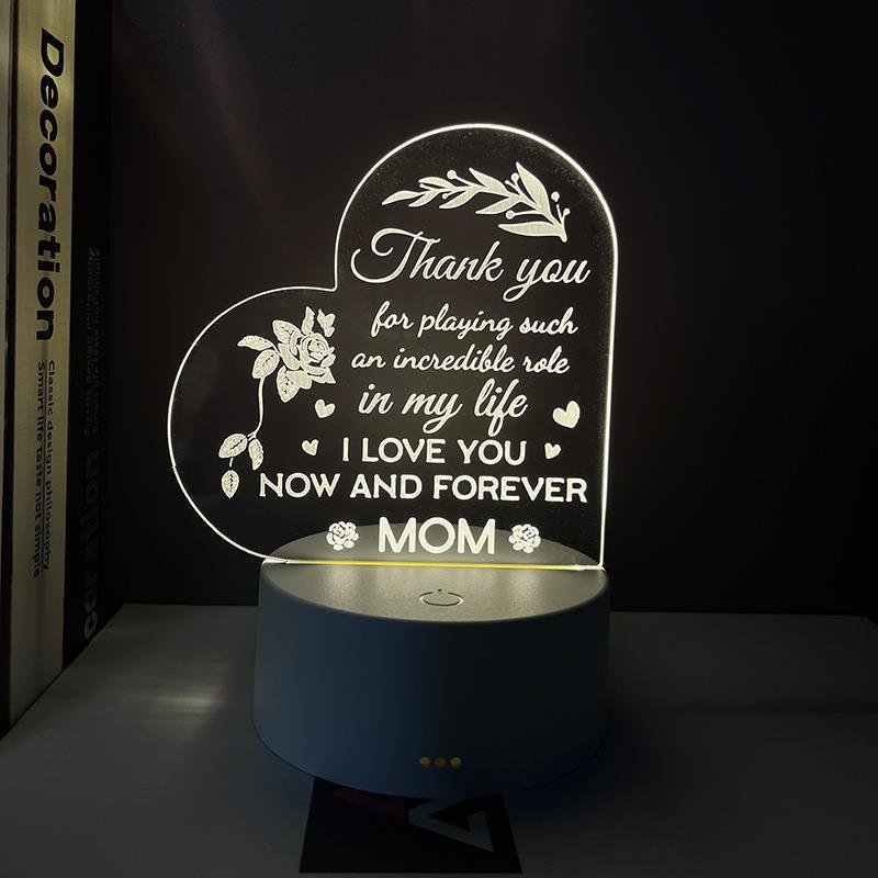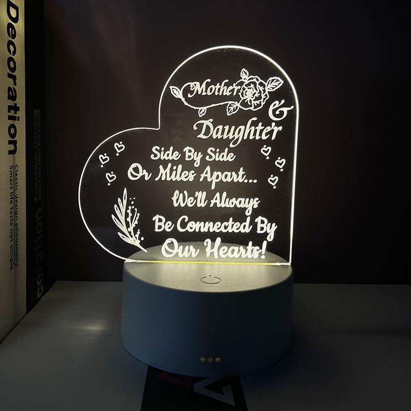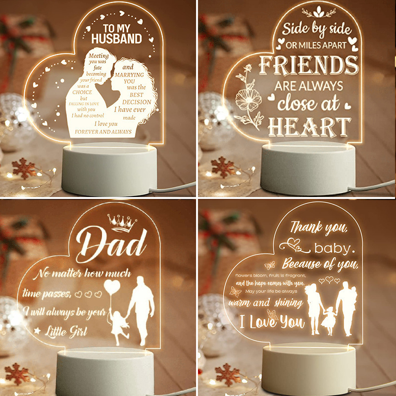 부모와 자매를위한 새로운 3d 야간 사랑 소녀 축복 아크릴 분위기 Led 빛 휴일 선물