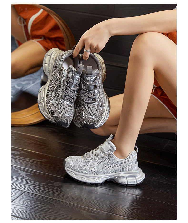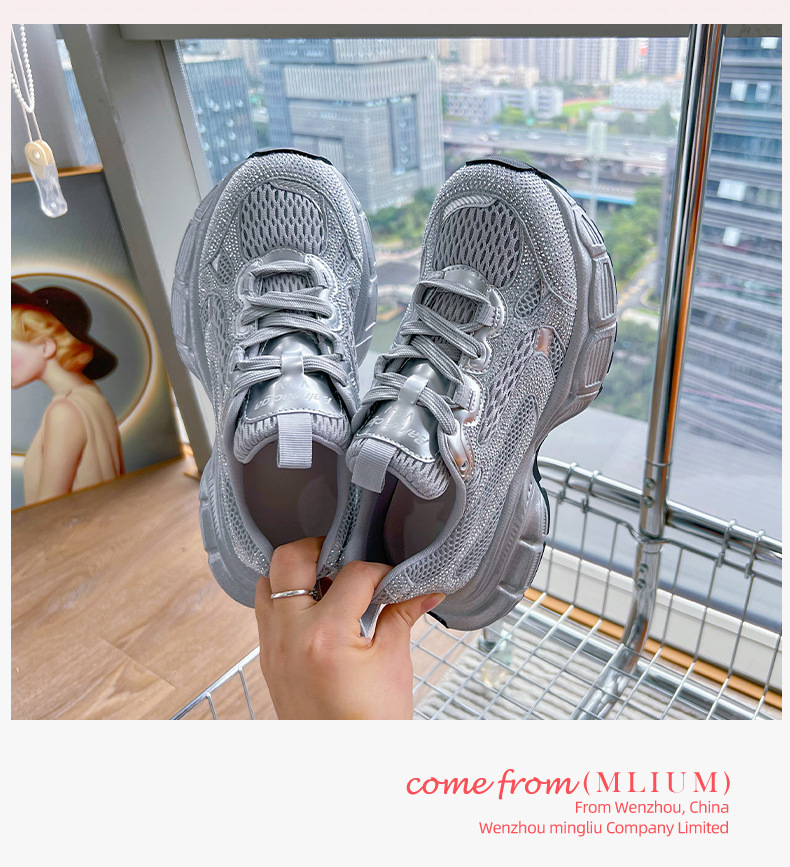 새로운 흡입 필름 단독 토레 신발 여성의 2024 여름 두꺼운 단독 빛나는 운동화 여성용 경량 메쉬 신발 통기성 여성 신발