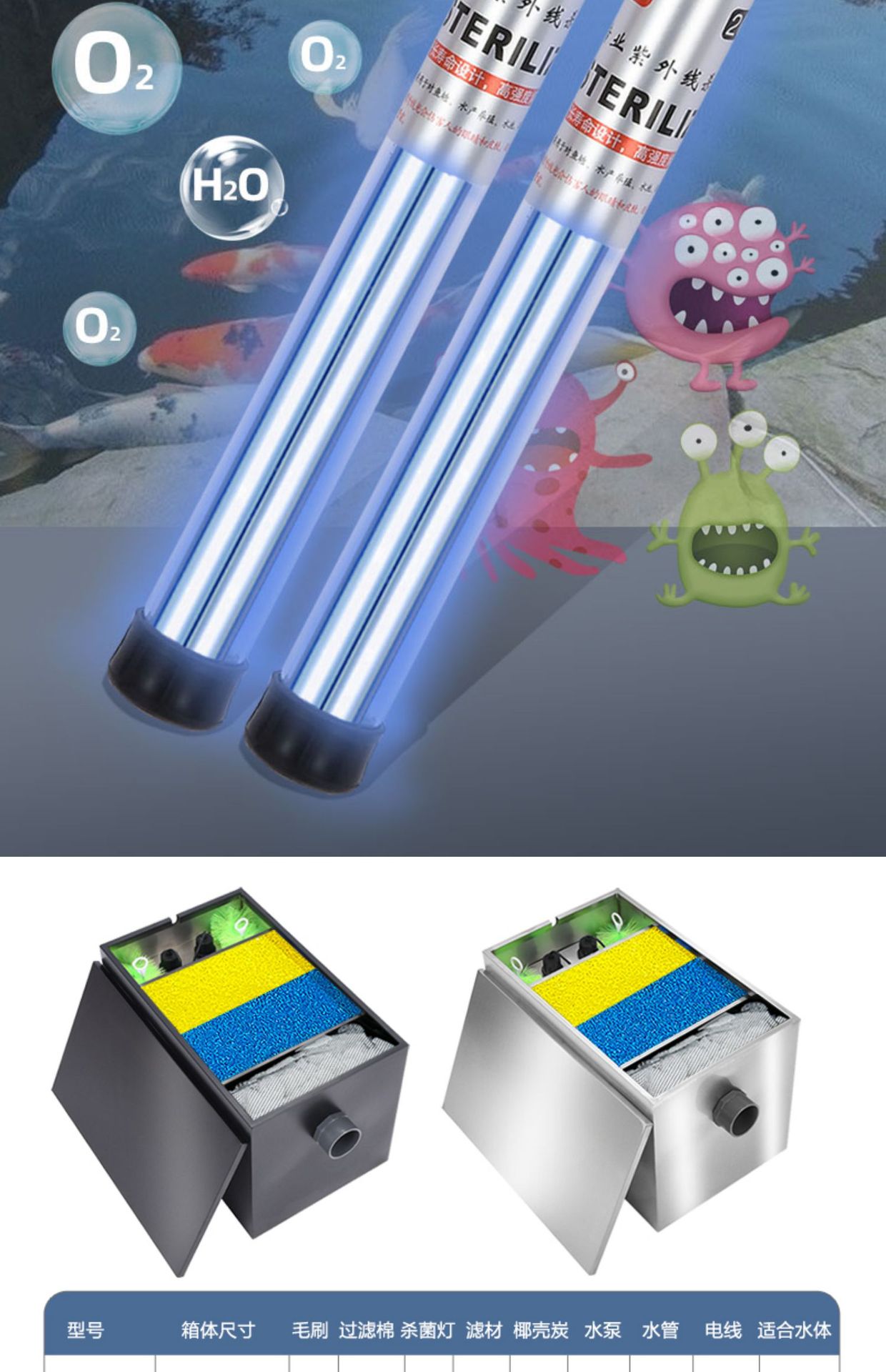 • 25-50 평방 벨트 필터 material-FP-1000A 단일 상자에는 워터 펌프와 수도관 100*40*40cm 블랙 베이킹 바니시가 포함되어 있지 않습니다.