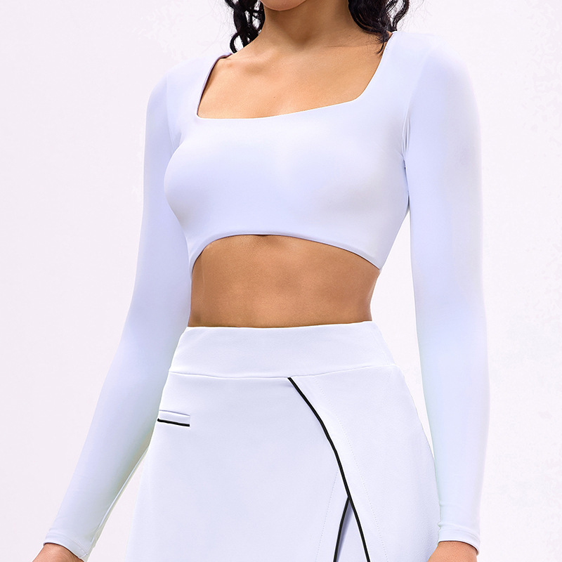새로운 여름 피트니스 달리기 스포츠 스커트 긴 소매 탑 가슴 패드 테니스 옷 골프 테니스 스커트 여자