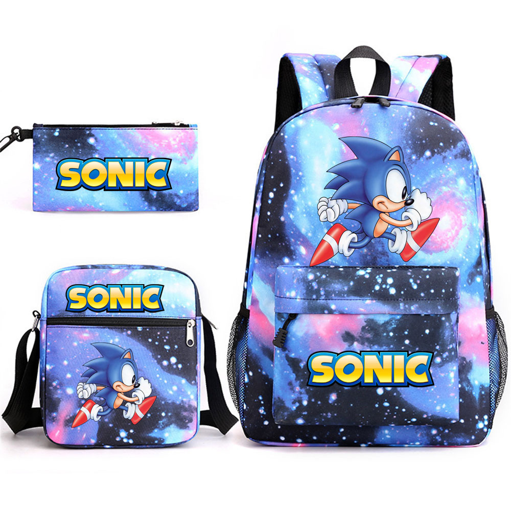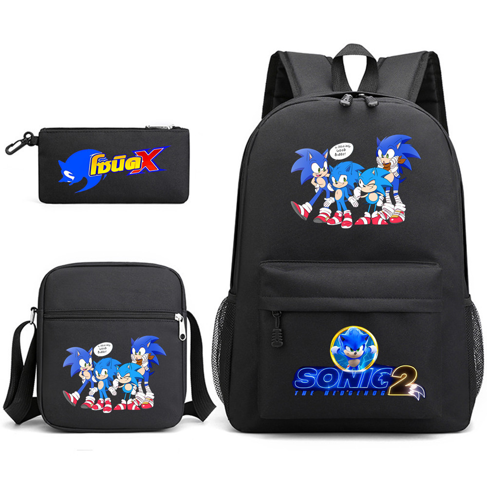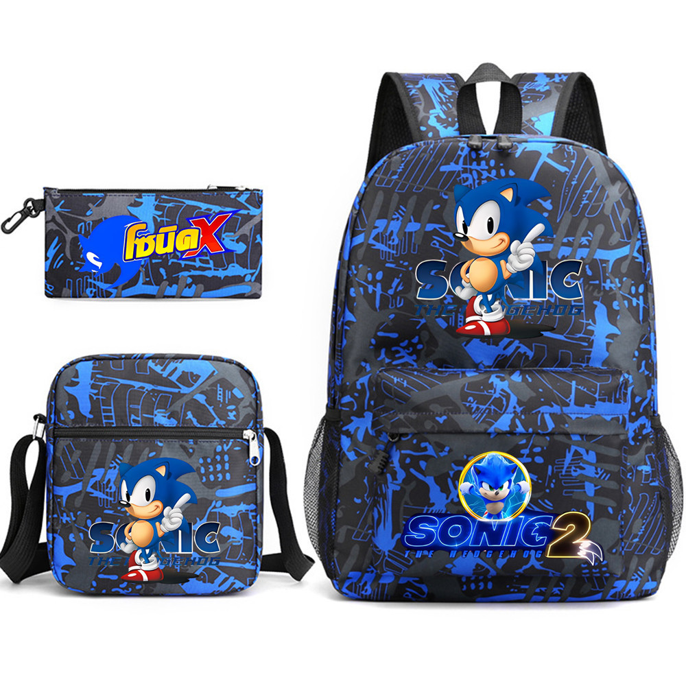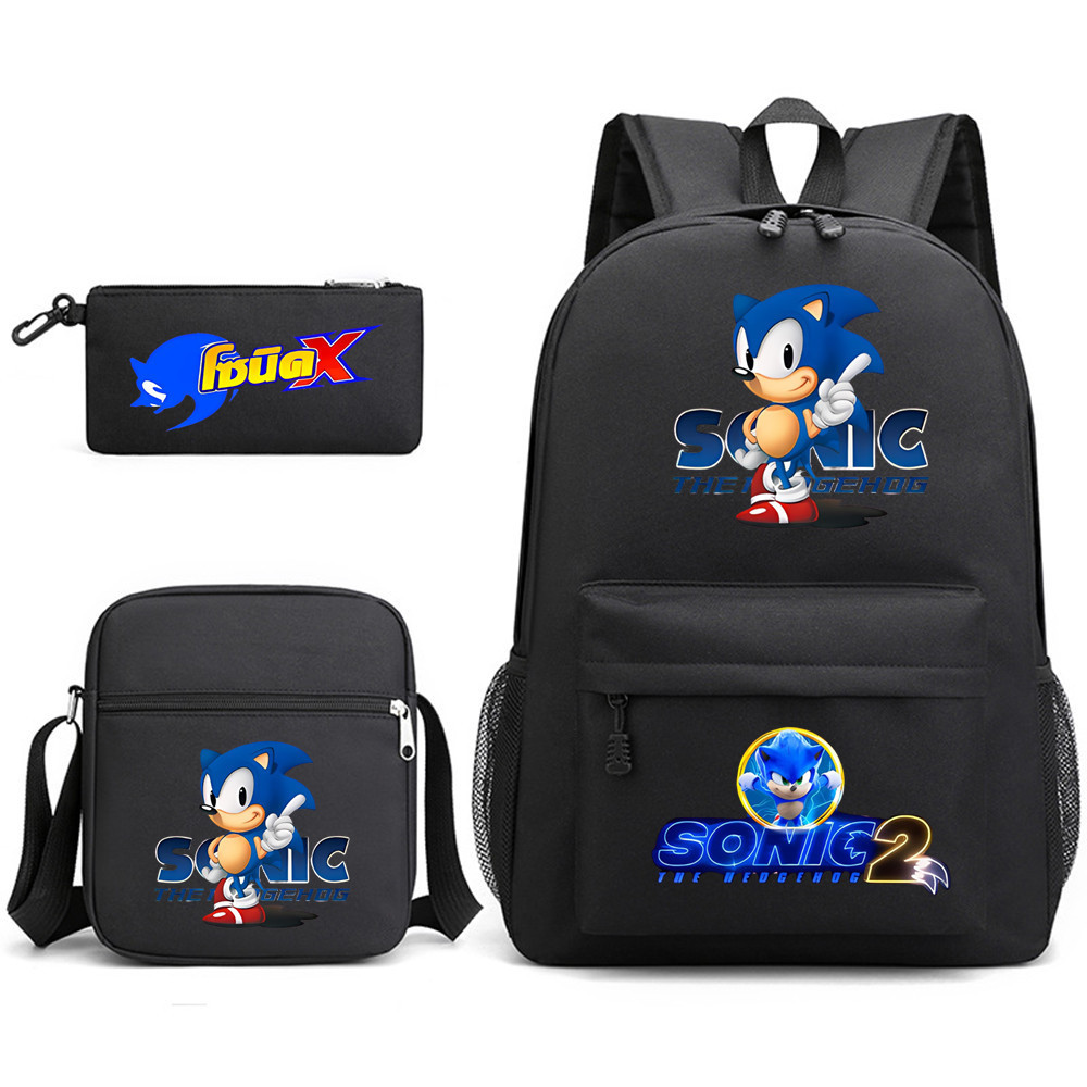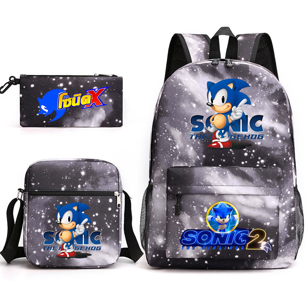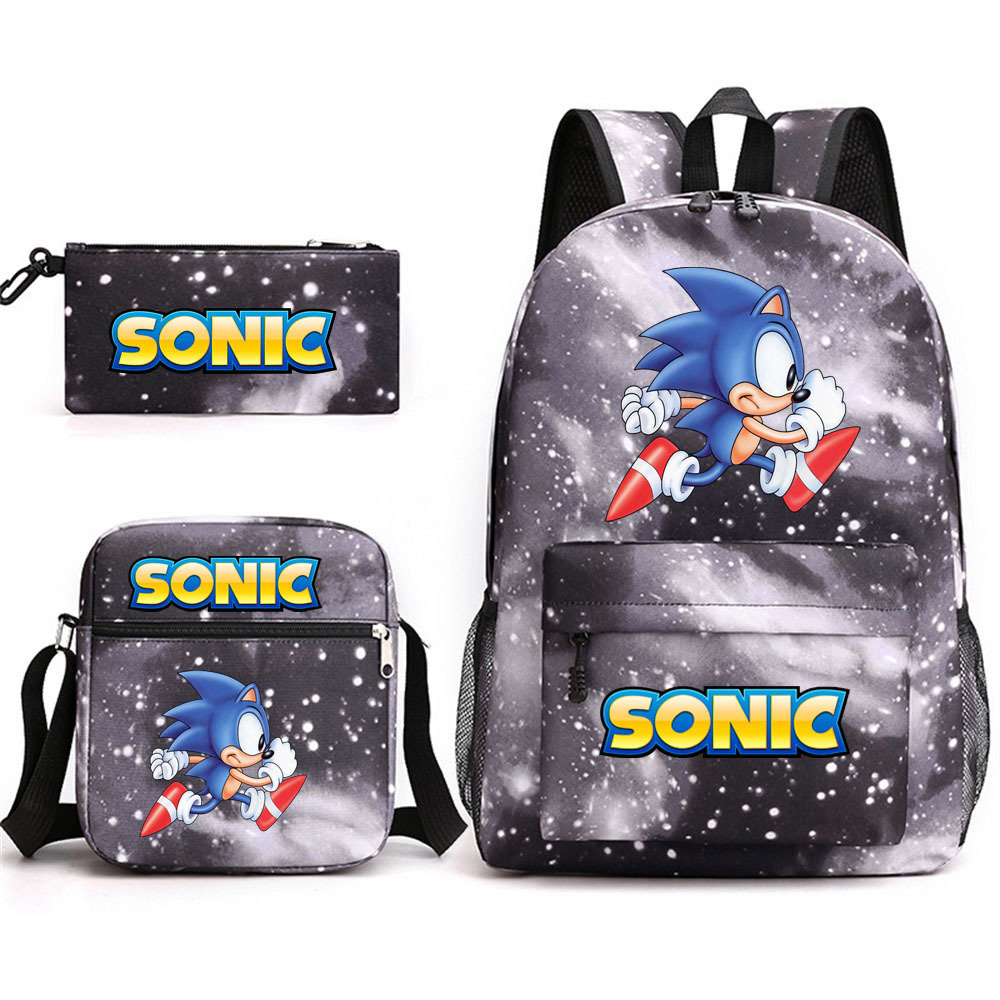 소닉 3 조각 Schoolbag 남성과 여성을위한 새로운 캐주얼 배낭 배낭 인쇄 대용량 야외 배낭