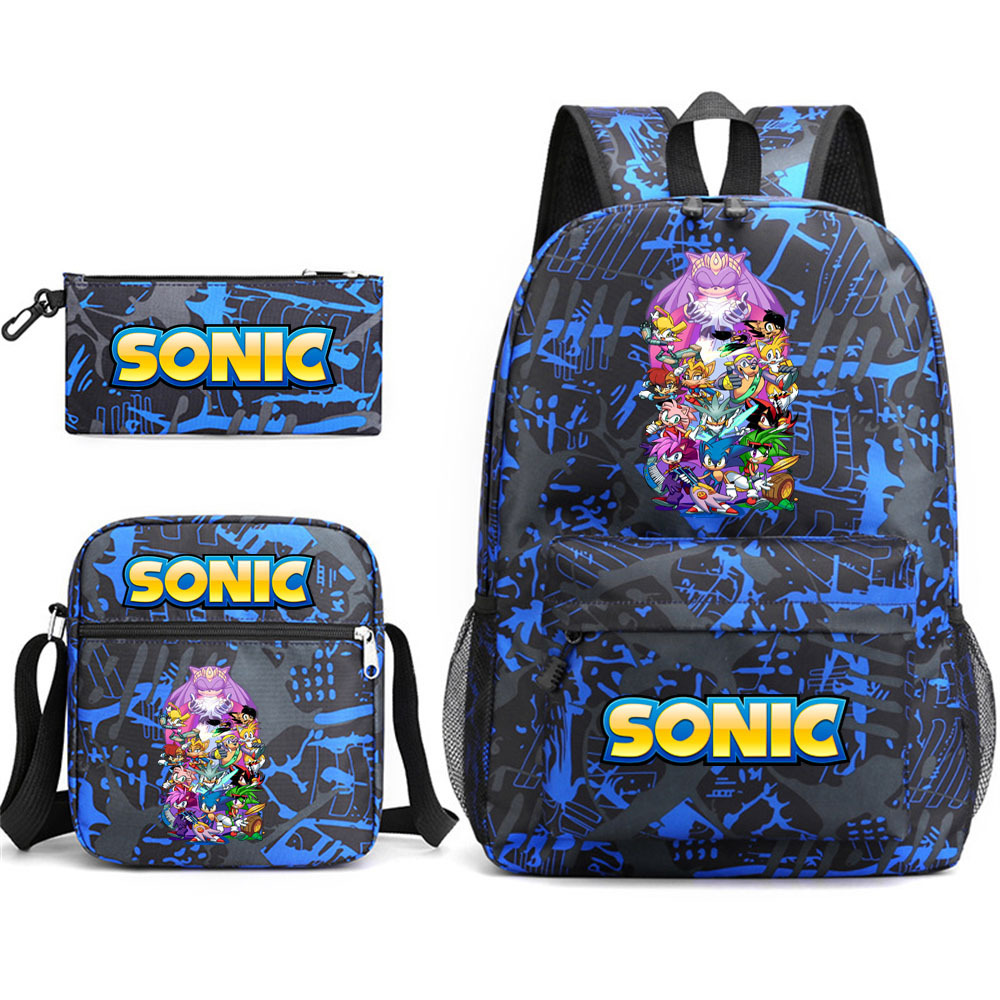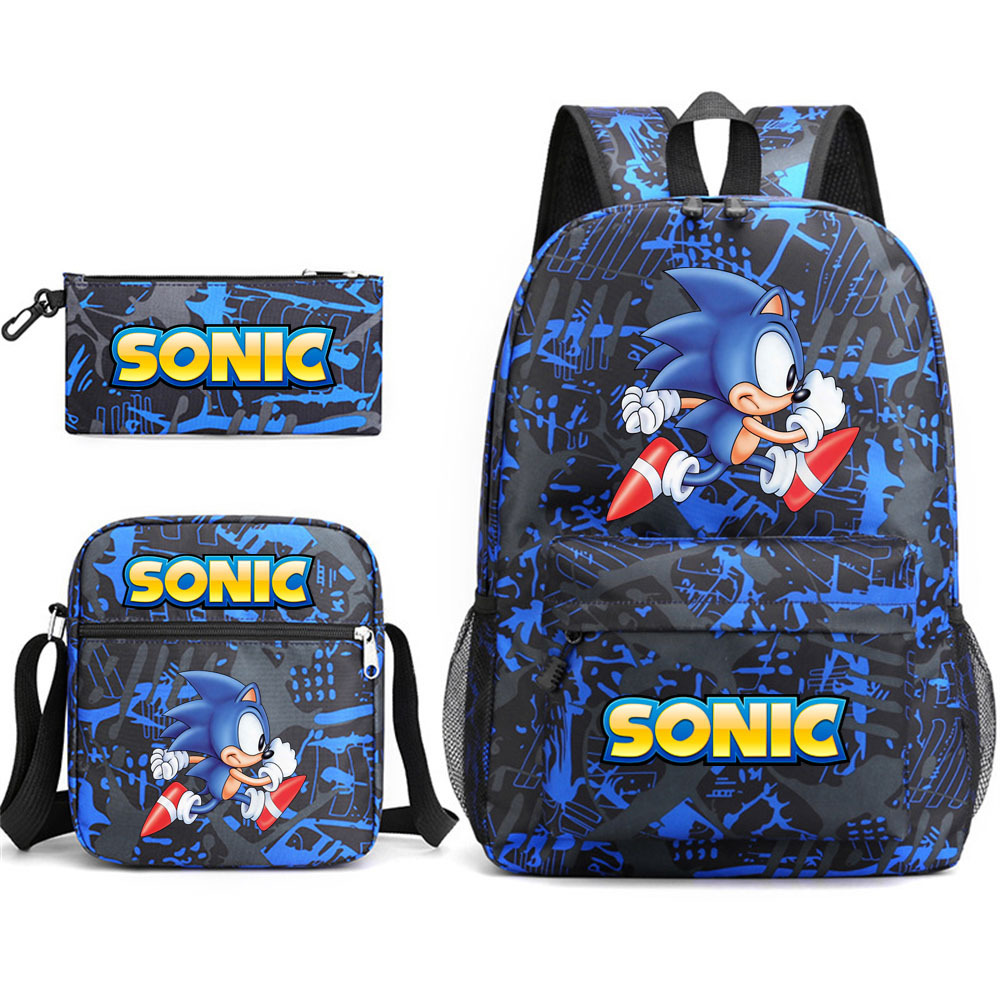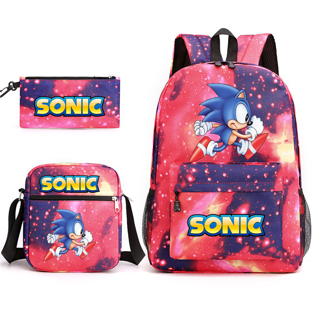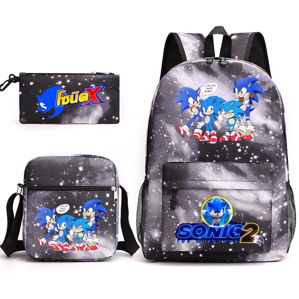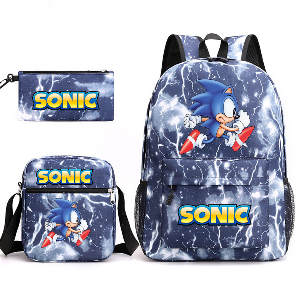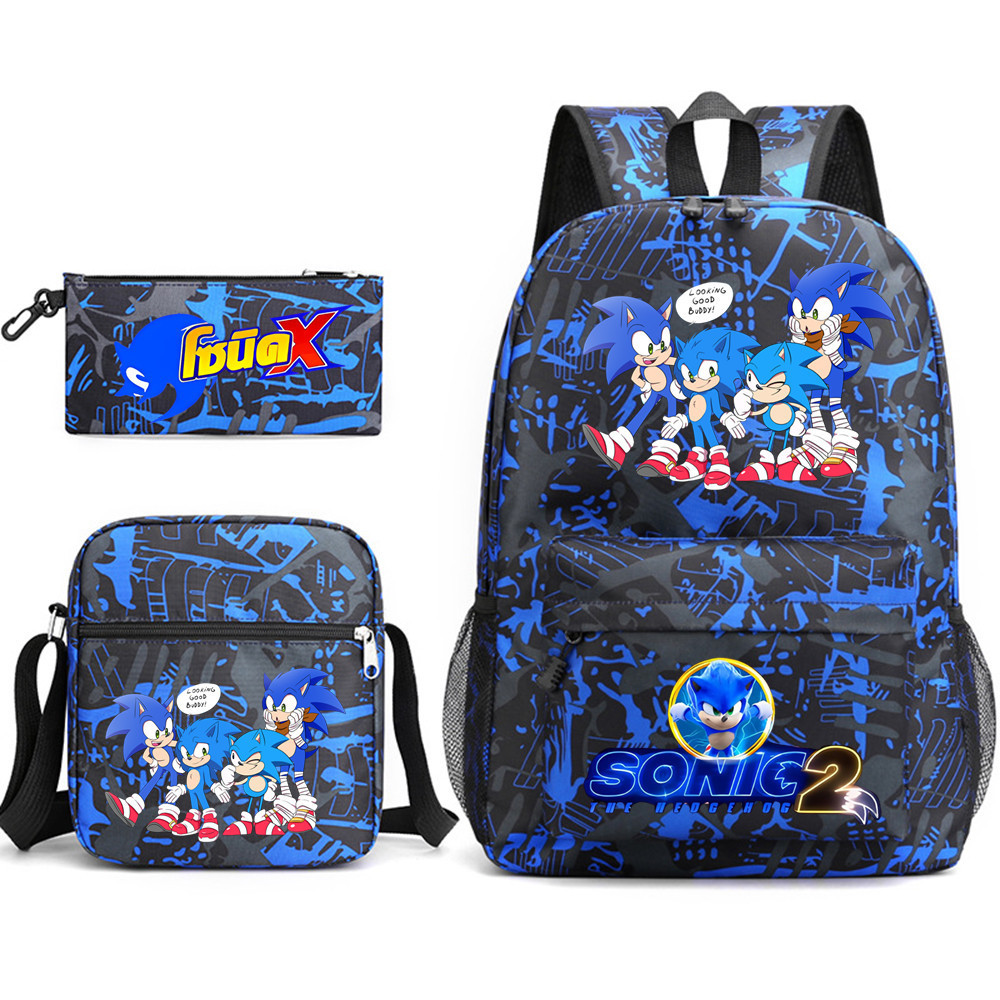소닉 3 조각 Schoolbag 남성과 여성을위한 새로운 캐주얼 배낭 배낭 인쇄 대용량 야외 배낭