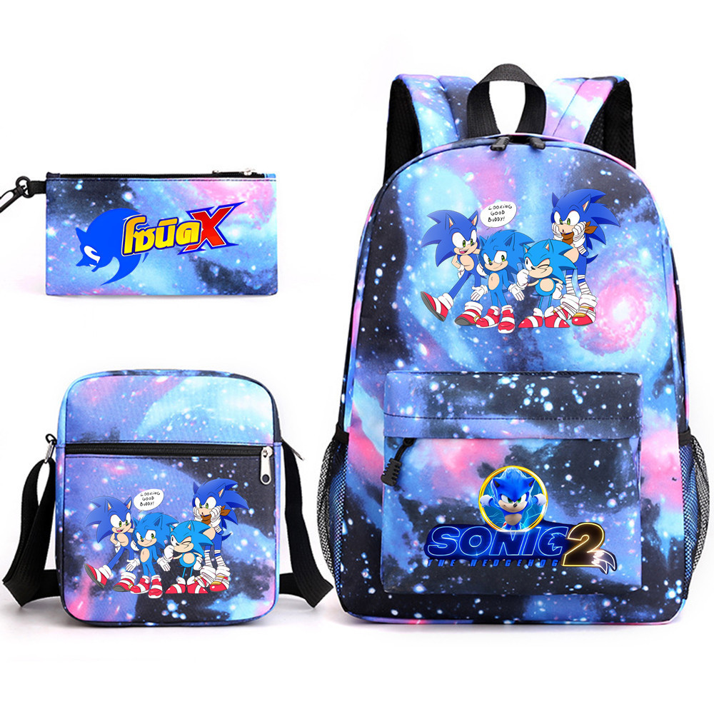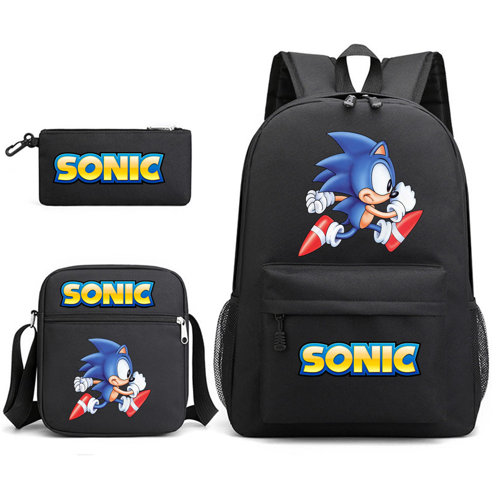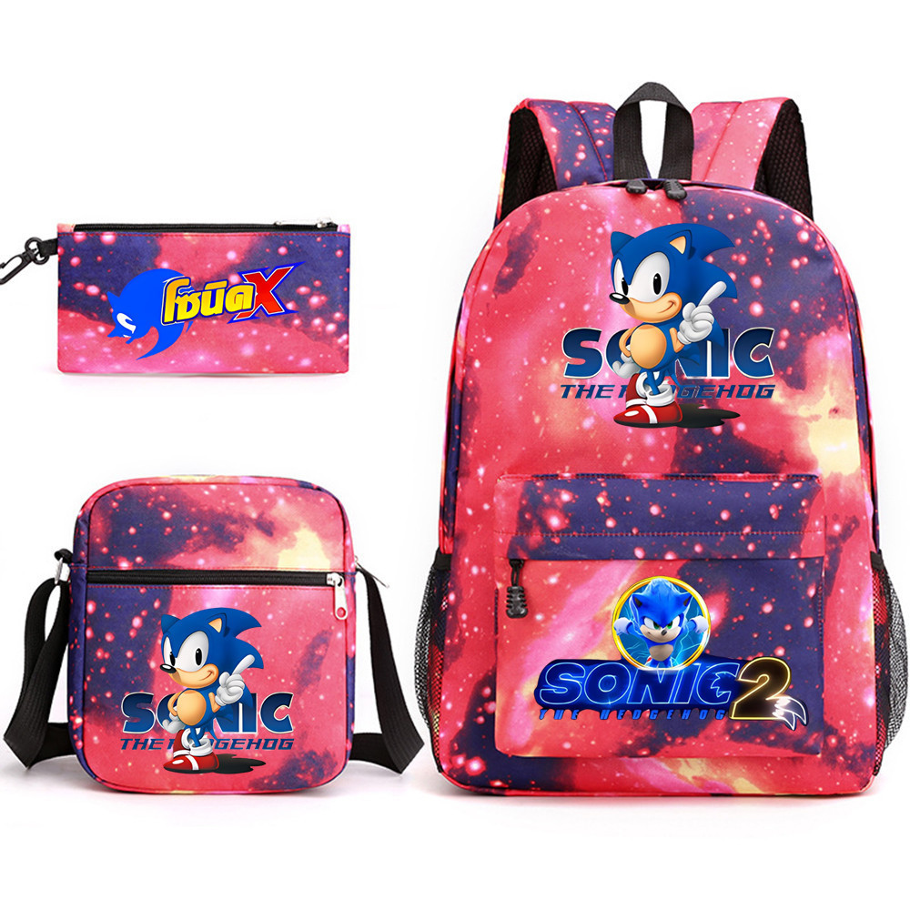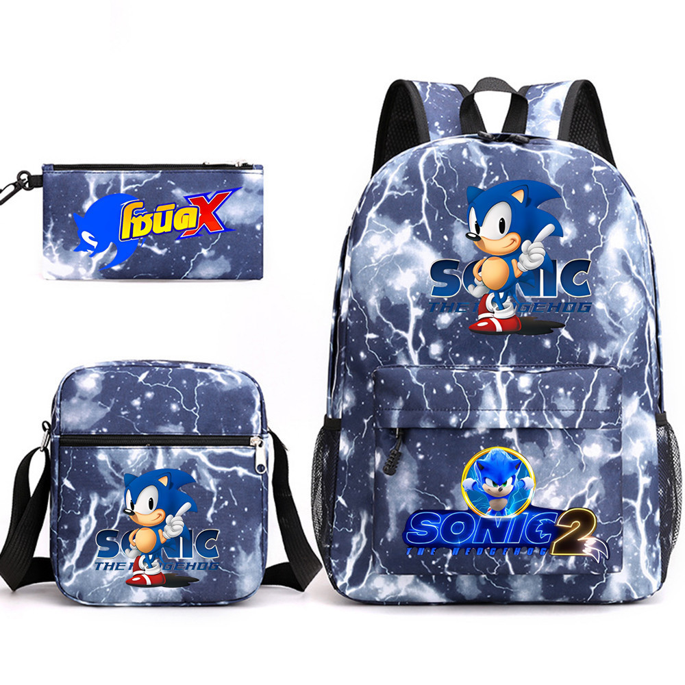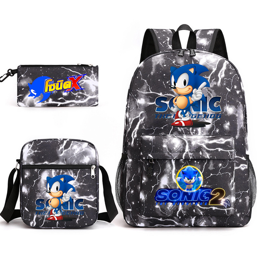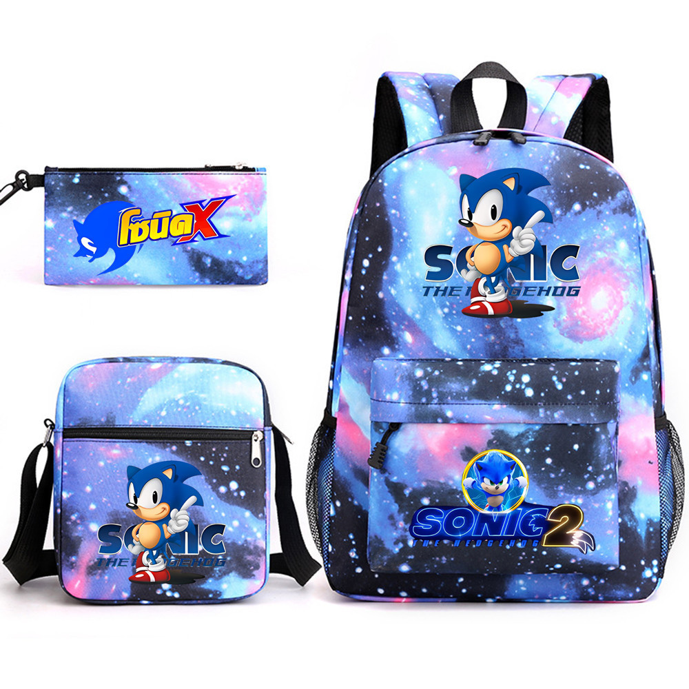 소닉 3 조각 Schoolbag 남성과 여성을위한 새로운 캐주얼 배낭 배낭 인쇄 대용량 야외 배낭