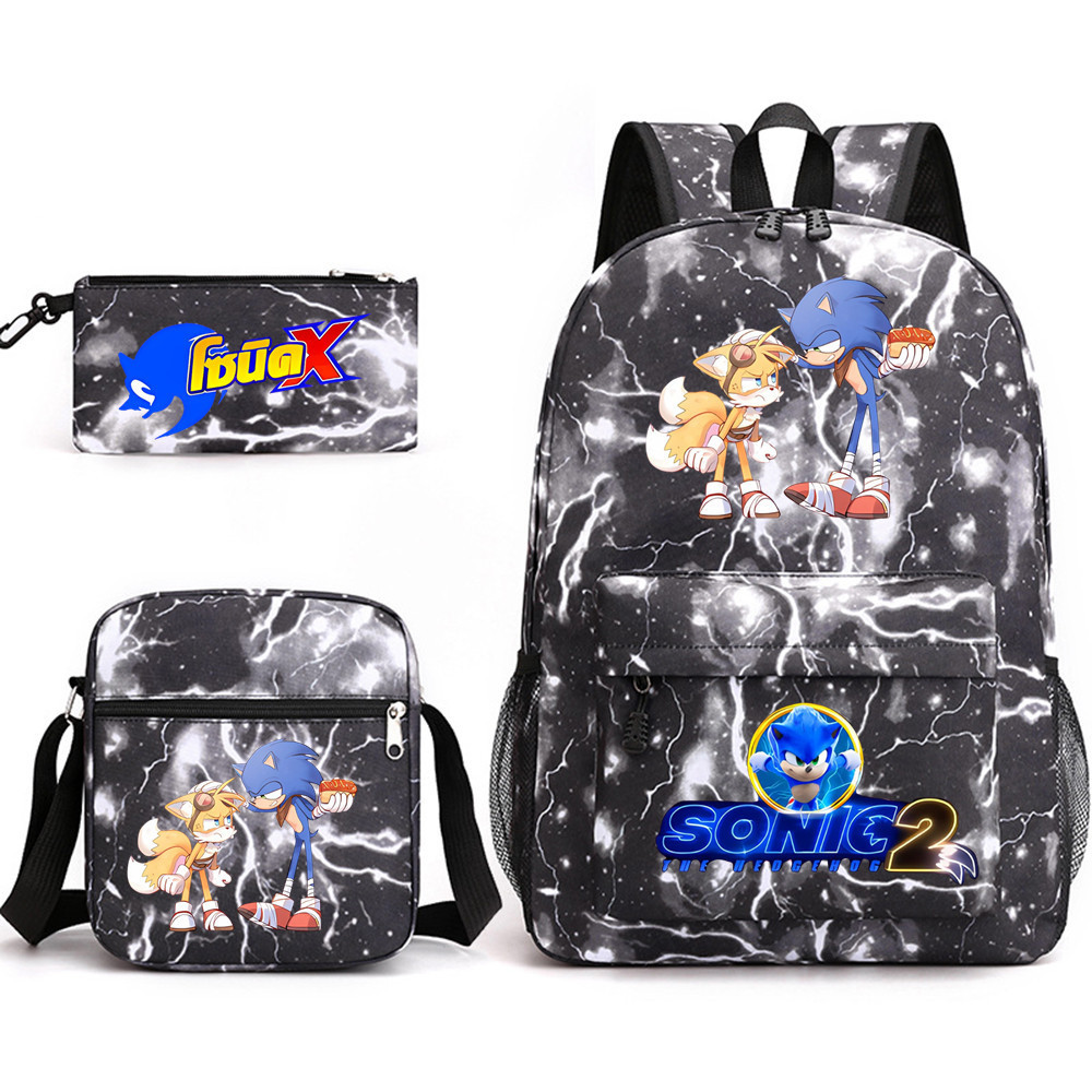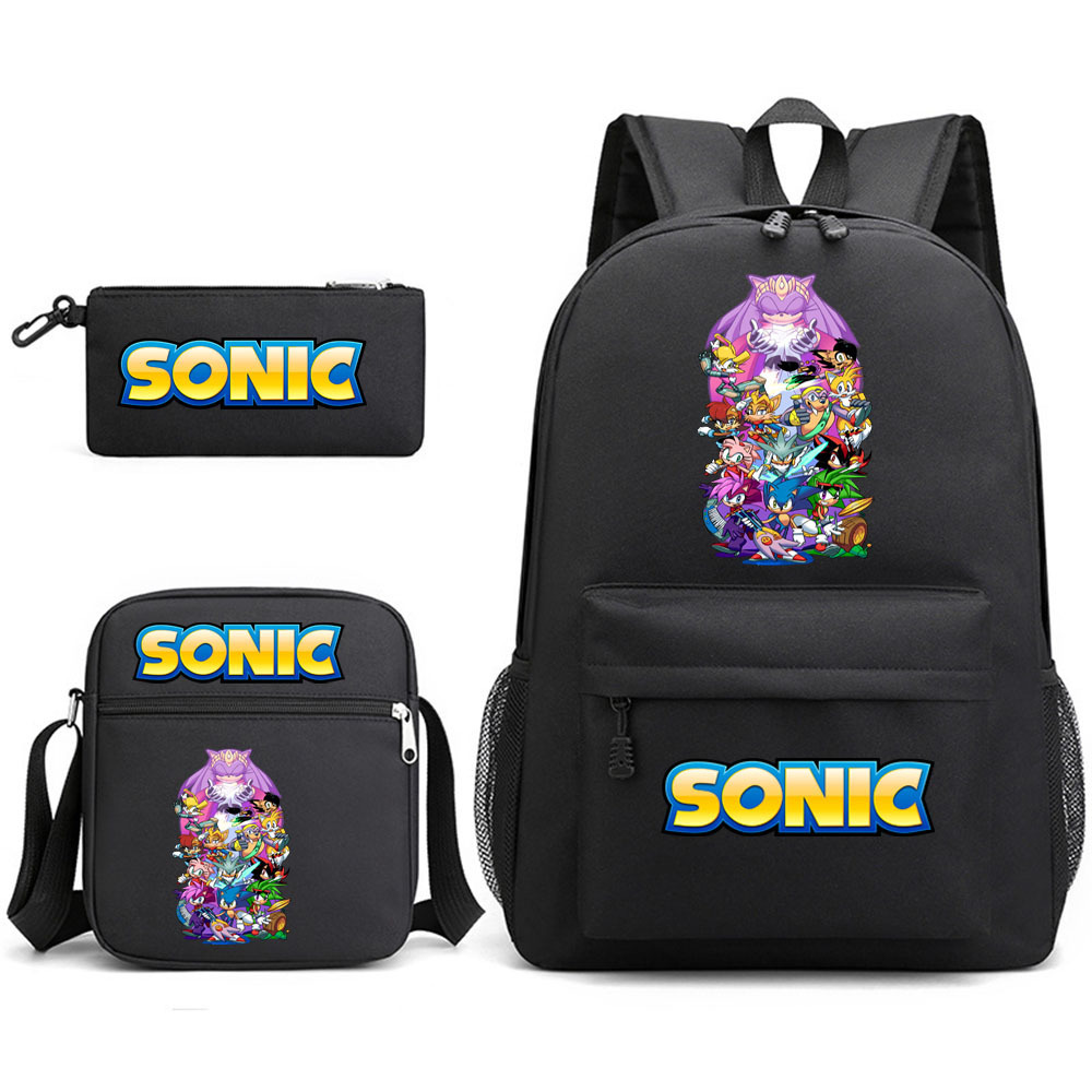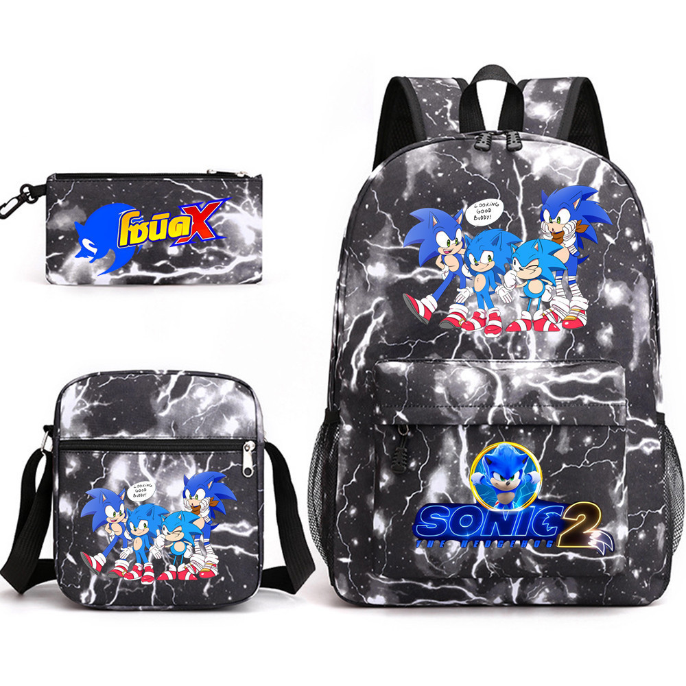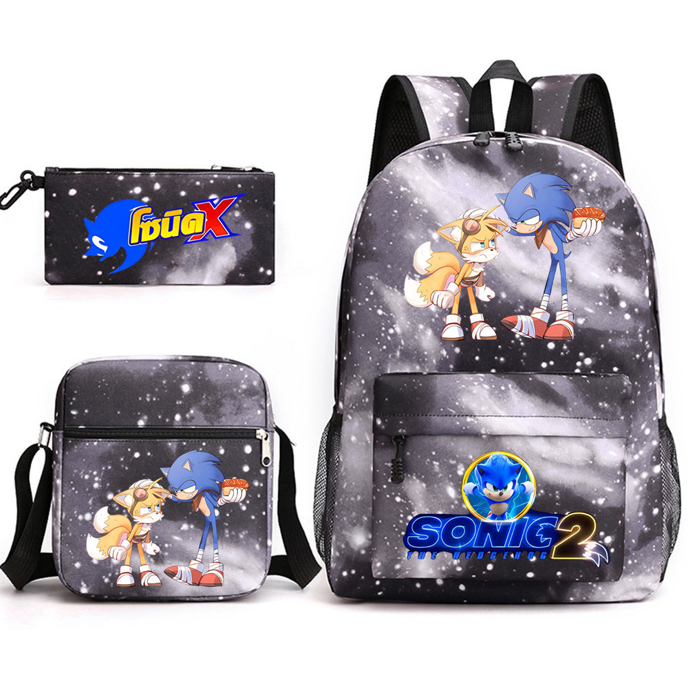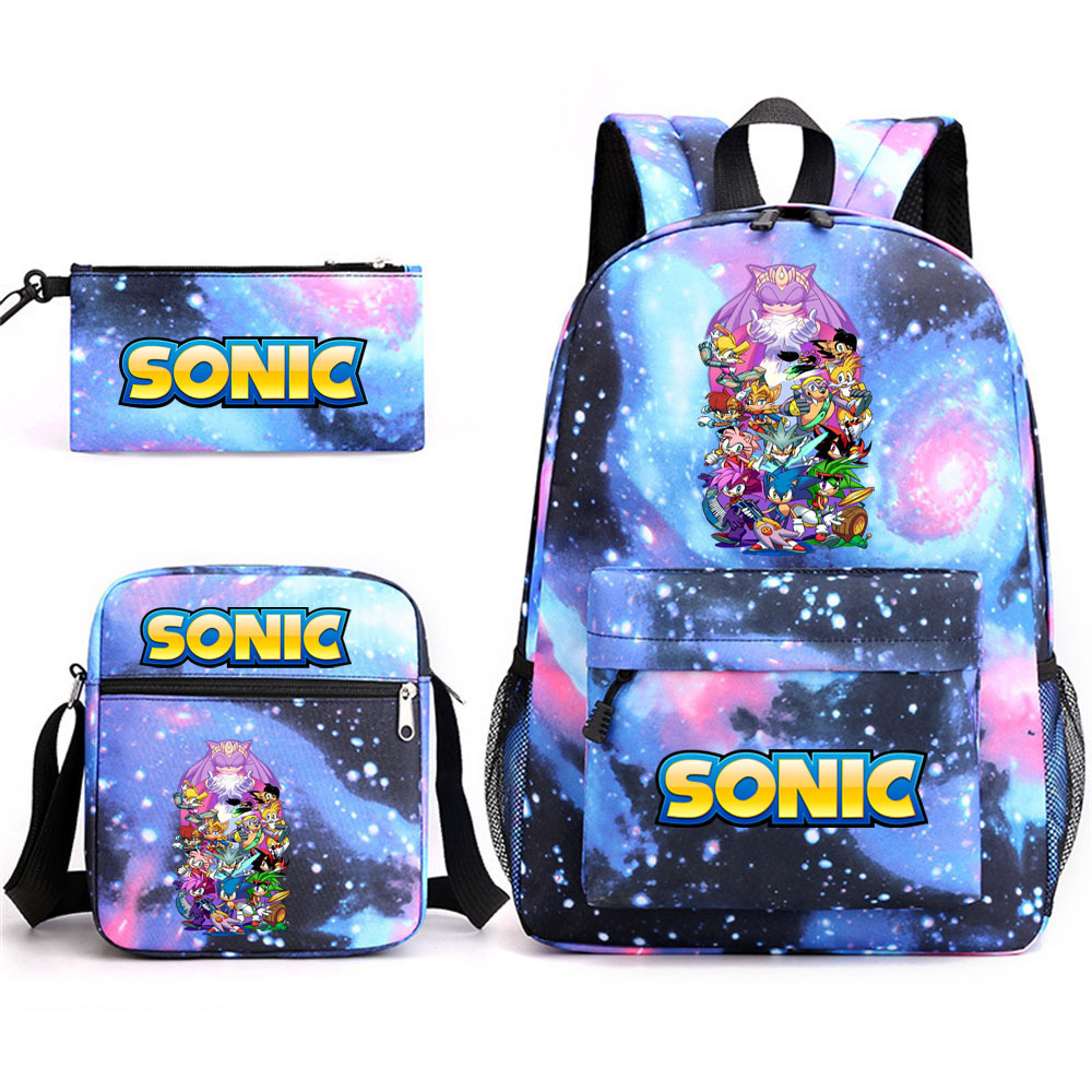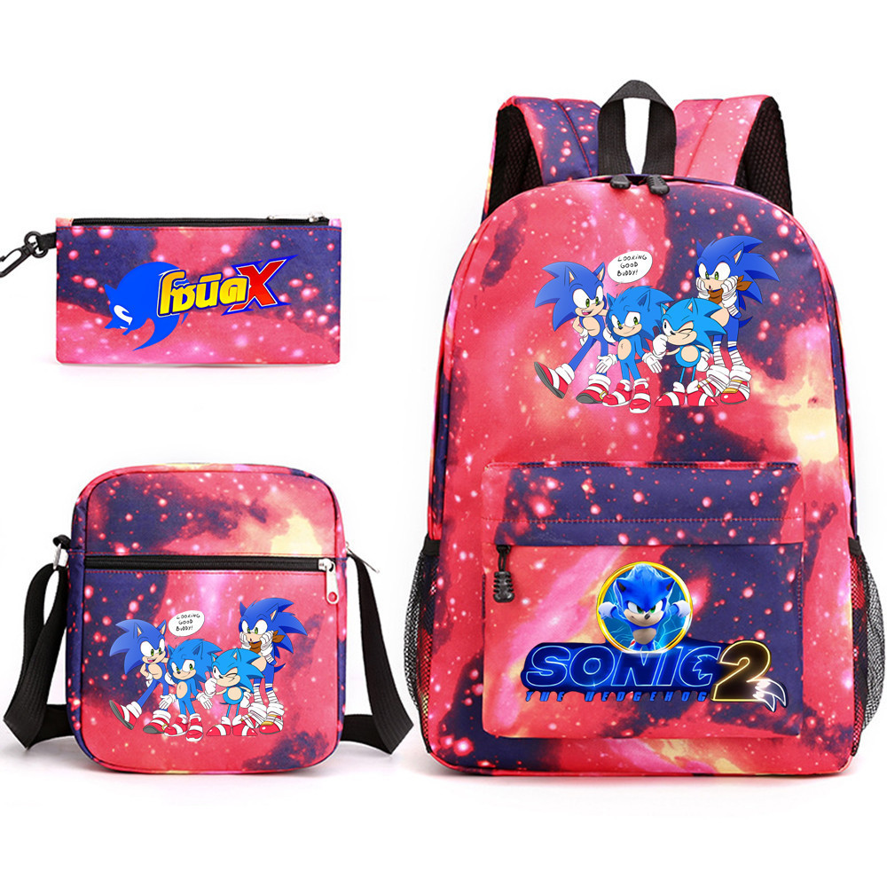 소닉 3 조각 Schoolbag 남성과 여성을위한 새로운 캐주얼 배낭 배낭 인쇄 대용량 야외 배낭