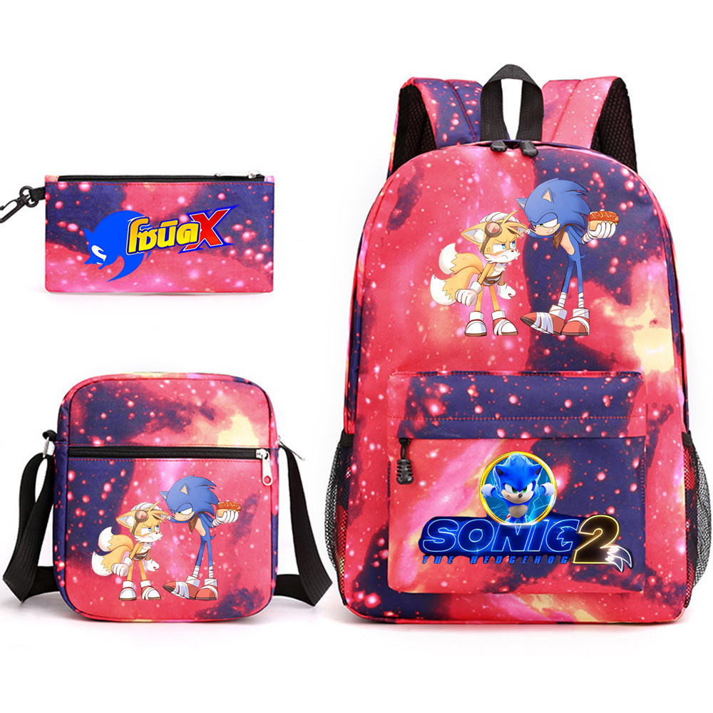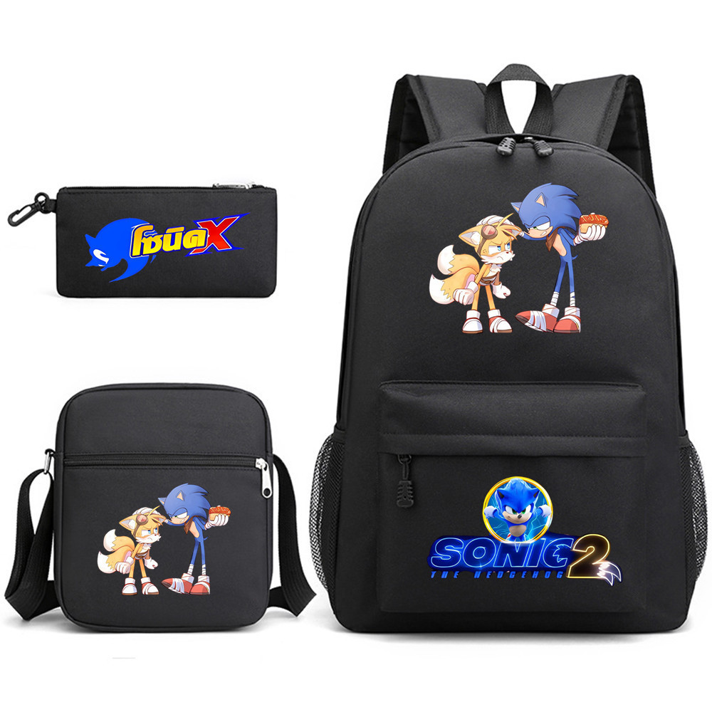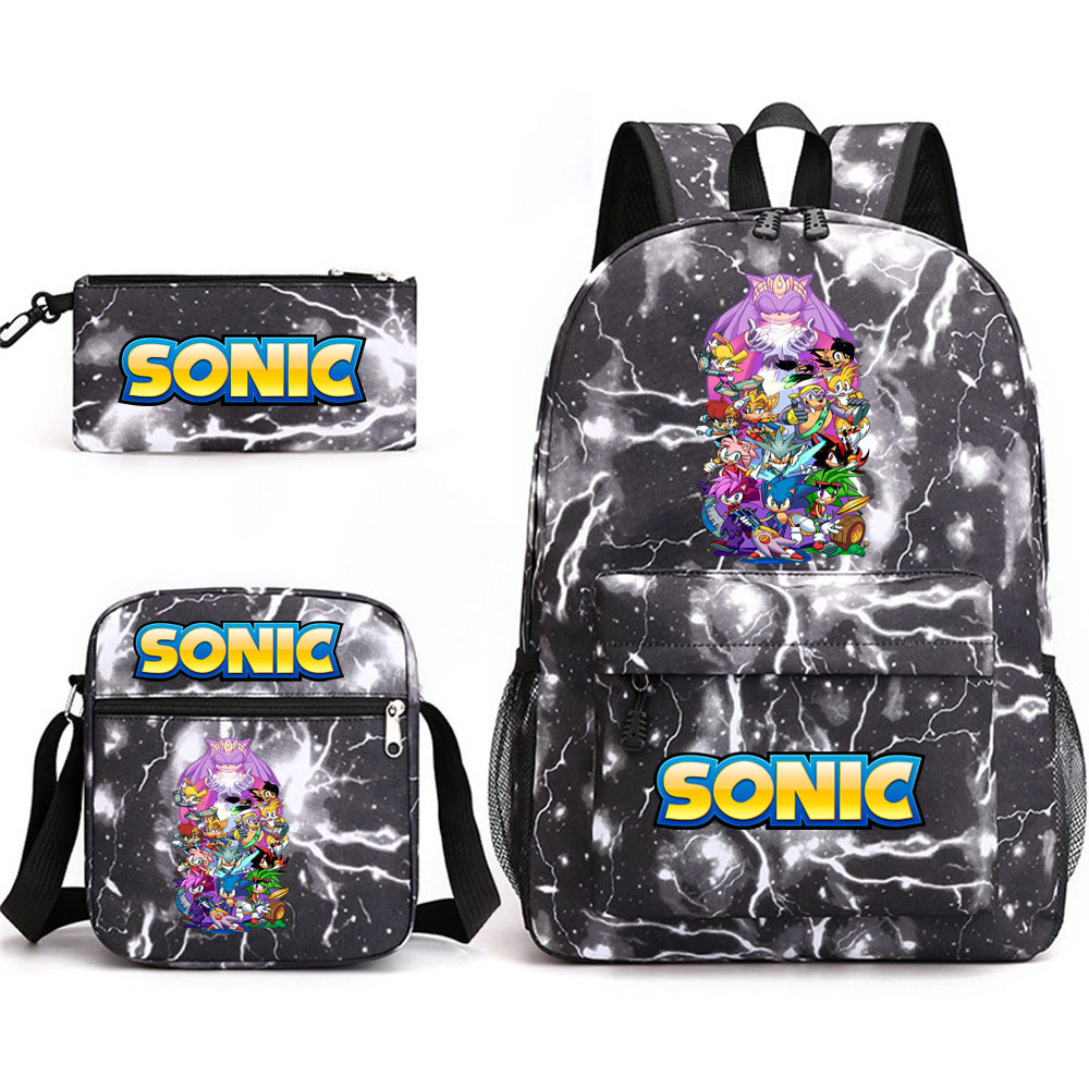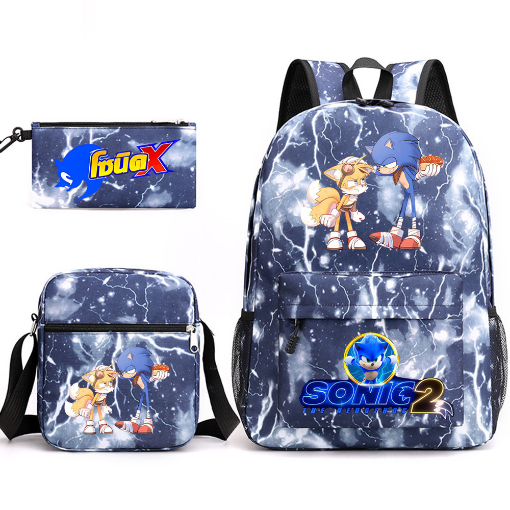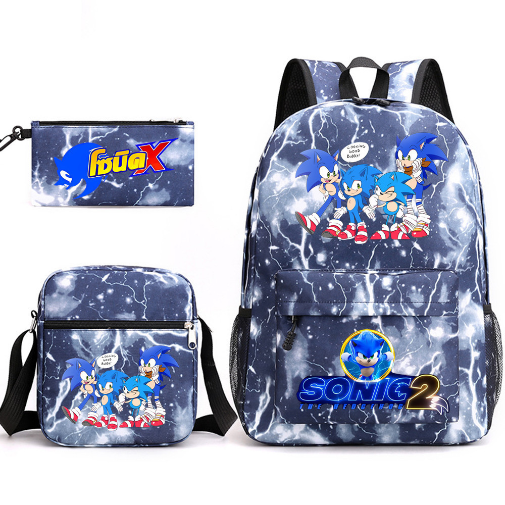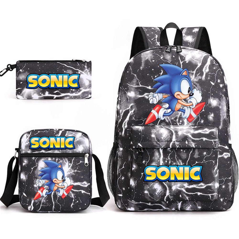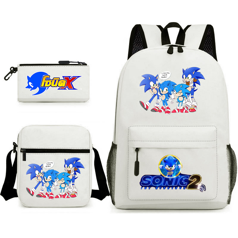 소닉 3 조각 Schoolbag 남성과 여성을위한 새로운 캐주얼 배낭 배낭 인쇄 대용량 야외 배낭