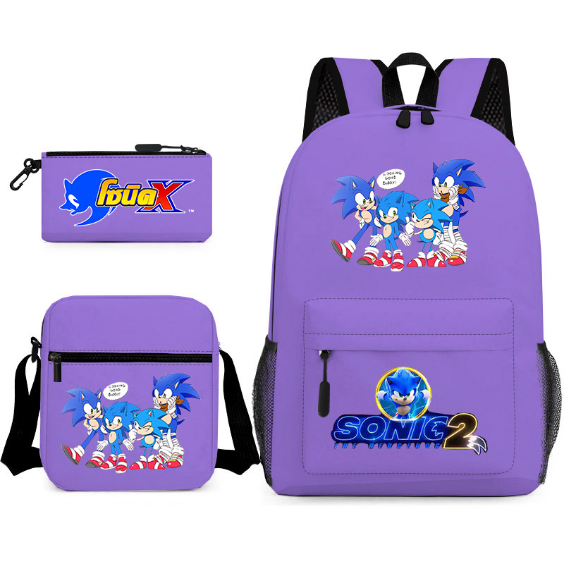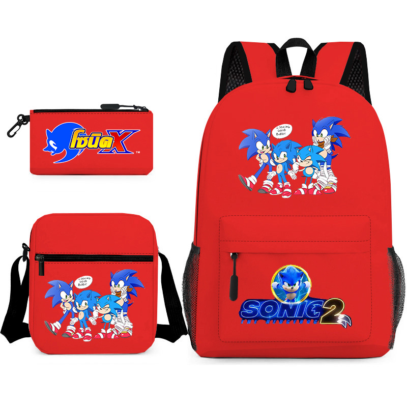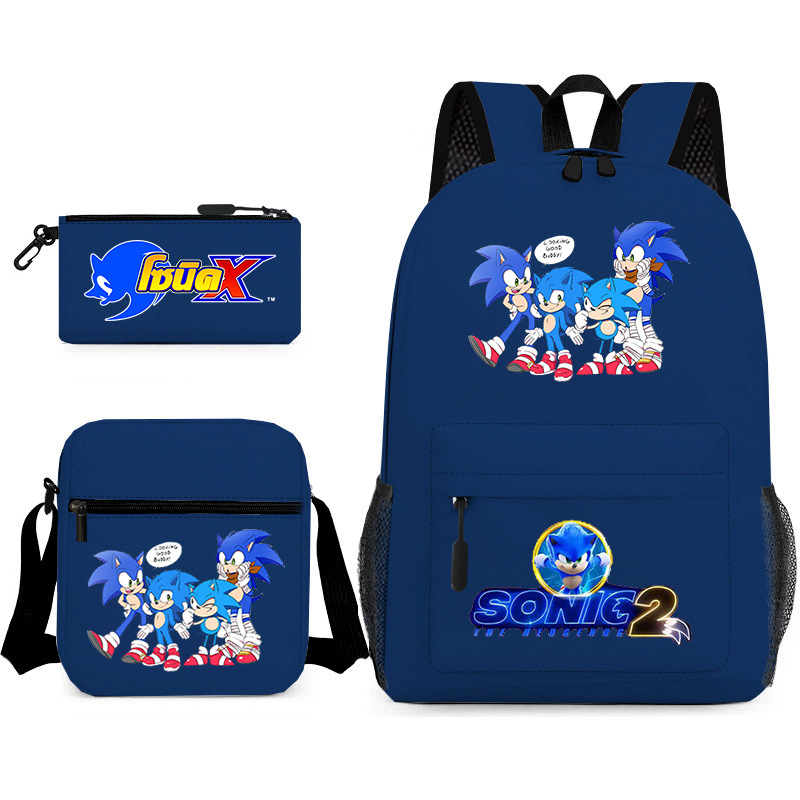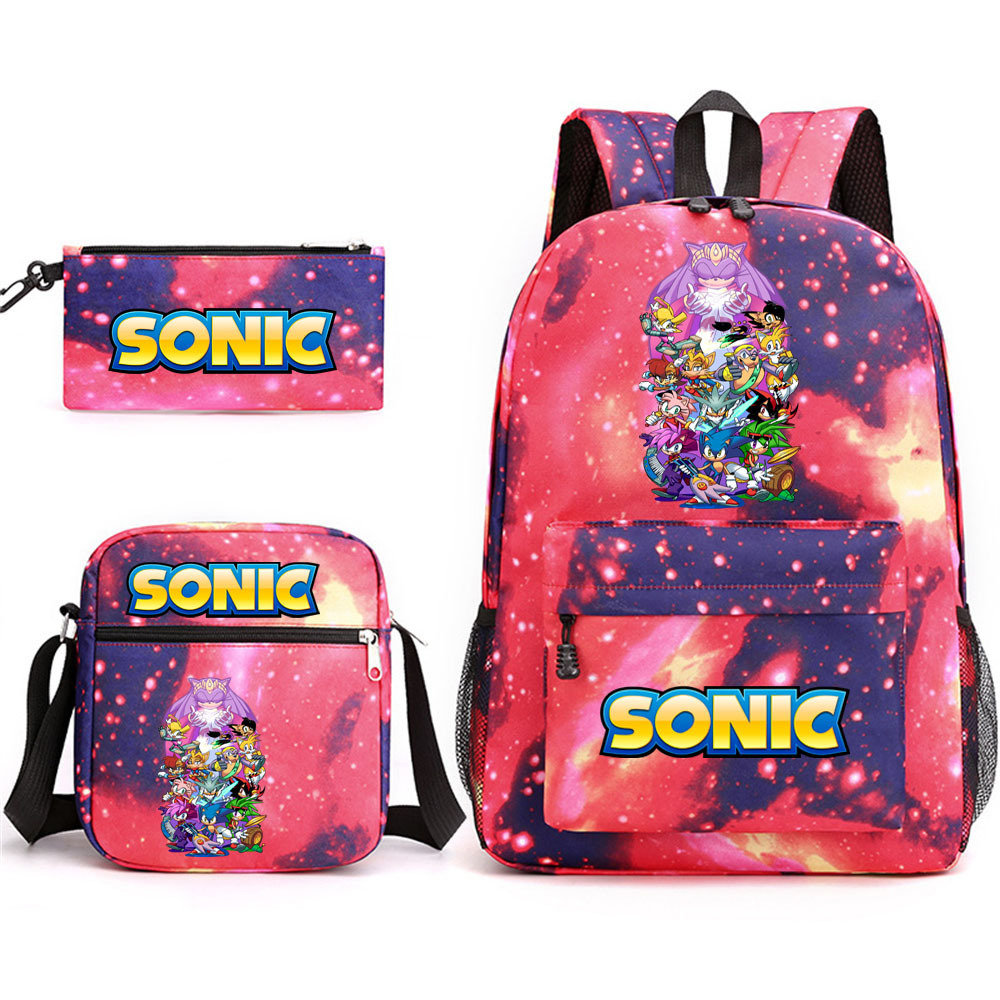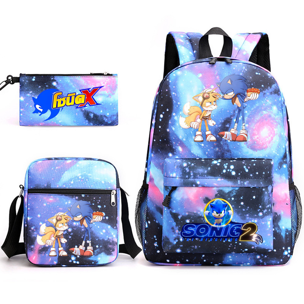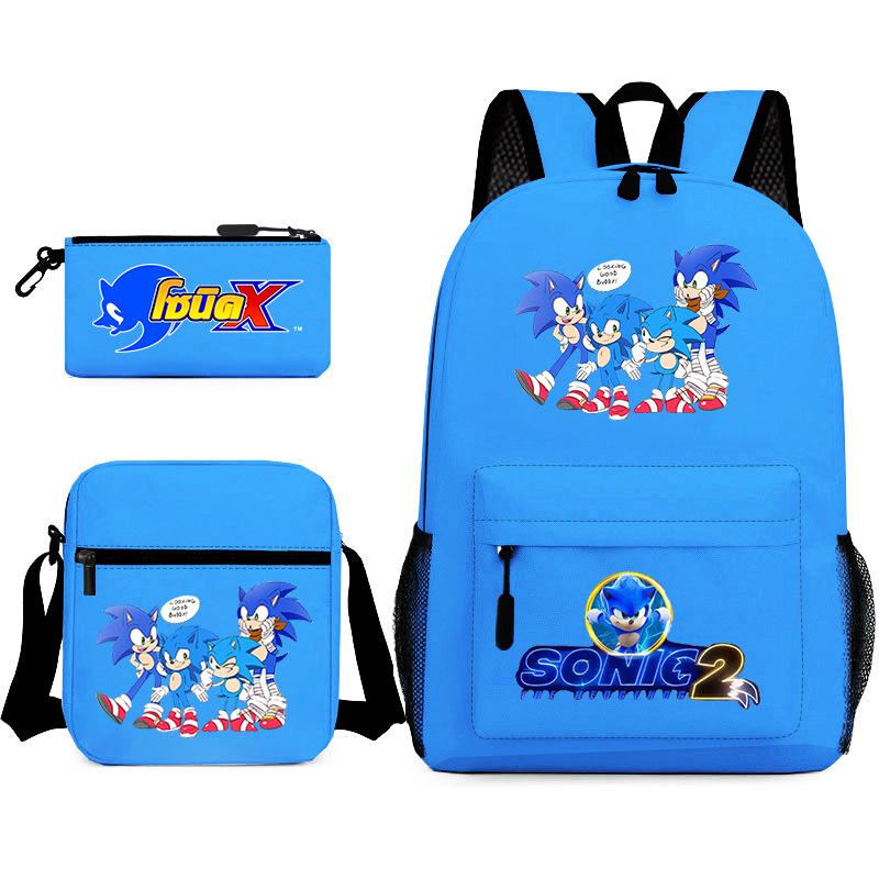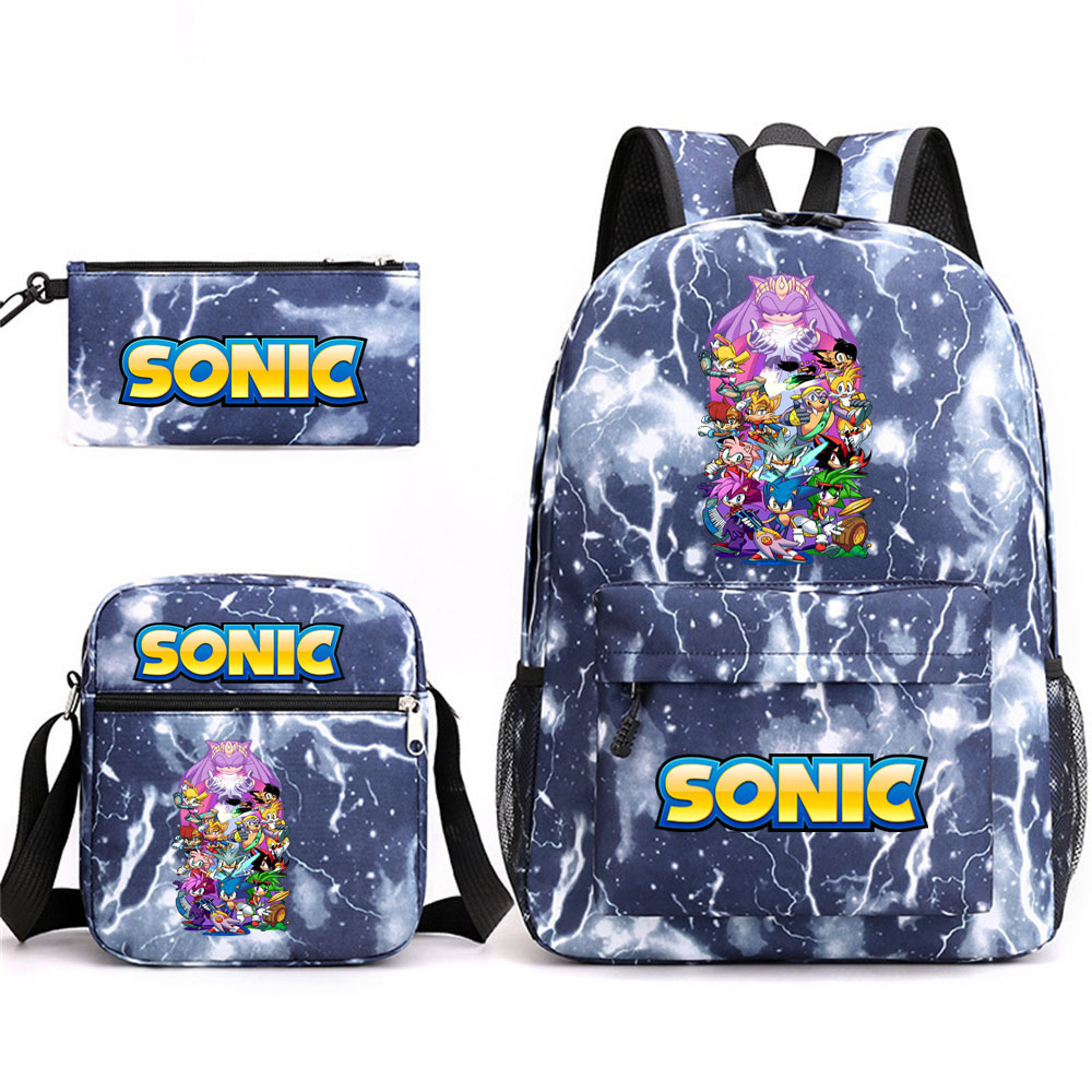 소닉 3 조각 Schoolbag 남성과 여성을위한 새로운 캐주얼 배낭 배낭 인쇄 대용량 야외 배낭