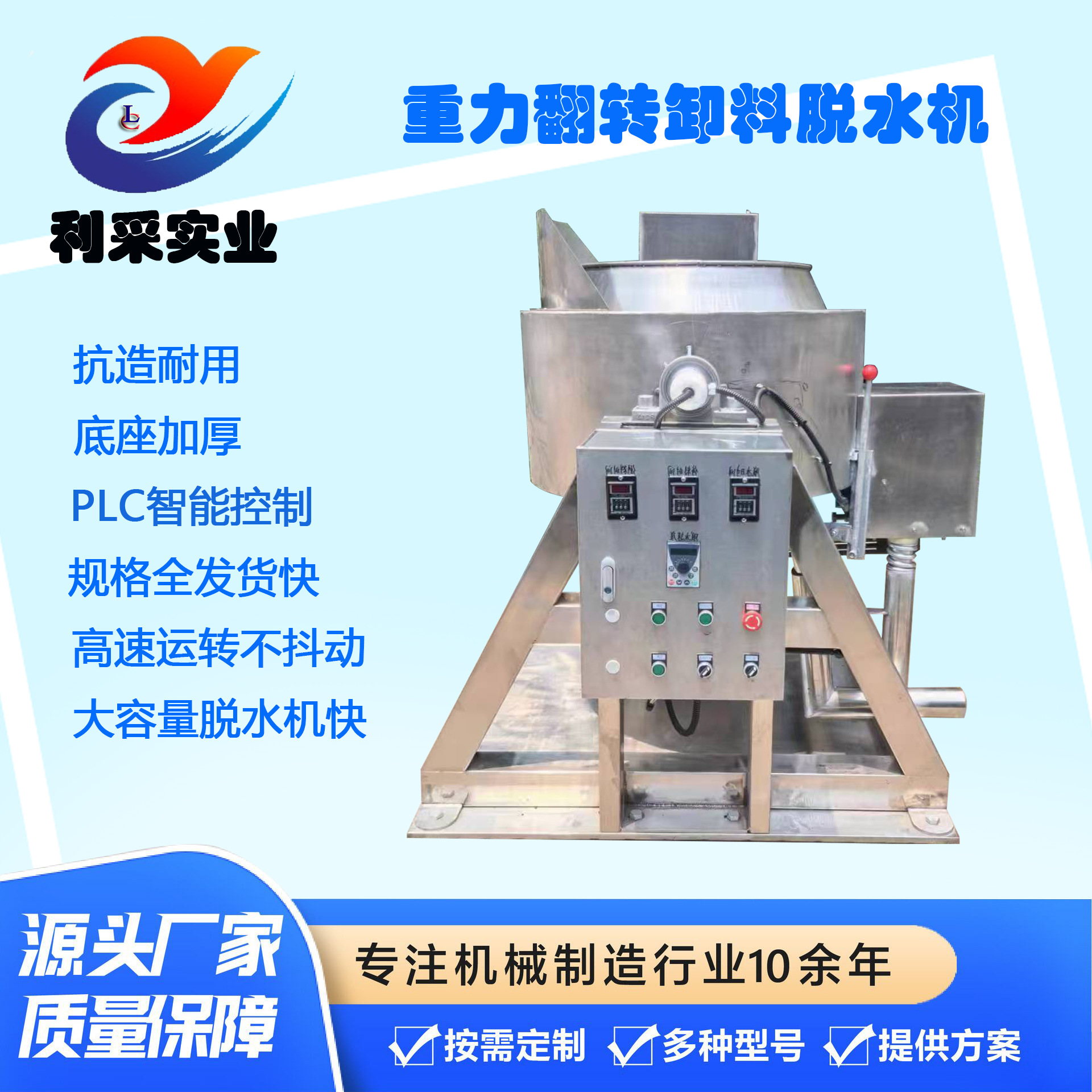 利采牌离心脱水机采用内筒转动等离心方式,通过内桶快速旋转,将物件所含的水分(油等各种液体)甩出去的脱水(油)设备。此机是我厂引进台湾技术,研制开发成功的快速脱干脱水机,科学设计持久耐用、大大减轻劳动力。本产品适用于各种固液分离、物料离心等。