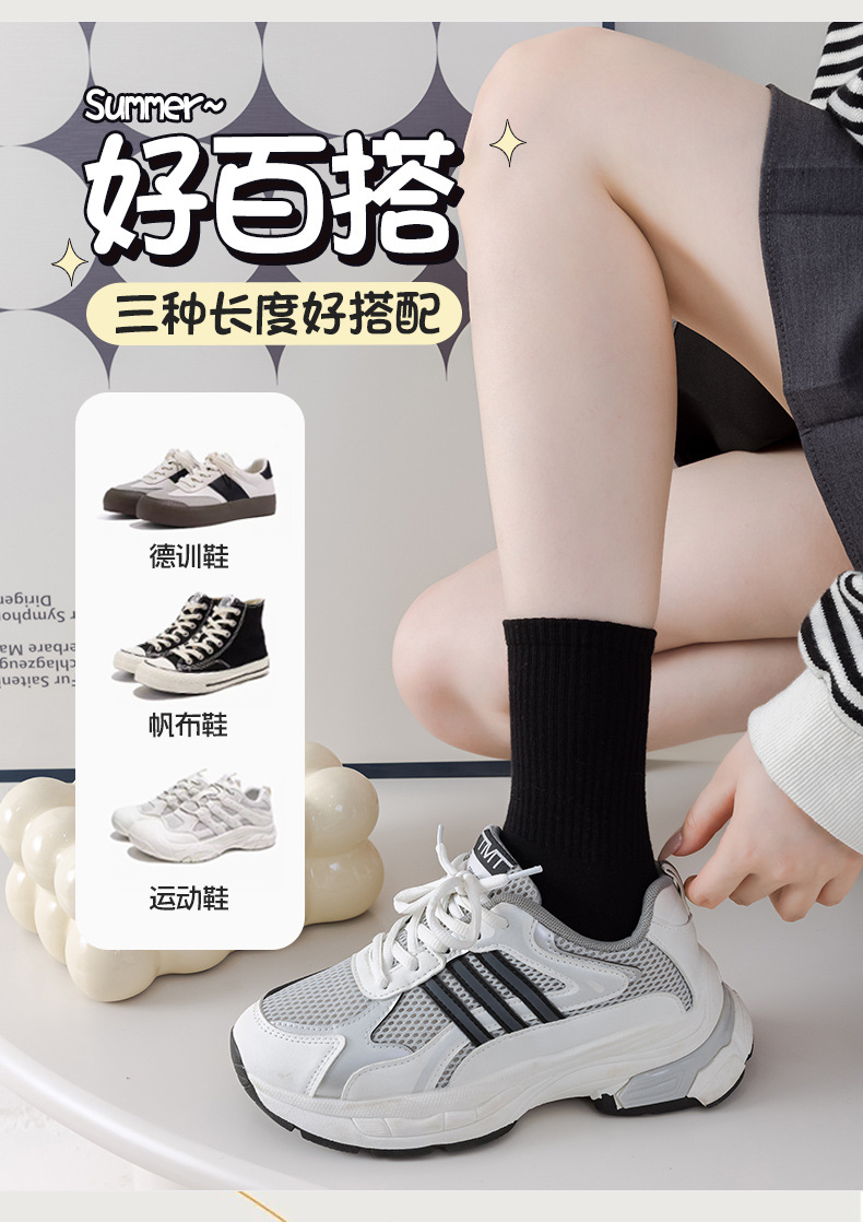 양말 순면 남성용 땀 흡수 및 탈취 스포츠 양말 여성용 무봉제 허리 양말 클래식 흑백 회색 주지 양말
