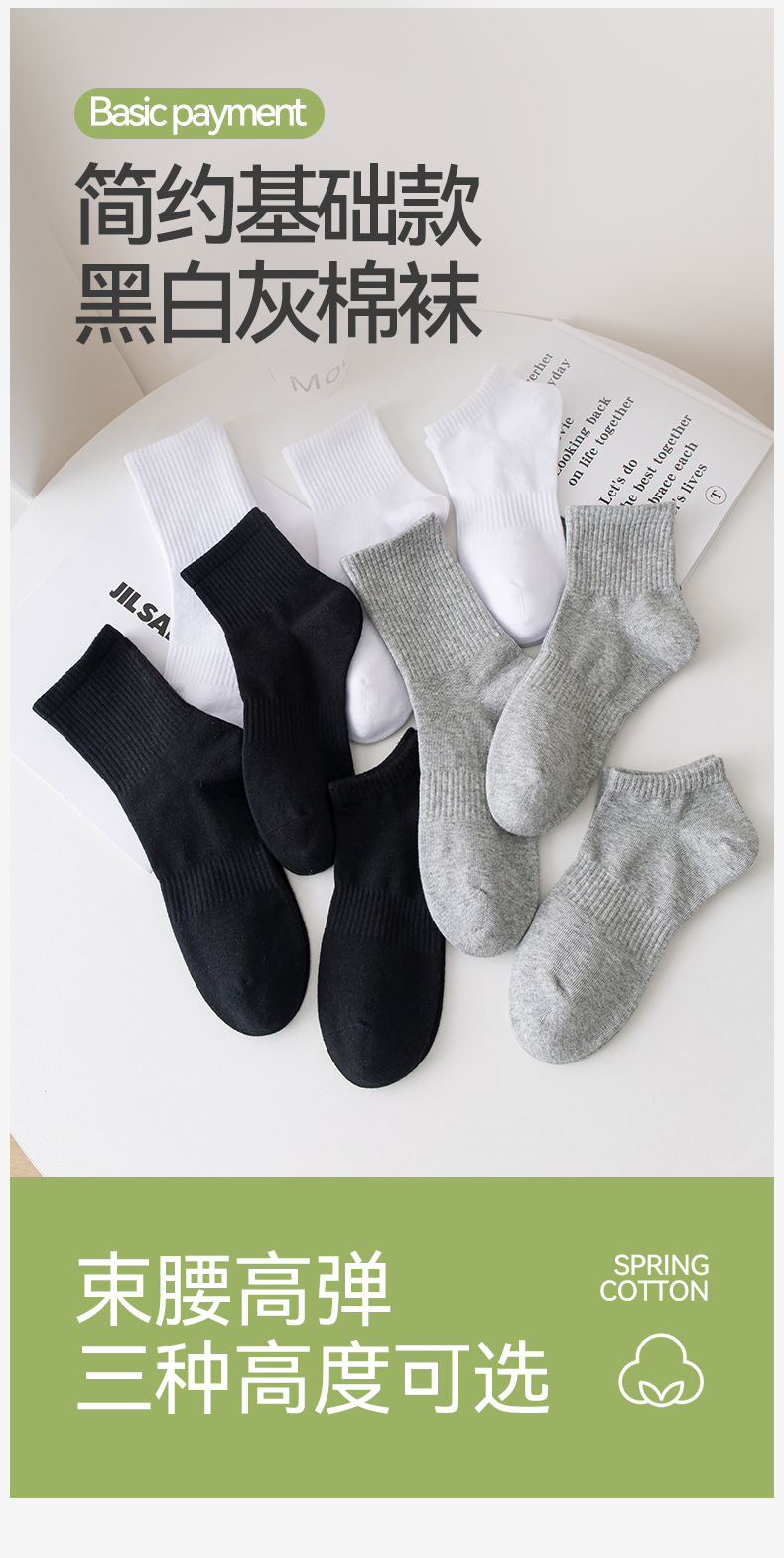 양말 순면 남성용 땀 흡수 및 탈취 스포츠 양말 여성용 무봉제 허리 양말 클래식 흑백 회색 주지 양말스토어 가기