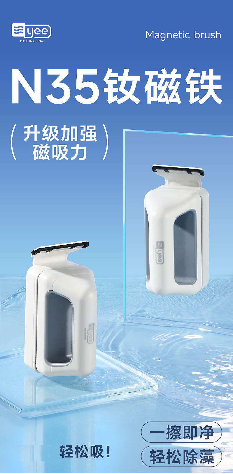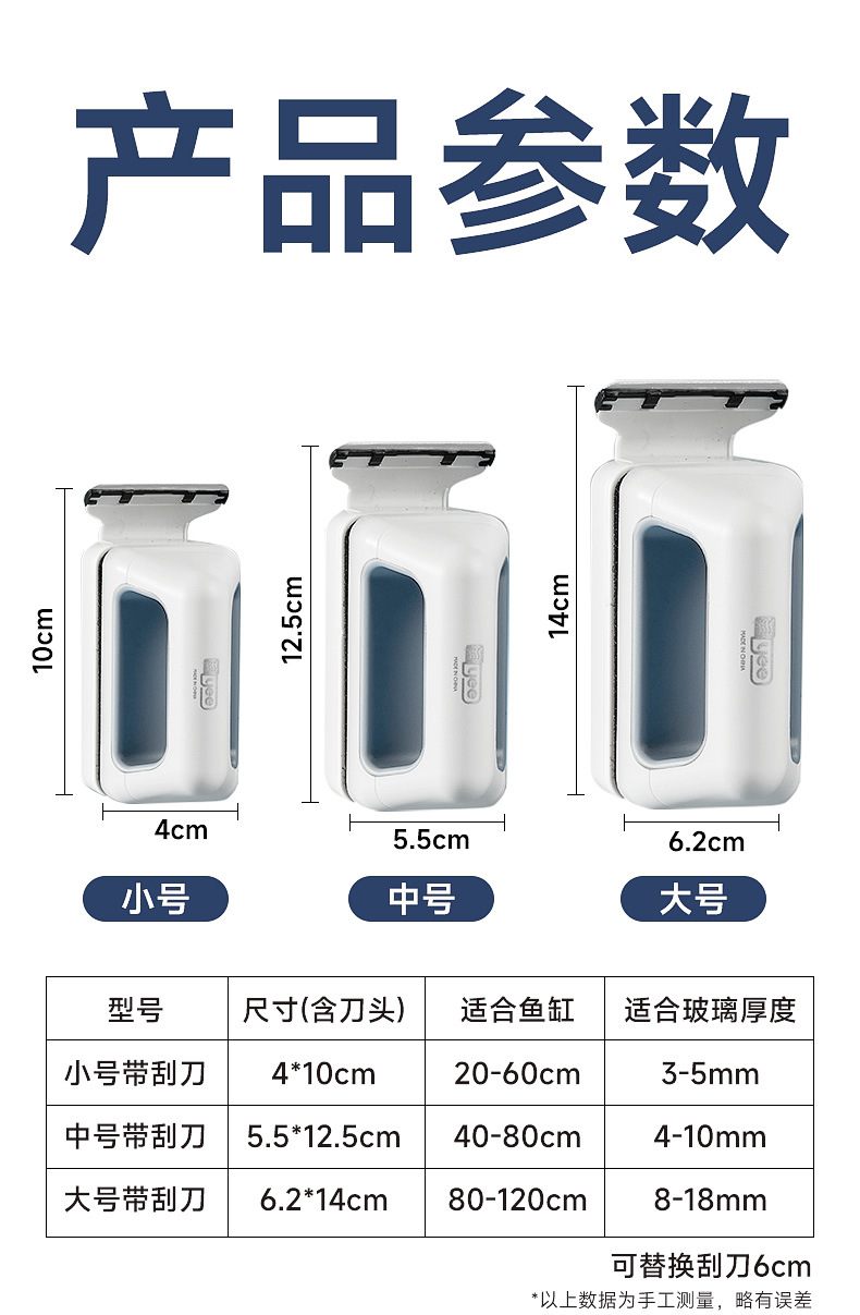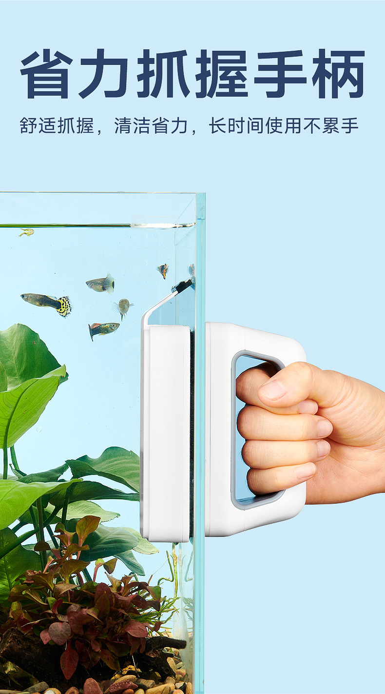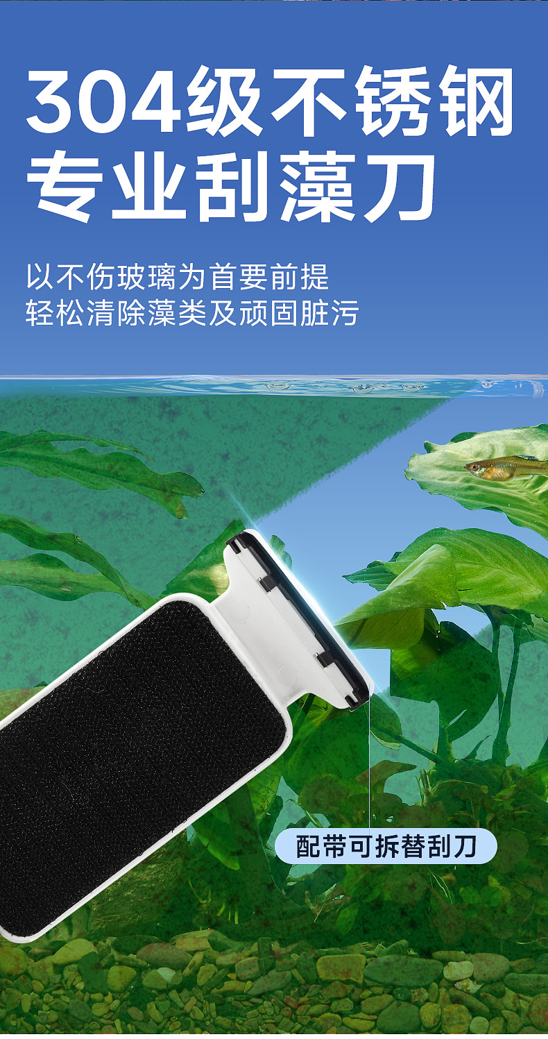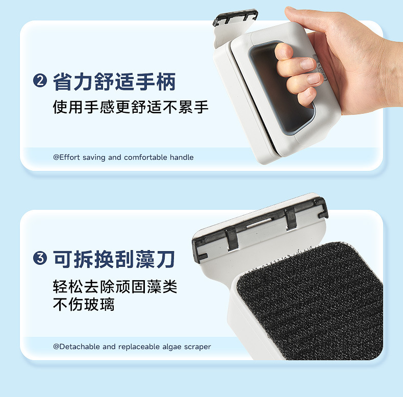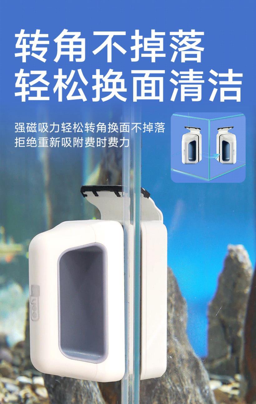 • 새롭게 업그레이드된 조류 제거 스크레이퍼가 포함된 강력한 자석 소형 모델(30-50cm 수조에 적합)