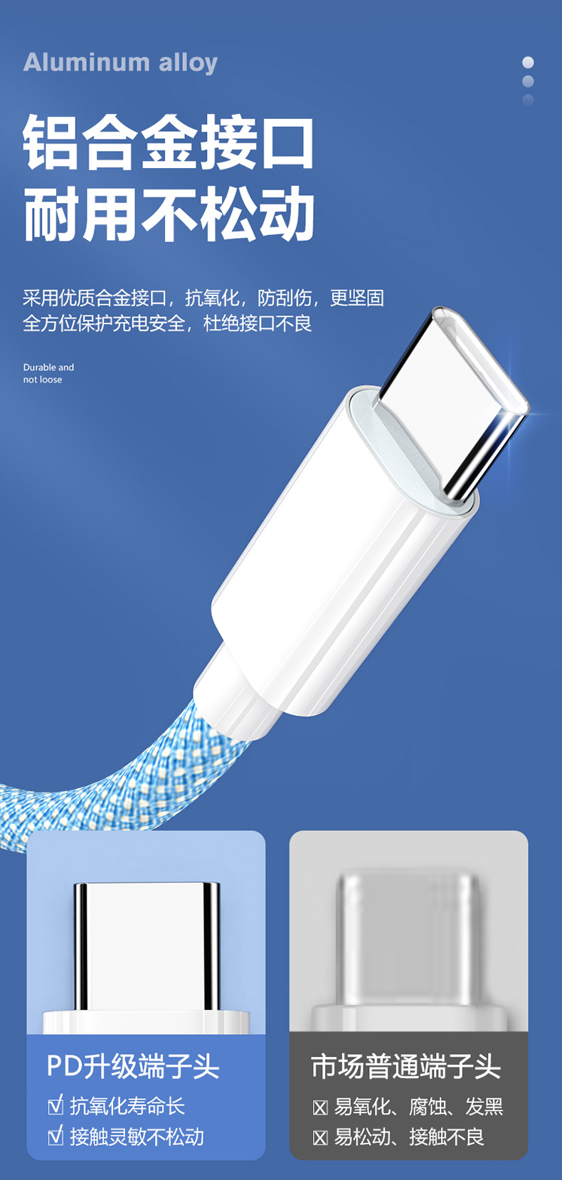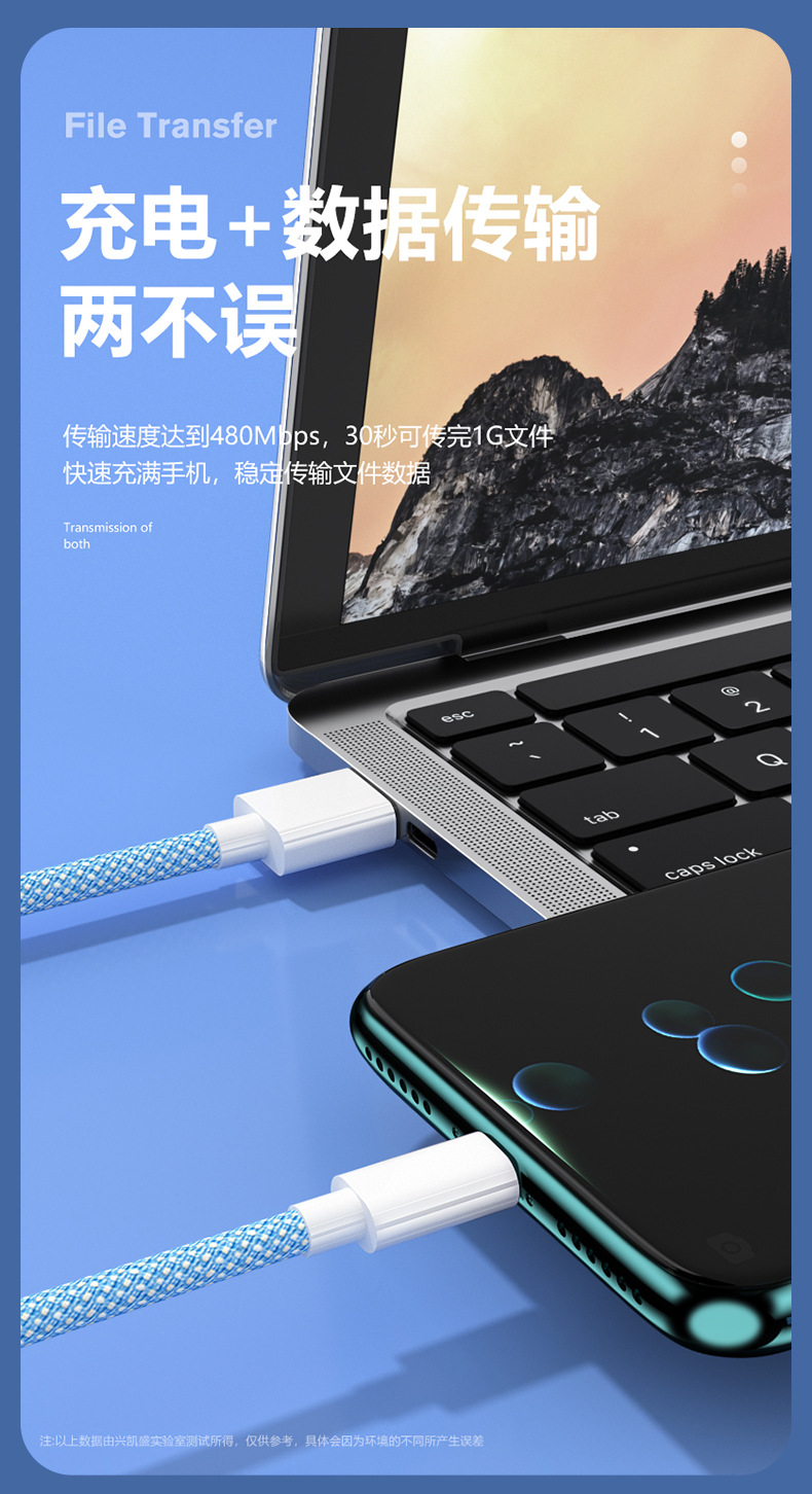 产品优势:环保纯铜线芯 ,布纹编织线材,尼龙编织外被,线材柔软、耐用、不易打结,手感细腻、高档有质感,给您解决了出门带多条线的烦恼.