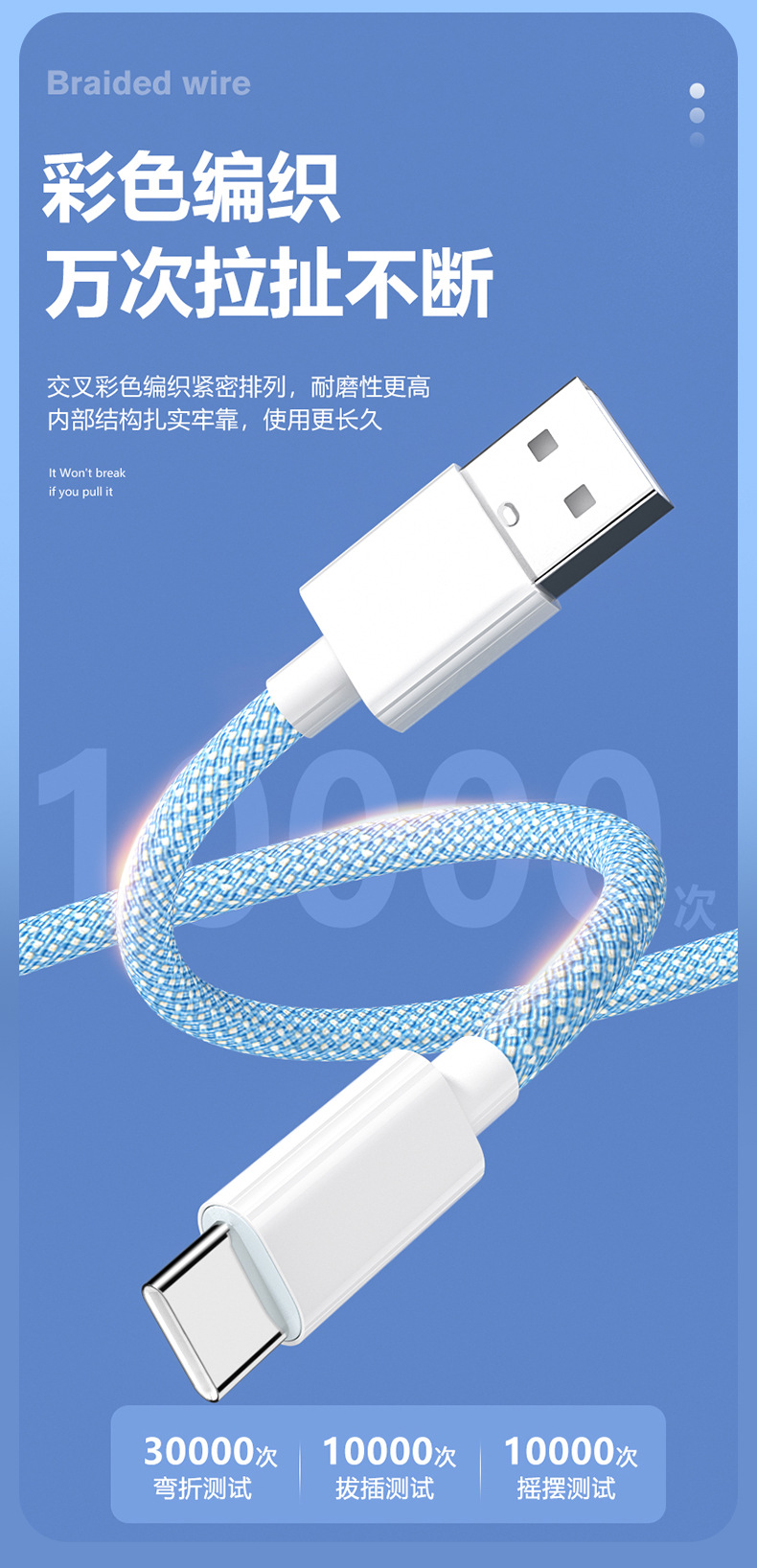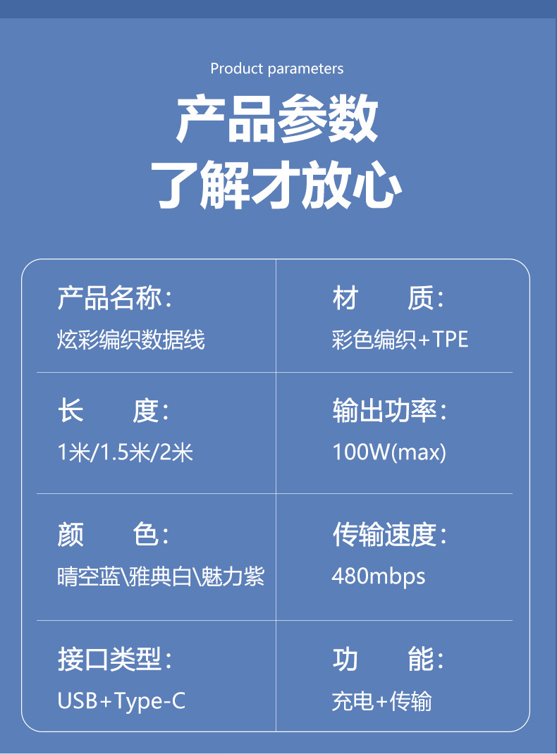 产品名称:彩色布编快充数据线