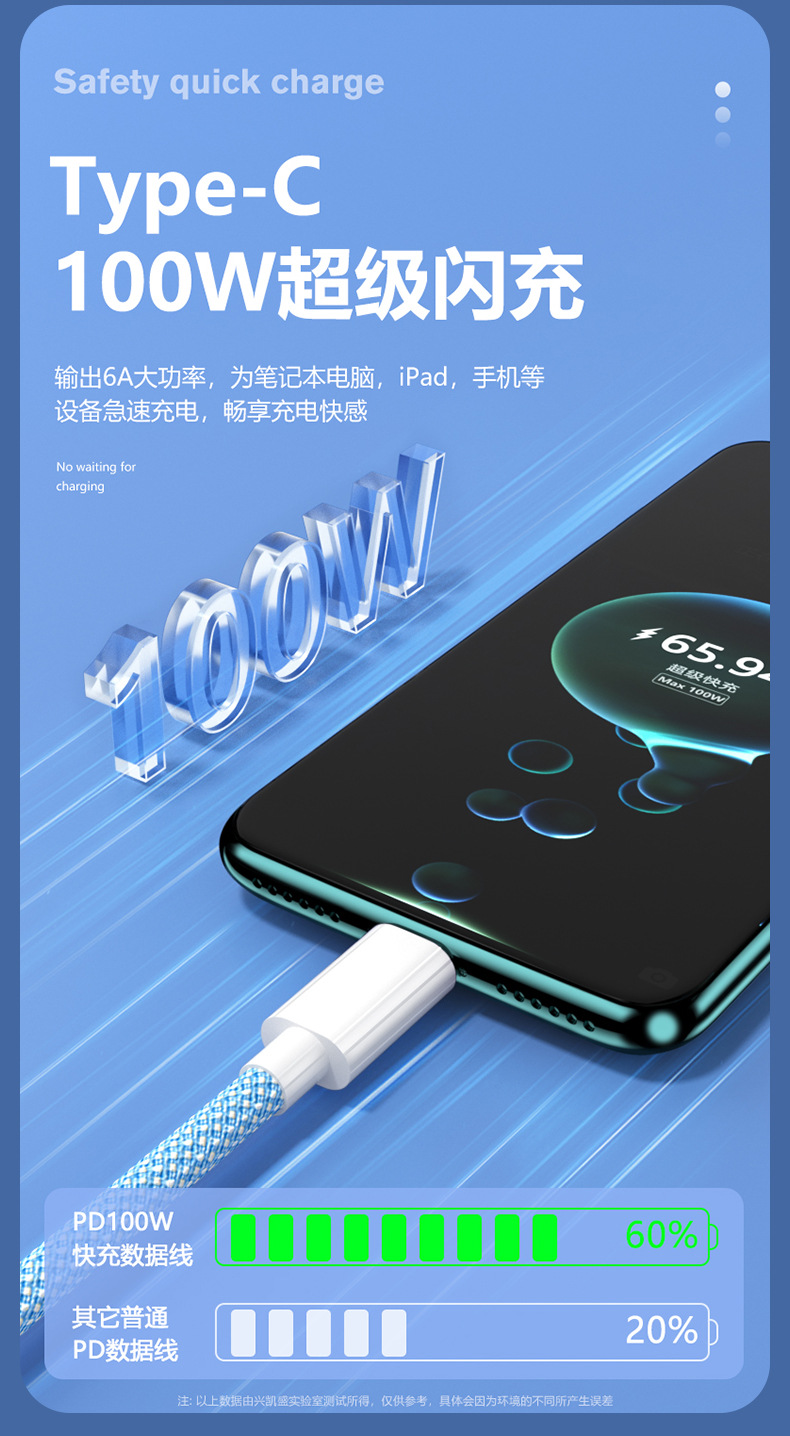 TYPE-C接口的线支持华为手机部分型号的超级快充,须搭配原装的5A6A快充充电器使用,搭配其他型号手机以及其他充电器均无法进入超级快充模式