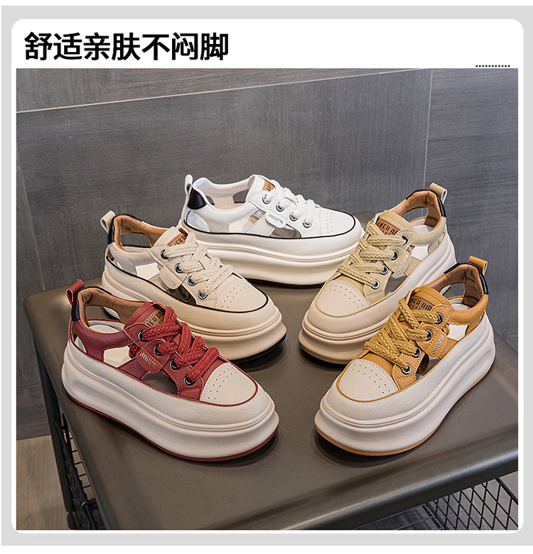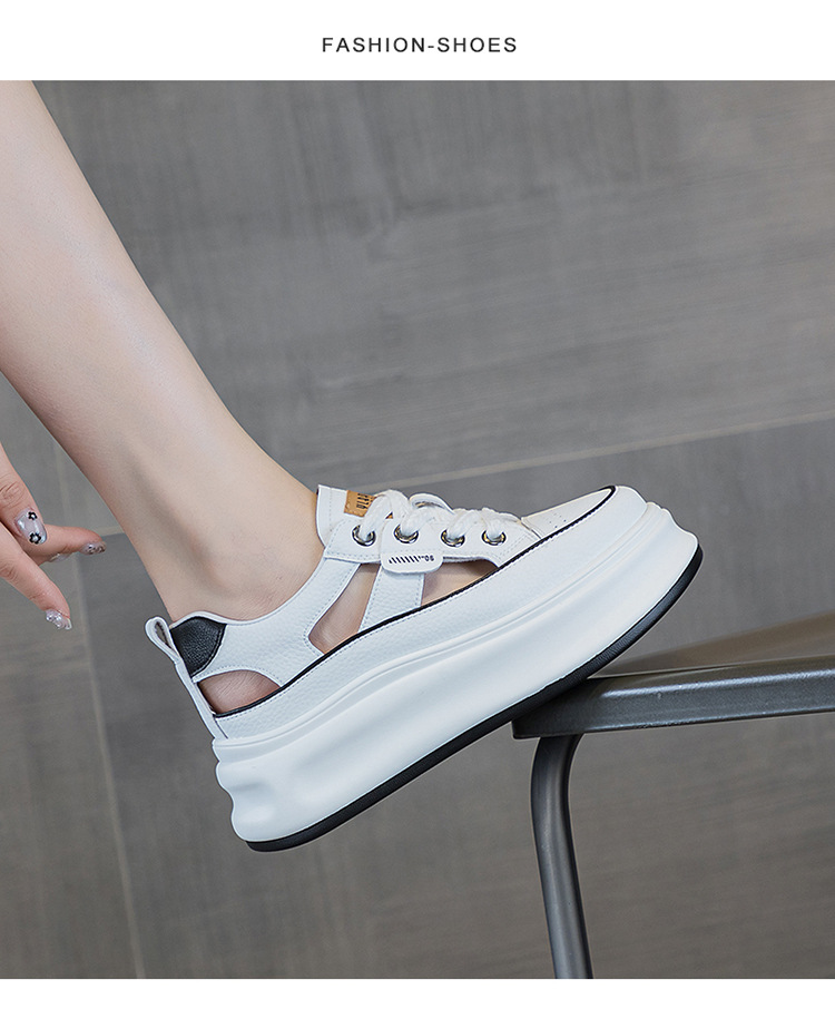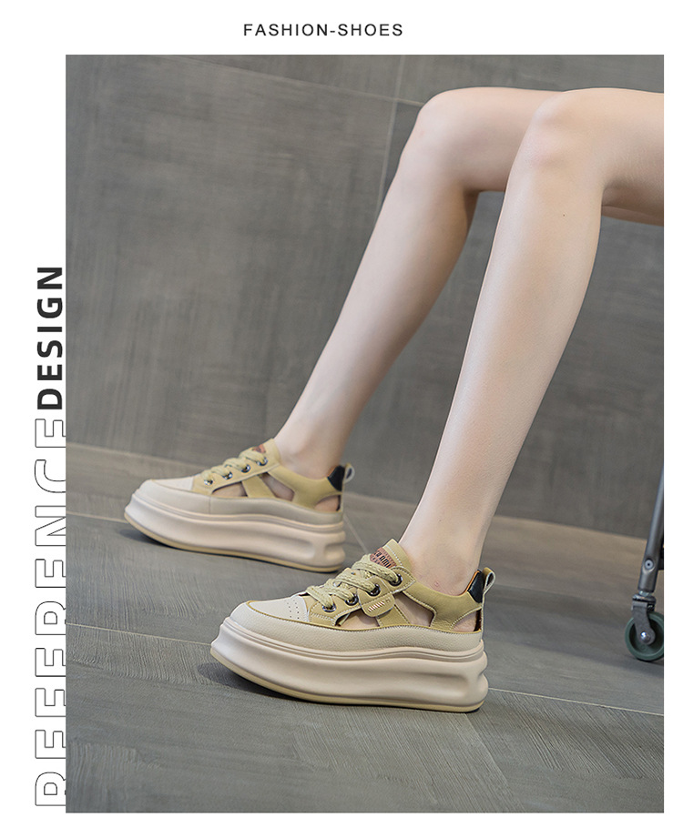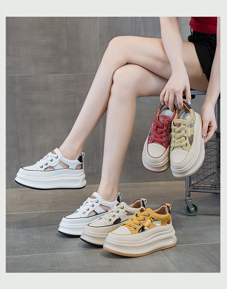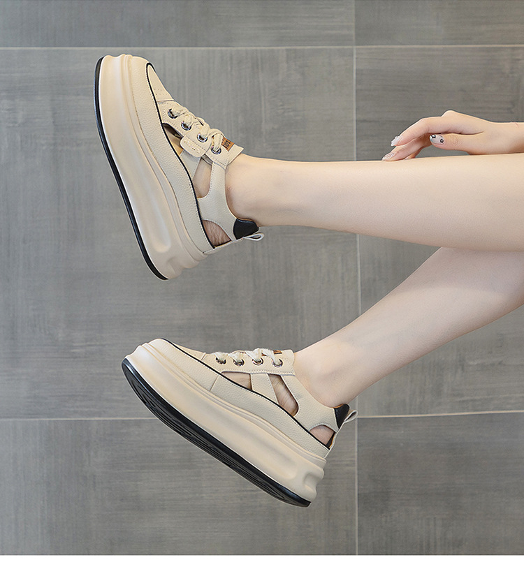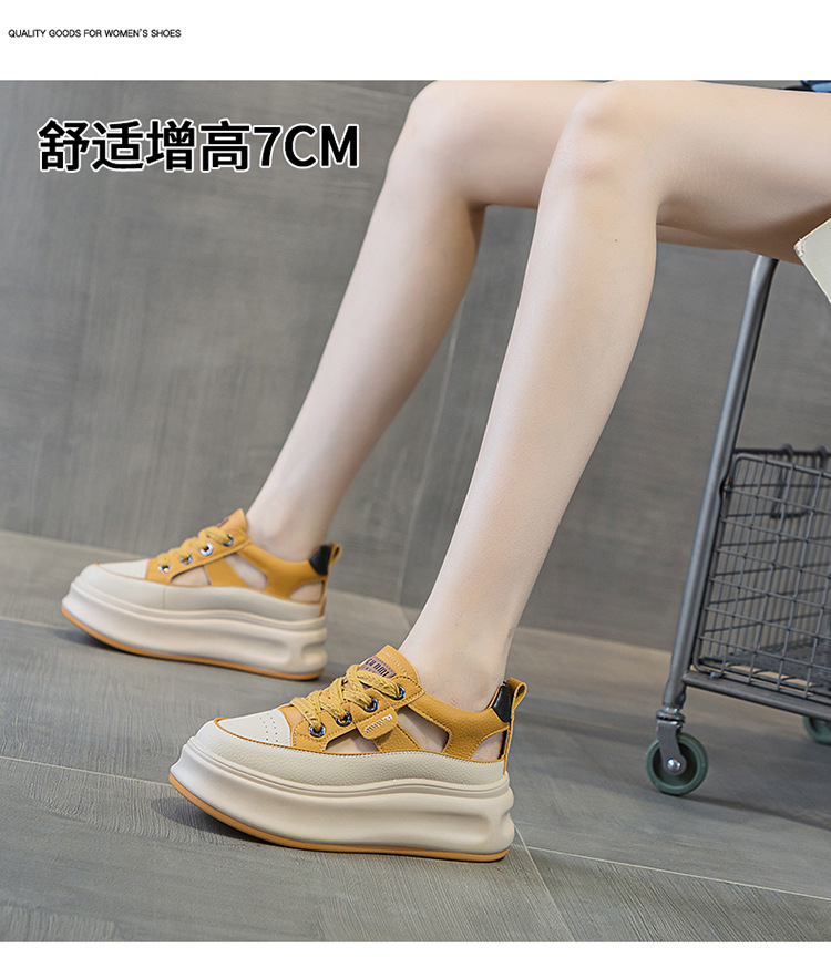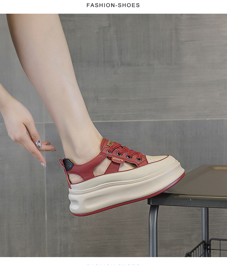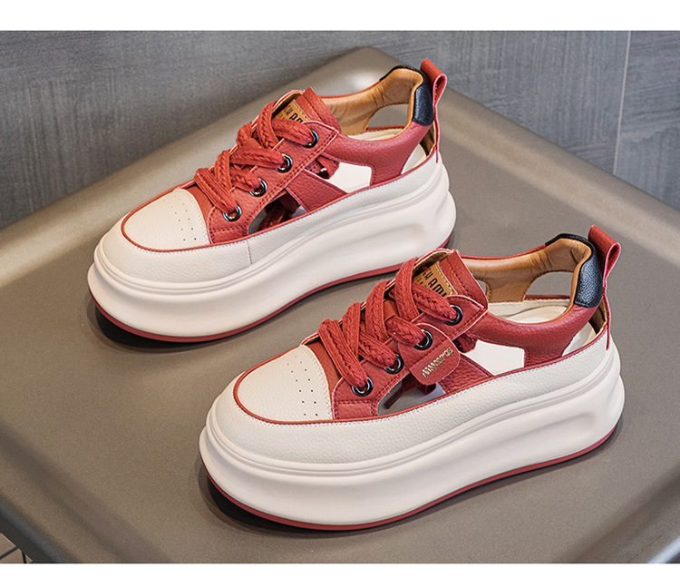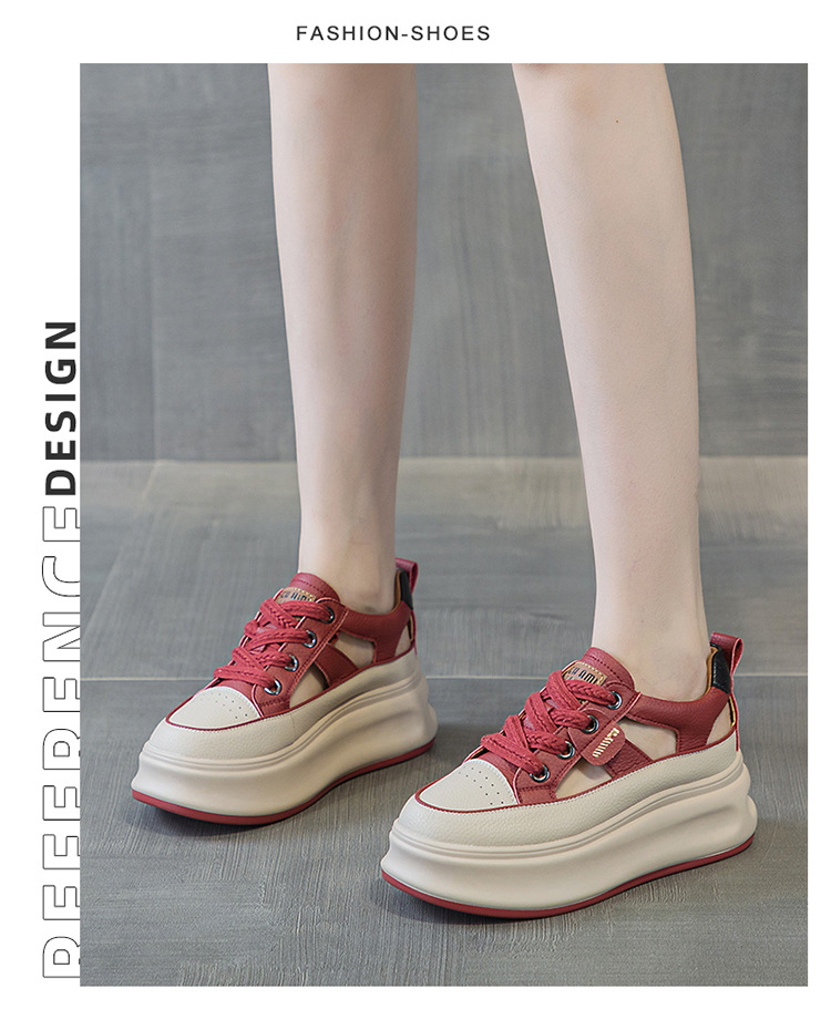 812-3 그물 빨간 가죽 여성 신발 여름 새로운 속이 빈 통기성 운동화 머핀 두꺼운 바닥 증가 캐주얼 신발