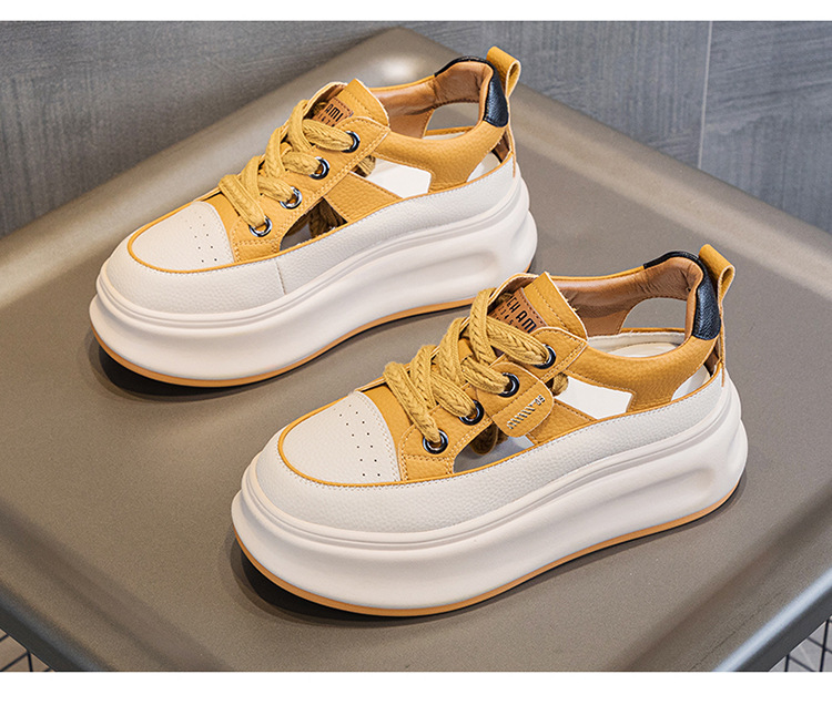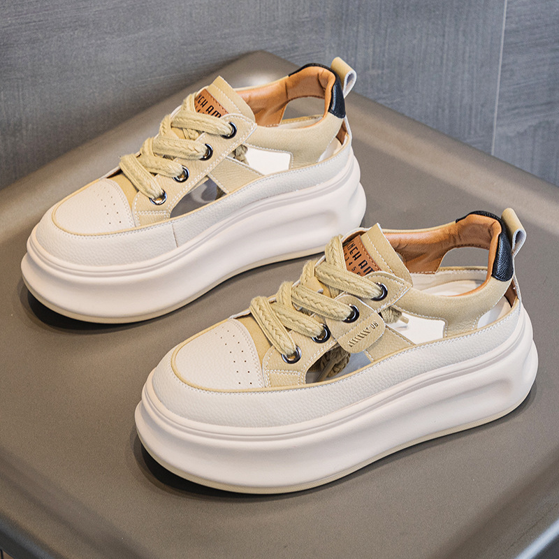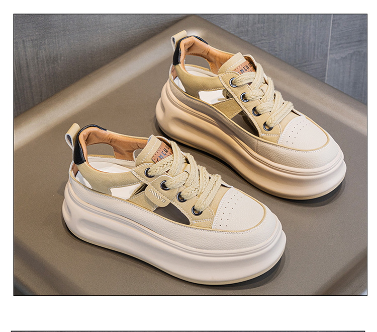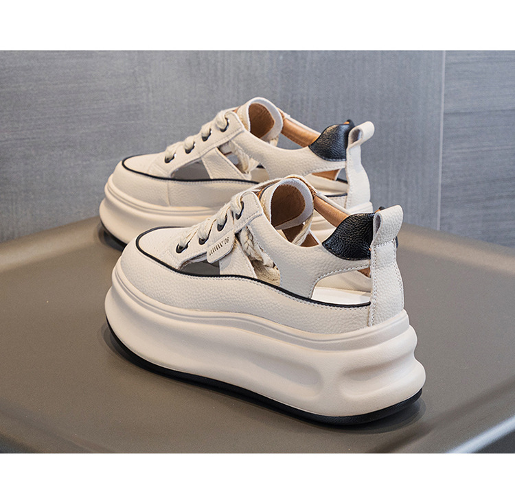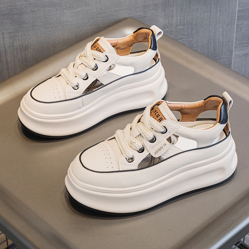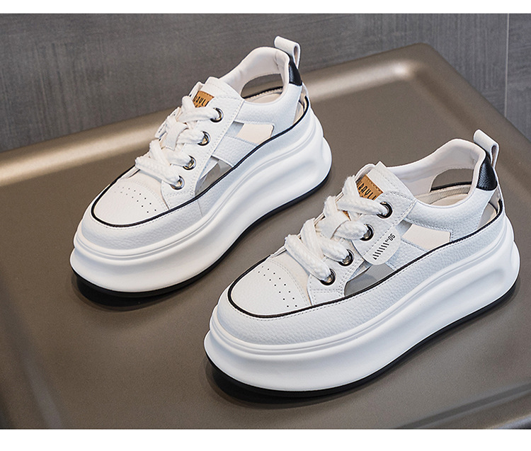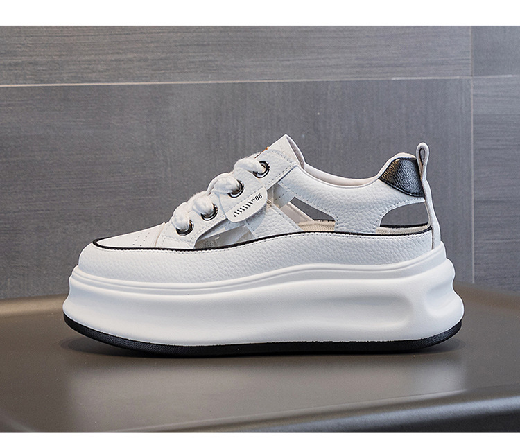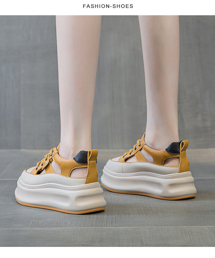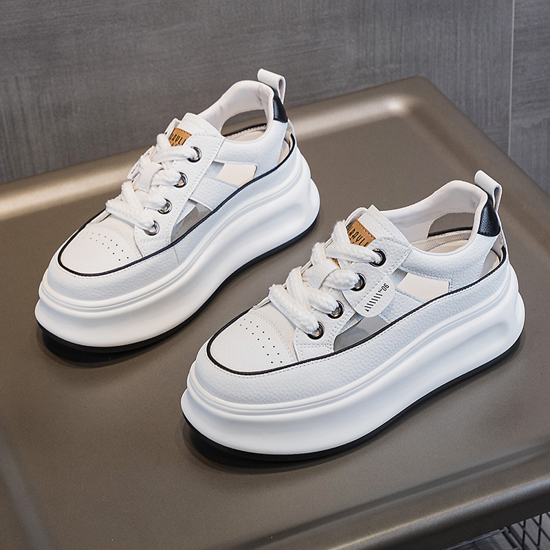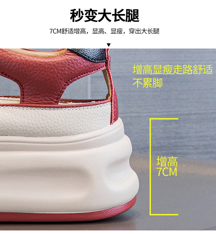 812-3 그물 빨간 가죽 여성 신발 여름 새로운 속이 빈 통기성 운동화 머핀 두꺼운 바닥 증가 캐주얼 신발